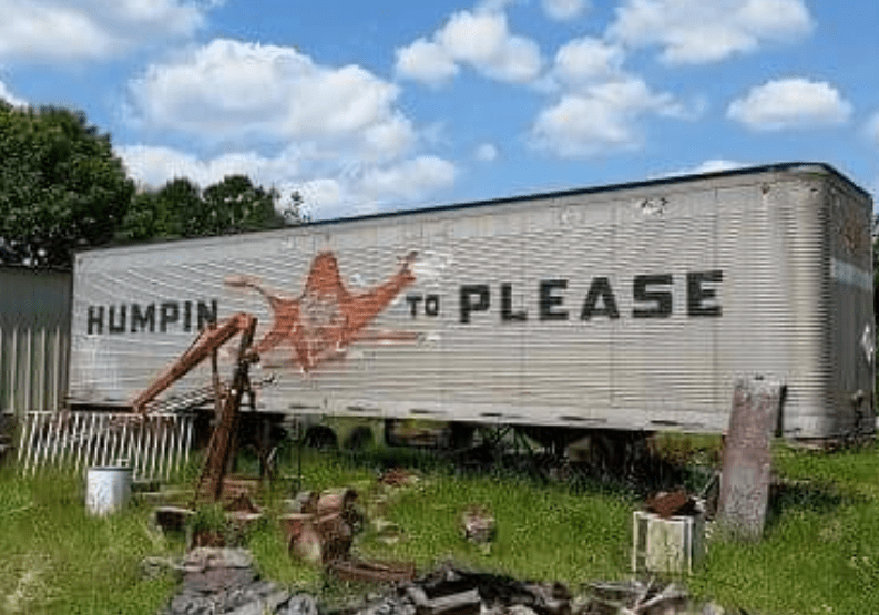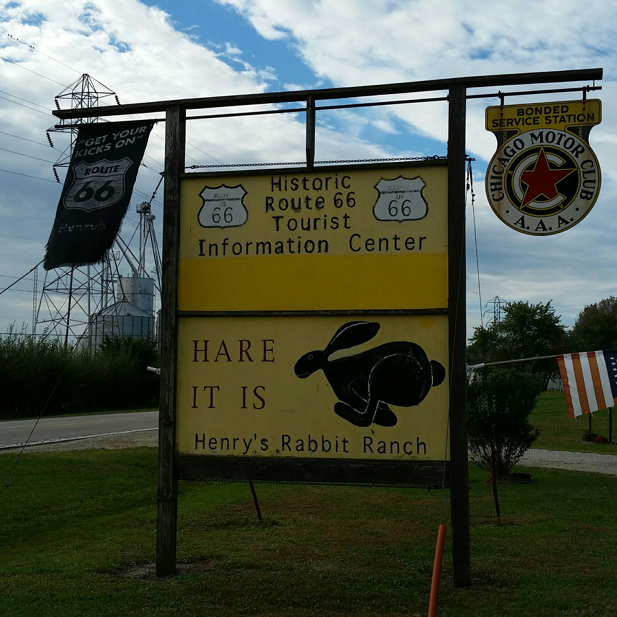As I turned on the part of 66 leading onto Staunton I passed a flea market with a huge green and yellow rocking chair. I then stopped at Henry’s Rabbit Ranch & Route 66 Emporium. Yes! There were rabbits and lots of cool old stuff scattered about. One of the things I found interesting was the “Snortin’ Norton” on the side of a semi trailer. This originated from the Campbell 66 Express truck line which went out of business in 1986. Kudos to Henry for his furry friends, his gift shop, his insurance business, his ability to sign over titles and notorize them and if you want to get married, he can do that too! He was fun to talk to along with Mr & Mrs Renfro, whom I have encountered several times at different locations. The Renfro’s are from Chicago and only doing the Illinois Route 66 at this time.