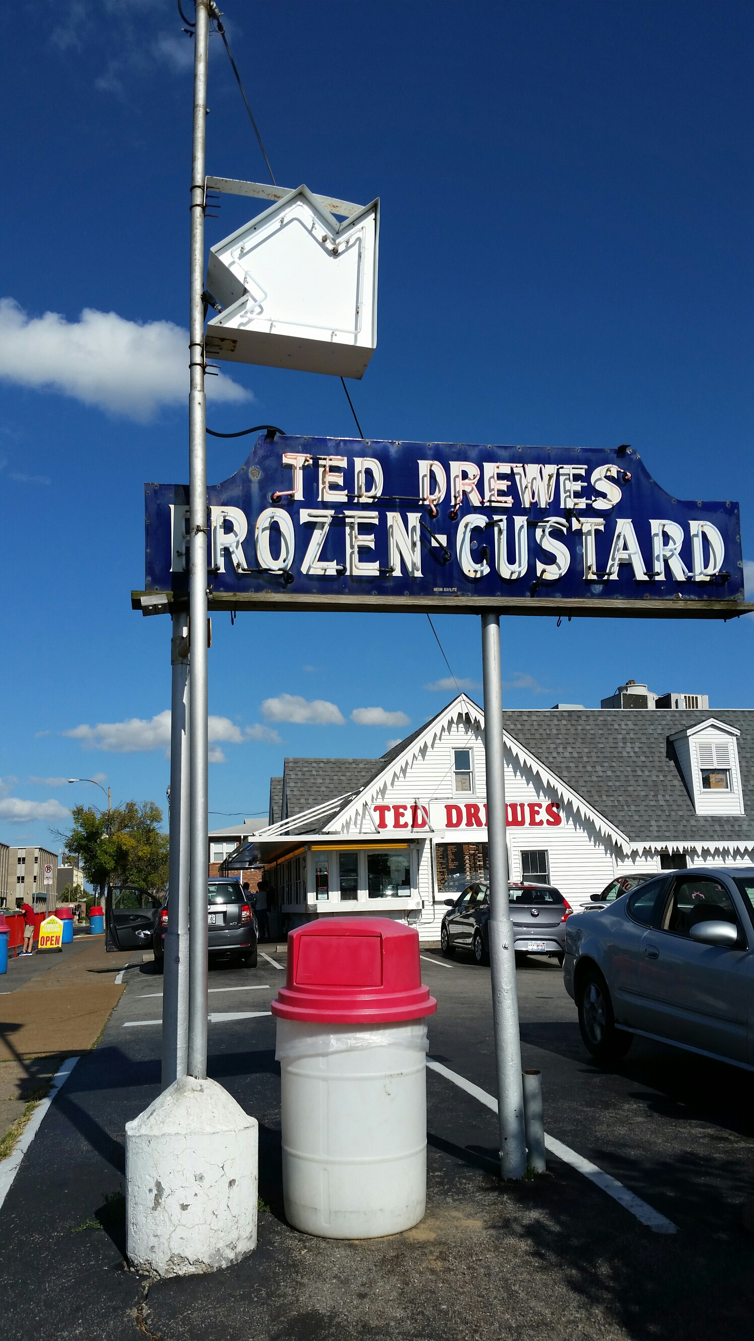 While in St Louis I got a picture of the Arch, Cardinal Stadium and the church at the gateway path. The Eat-Rite Diner is still in business along with the Fresh Donuts Shop! I must admit I stopped at Ted Drews Frozen Custard and had the special Hot Fudge Sundae (and a doggie dish for Frannie). The Crestwood Bowl is still going strong as well.
