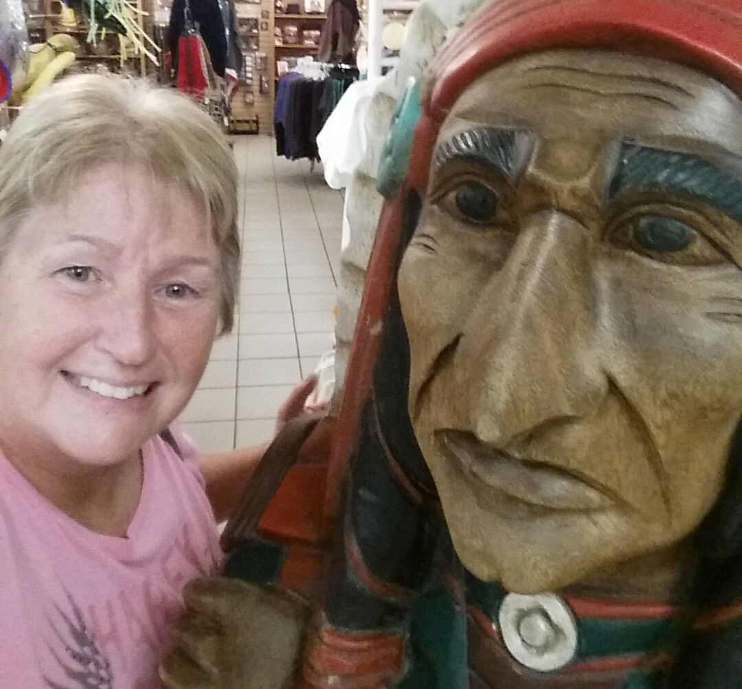 All signs are pointing to Meramec Caverns, the hide out of outlaw Jesse James. So I ventured down to visit and that’s where I met Tim & Joyce from Kimmell IN (they are doing Route 66 in a yellow Corvaire). I opted not to take the hour and a half tour but I did get a small glimpse of the Cavern. In the gift shop I ran into this wooden guy, I think we are related, we have the same nose!