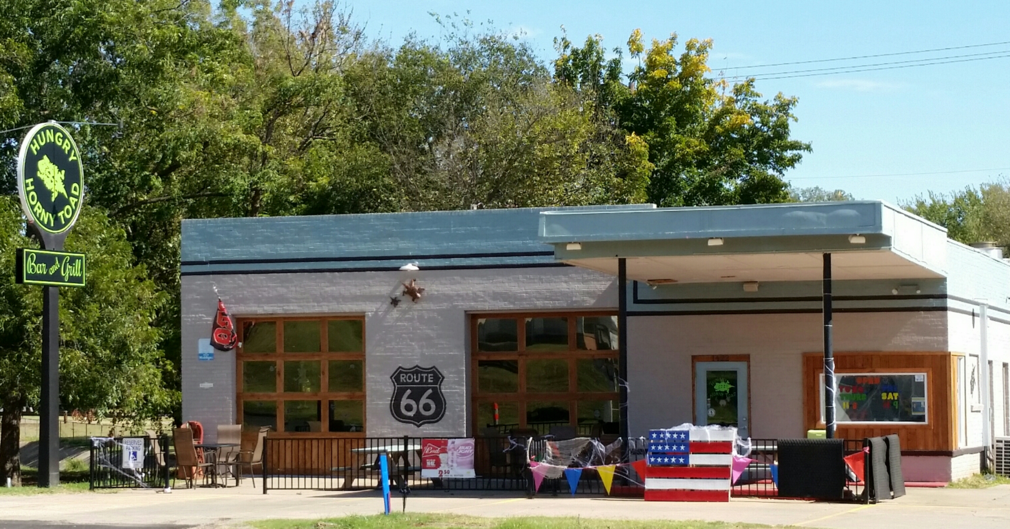 Driving through Bristow there really wasn’t much history except for the old Bristow Motor Company and Body Shop. BUT wait! I saw this towering neon sign over the tops of the trees so I went to explore. It was a casino! These itty-bitty casinos are everywhere! I decided today I would hang onto my money and mosey down the road.