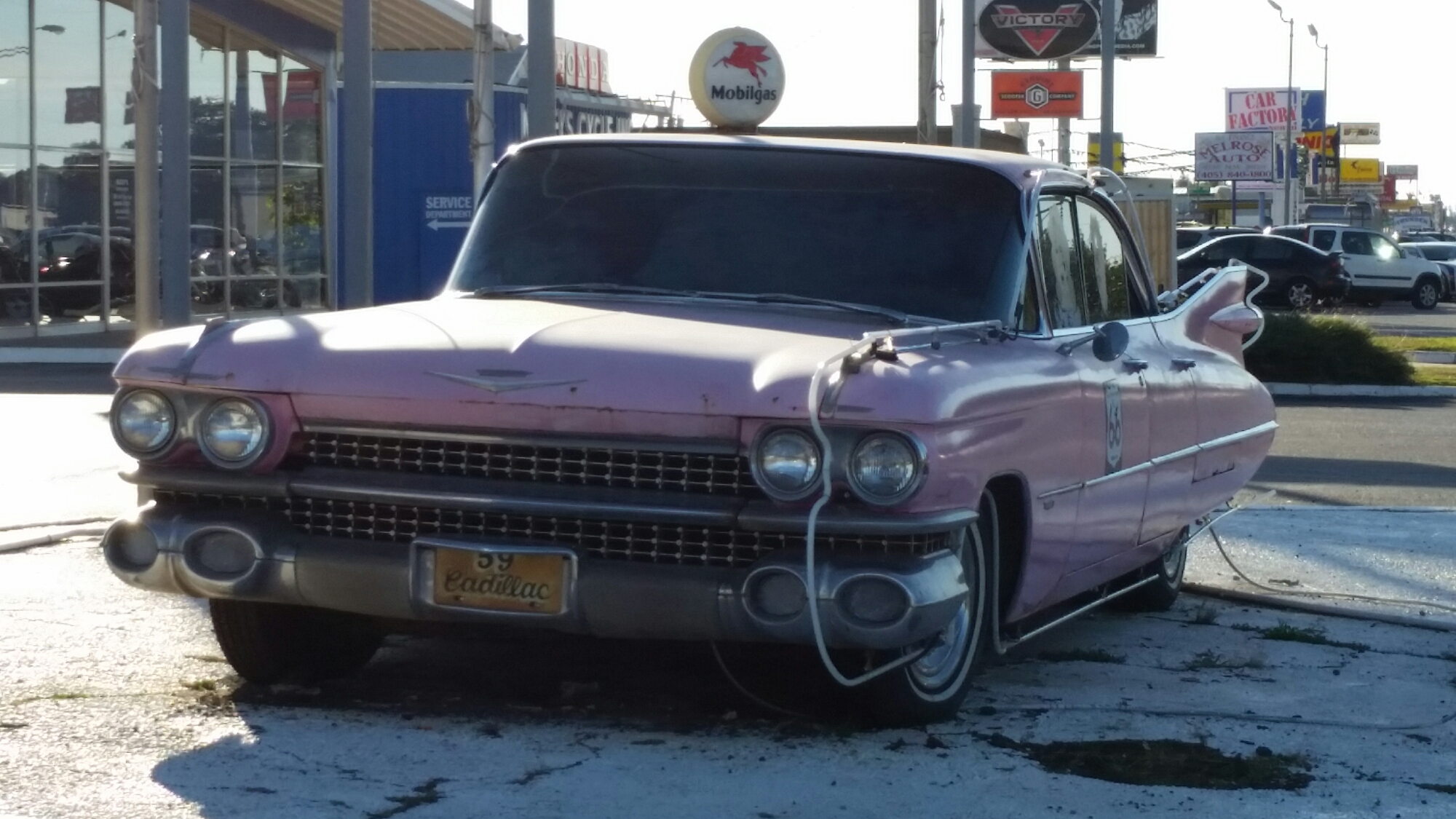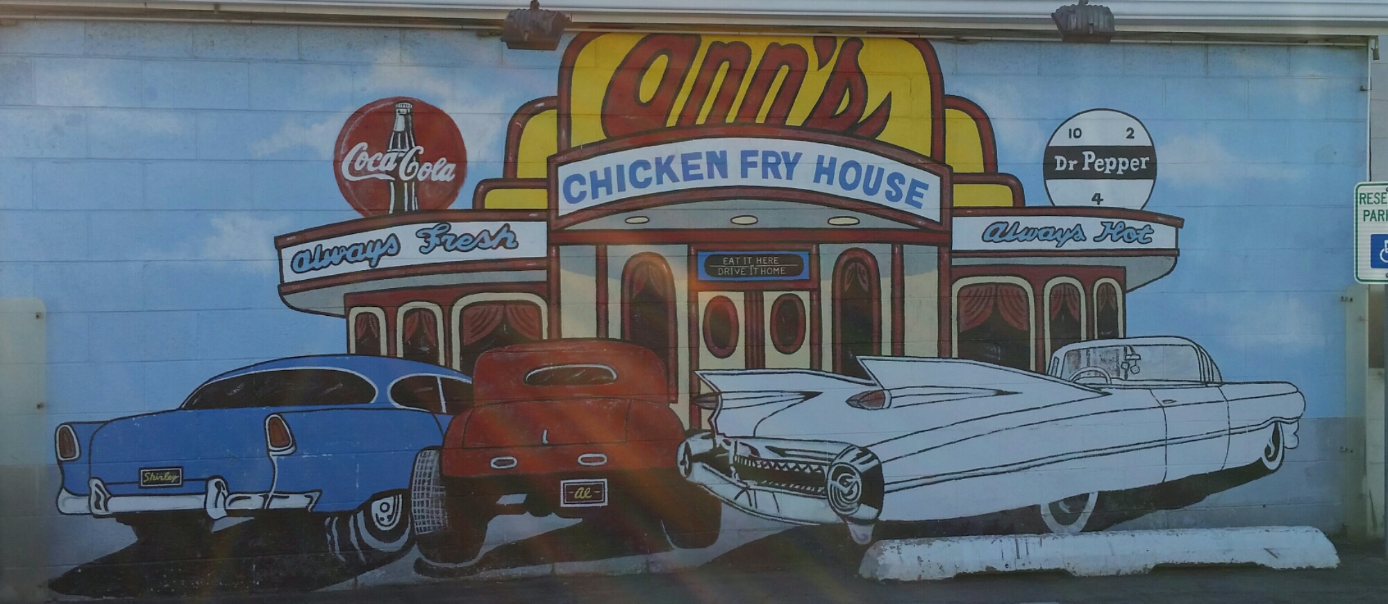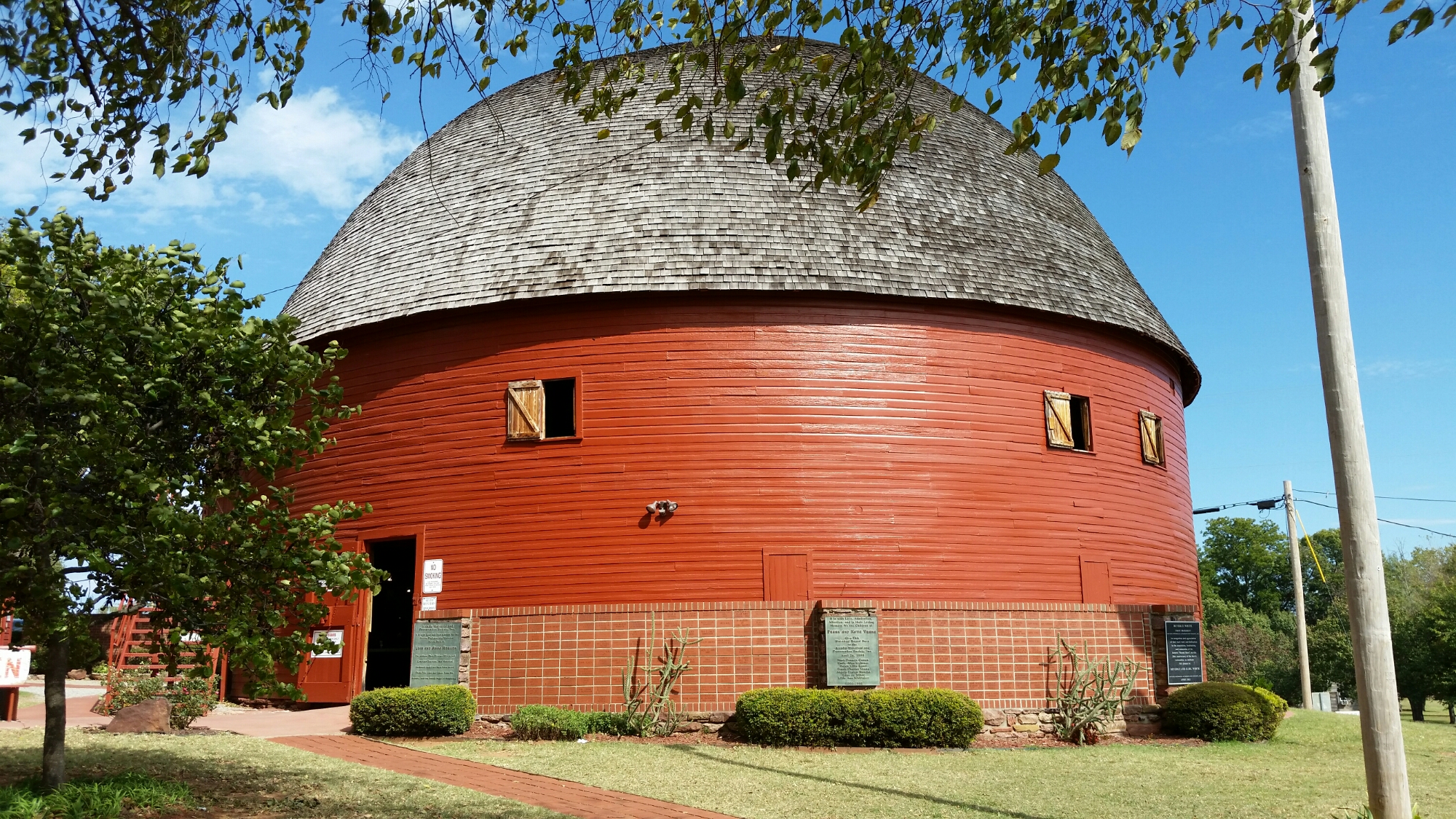 In Arcadia I stopped at the Round Barn built in 1898 and as I left there was a cool gas station with an LED Coke bottle in front of it.