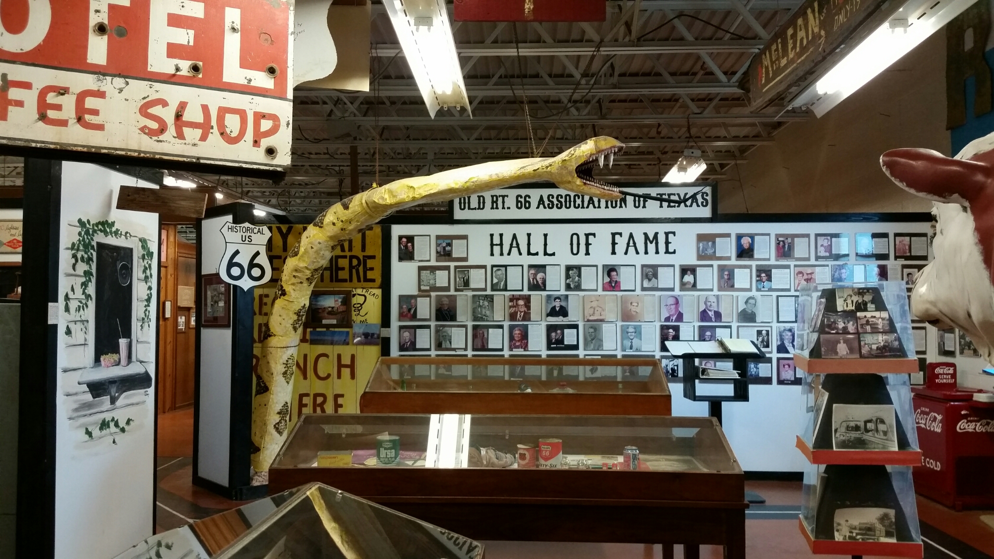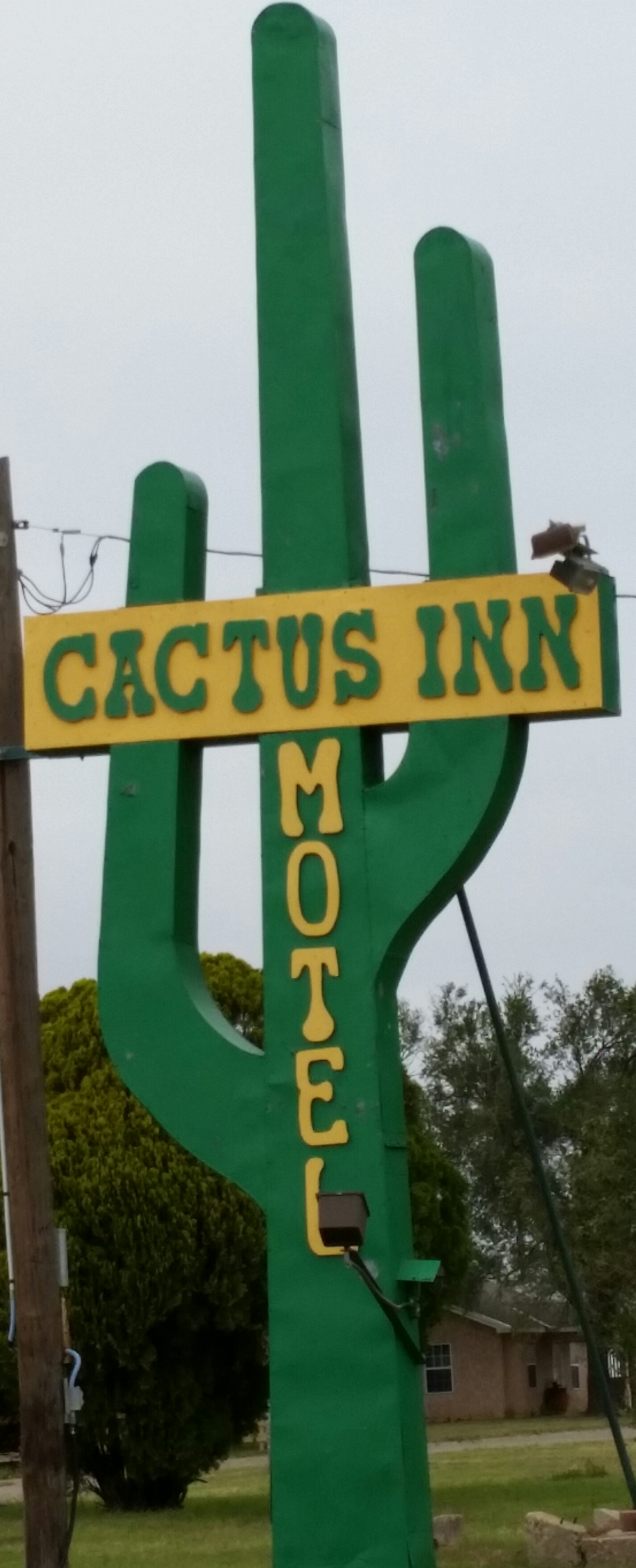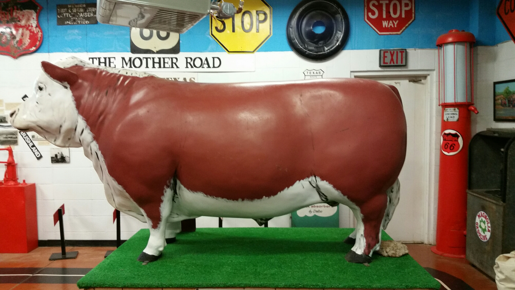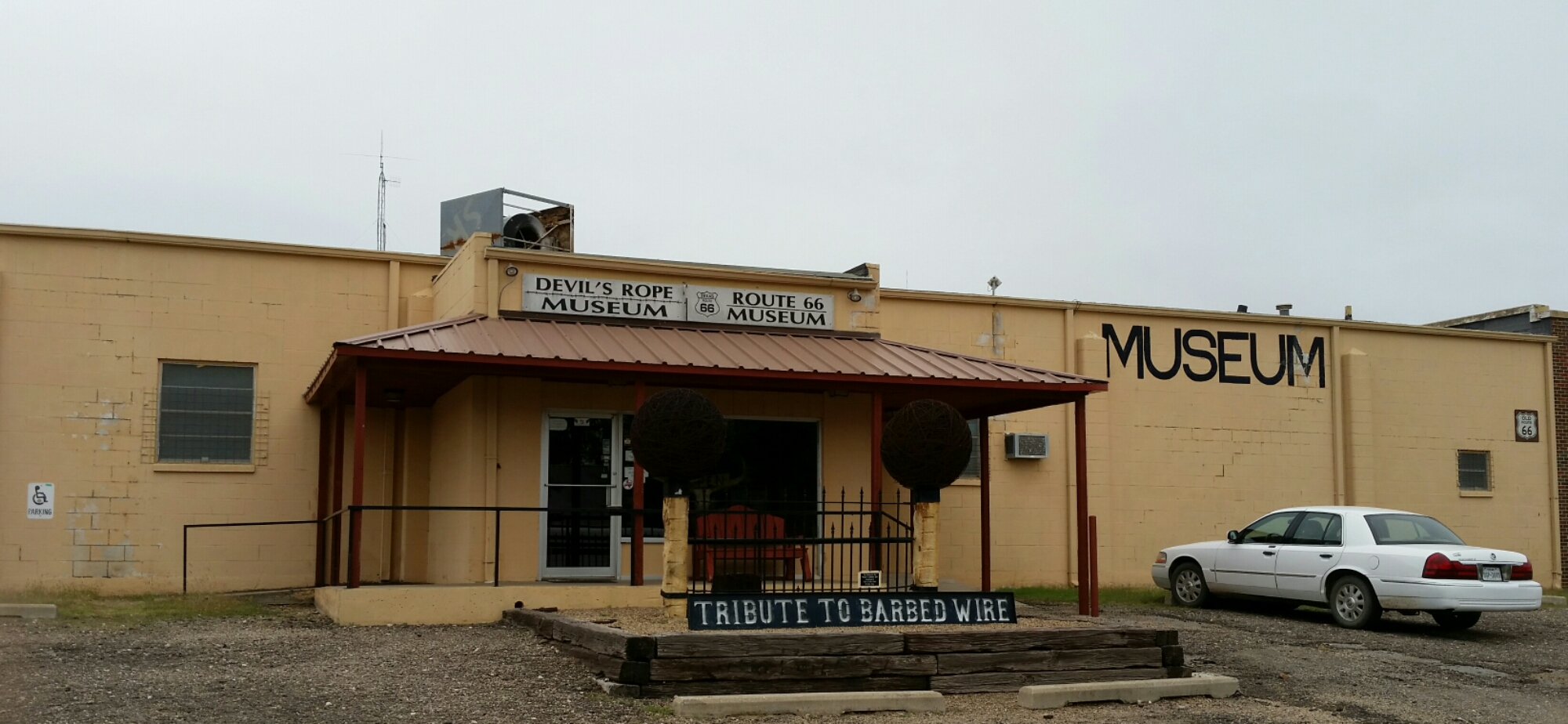 In McLean TX I visited the Devils Rope Museum.  Devils rope is barbed wire.  I had no idea that there was so many different types and uses for barbed wire. I am glad I visted because it was really interesting and I would have missed the giant cobra and giant cow along with cow patty.  Anita, who works there was really friendly and pleasant to talk to. There was also a Phillips 66 gas station and the old Cactus Inn Motel.