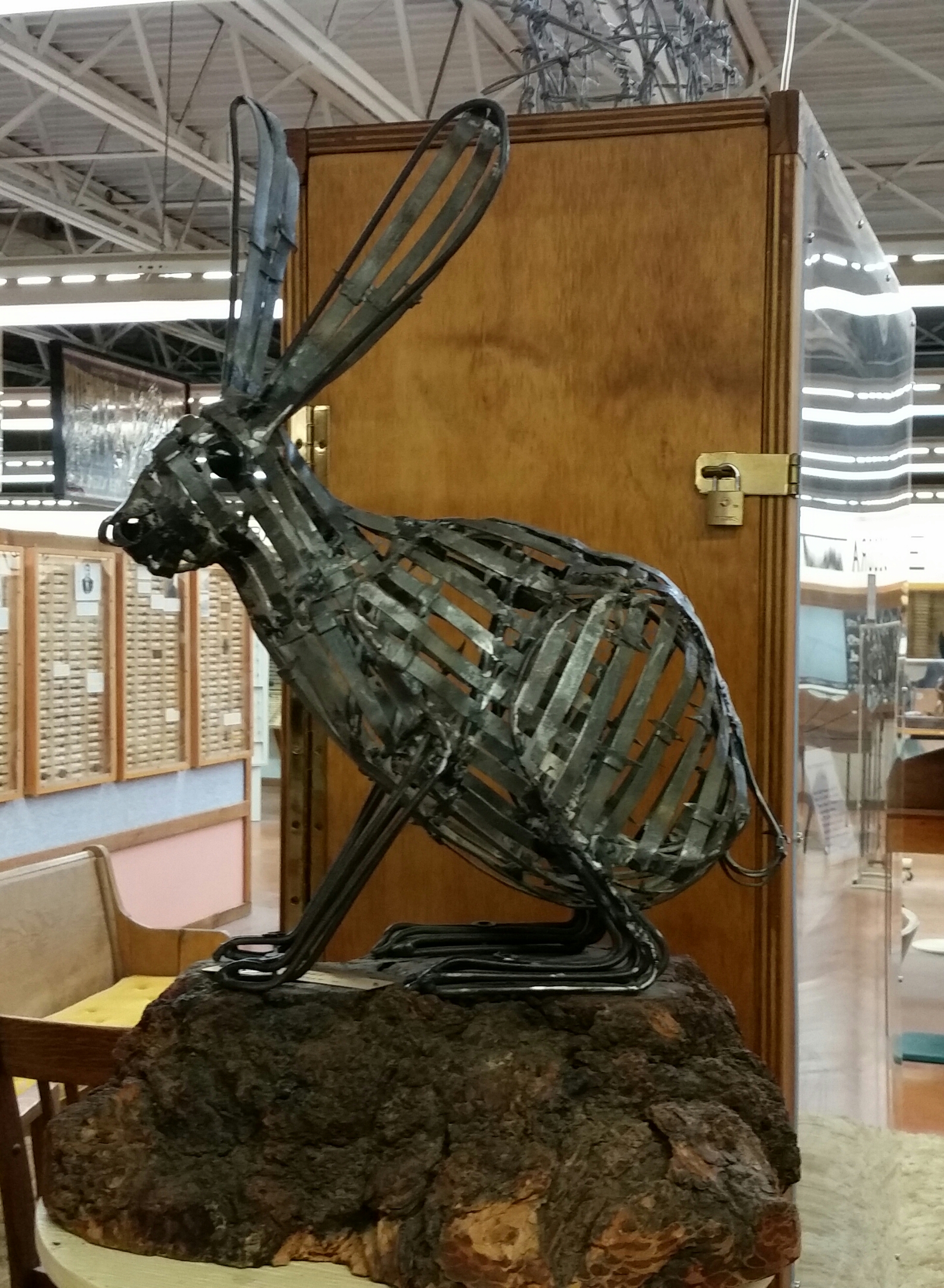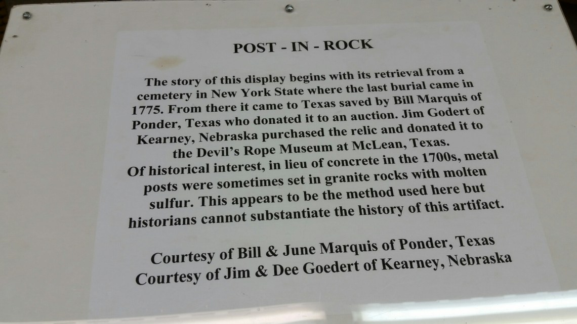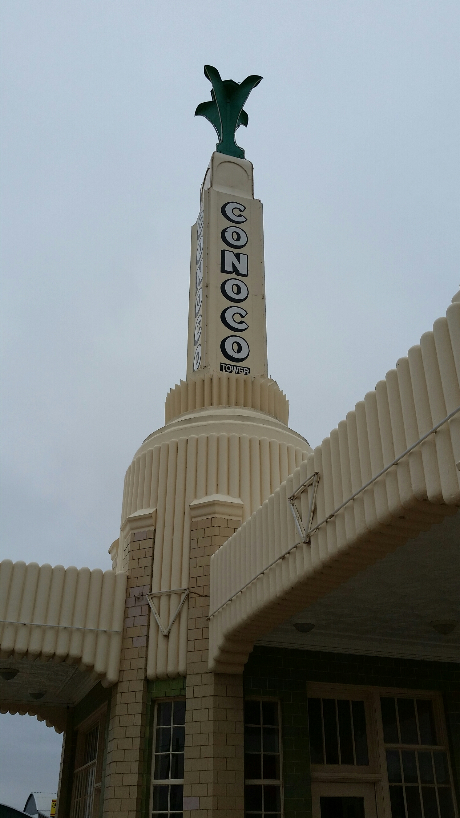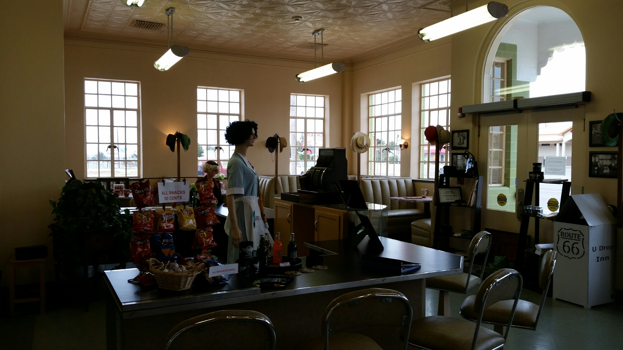 In McLean TX I visited the Devils Rope Museum.  Devils rope is barbed wire.  I had no idea that there was so many different types and uses for barbed wire. I am glad I visted because it was really interesting and I would have missed the giant cobra and giant cow along with cow patty.  Anita, who works there was really friendly and pleasant to talk to. There was also a Phillips 66 gas station and the old Cactus Inn Motel.