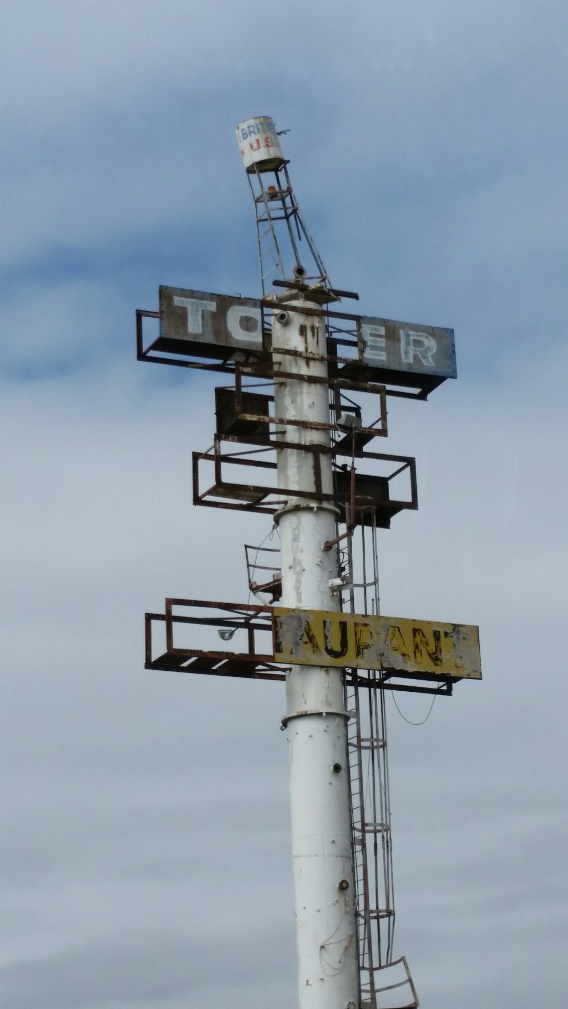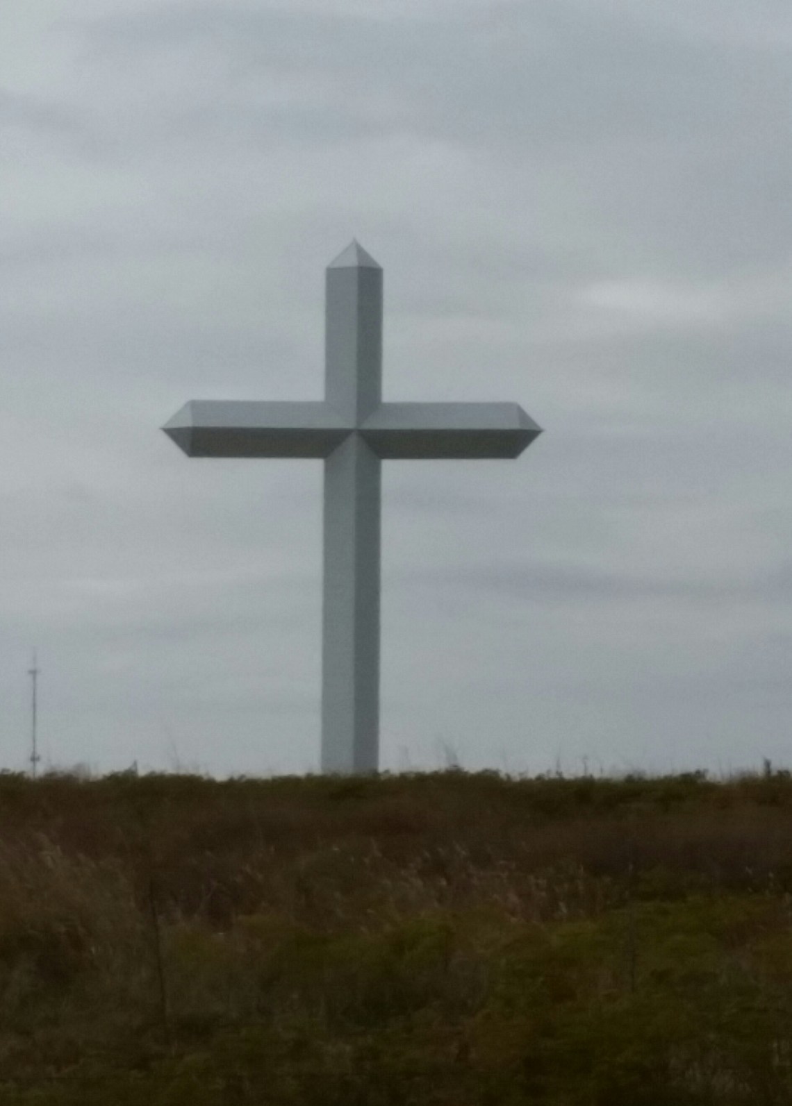 In Groom TX you can find a leaning water tower and an old truck stop sign with the replica of the leaning water tower atop. There is also a giant cross, billed as the largest cross in the western hemisphere but I think the one in Cookeville TN is the same size.