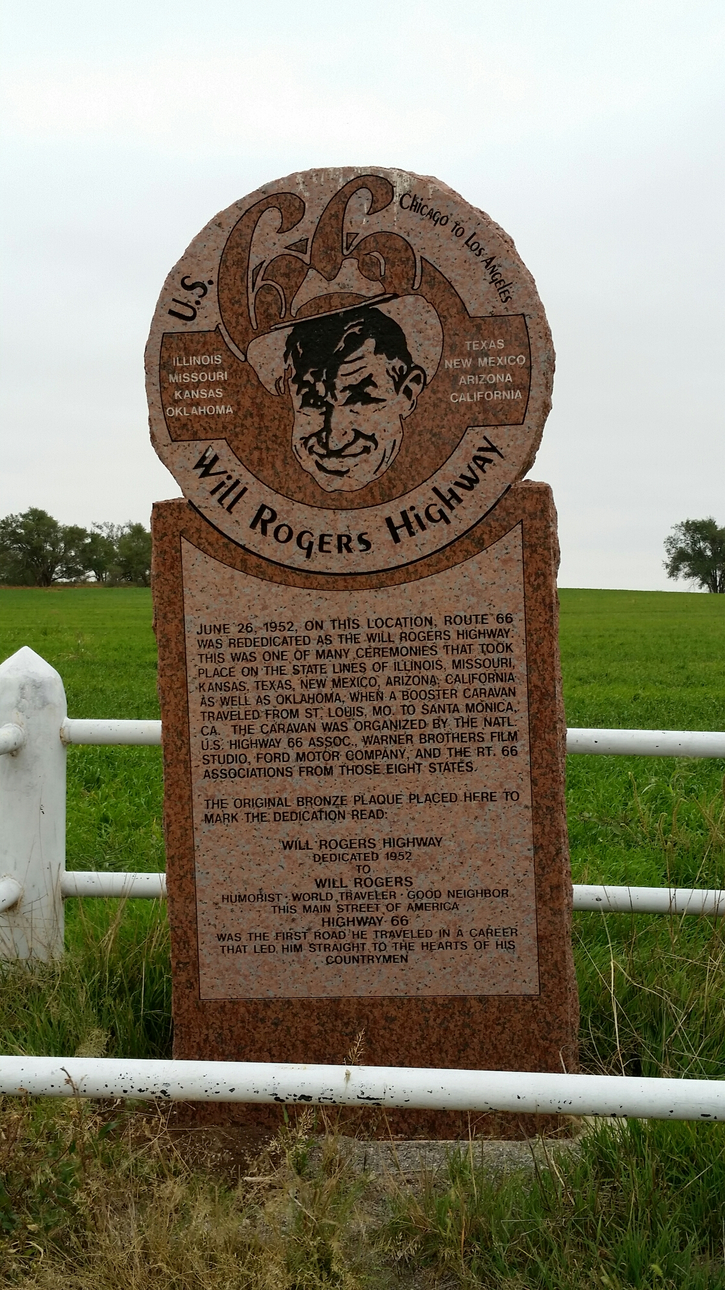 As I drove to the last town of Texola, Oklahoma, I drove past a cotton field! Did you know that cotton supplied the Native Americans with clothing fibers before the Spanish ever entered Texas? By the 1930s cotton was produced in 223 of the 254 counties in Texas.  In Texola I found an old Territorial Jail.  Not sure what the list of names are.  And at the state line there was a Will Roger Marker.