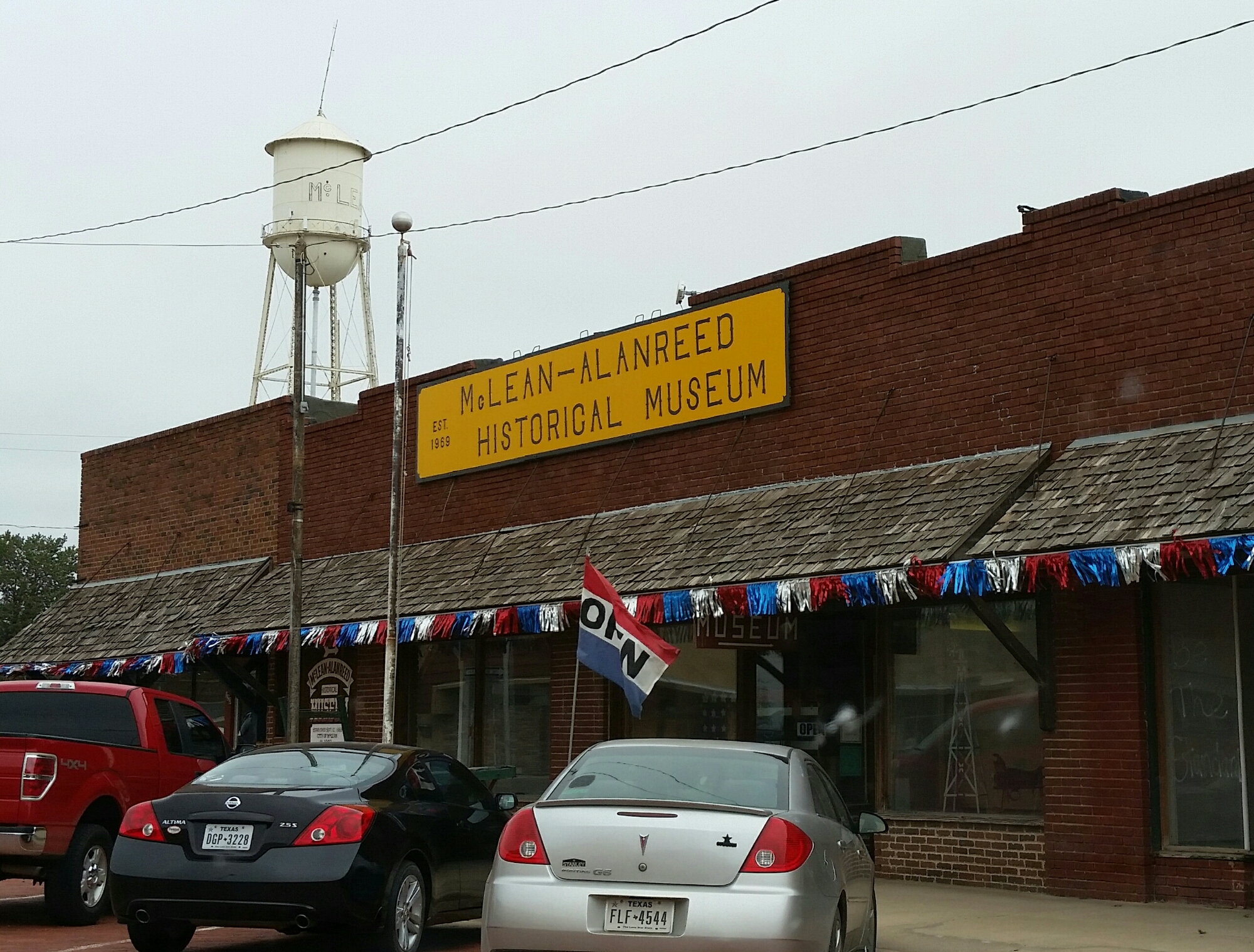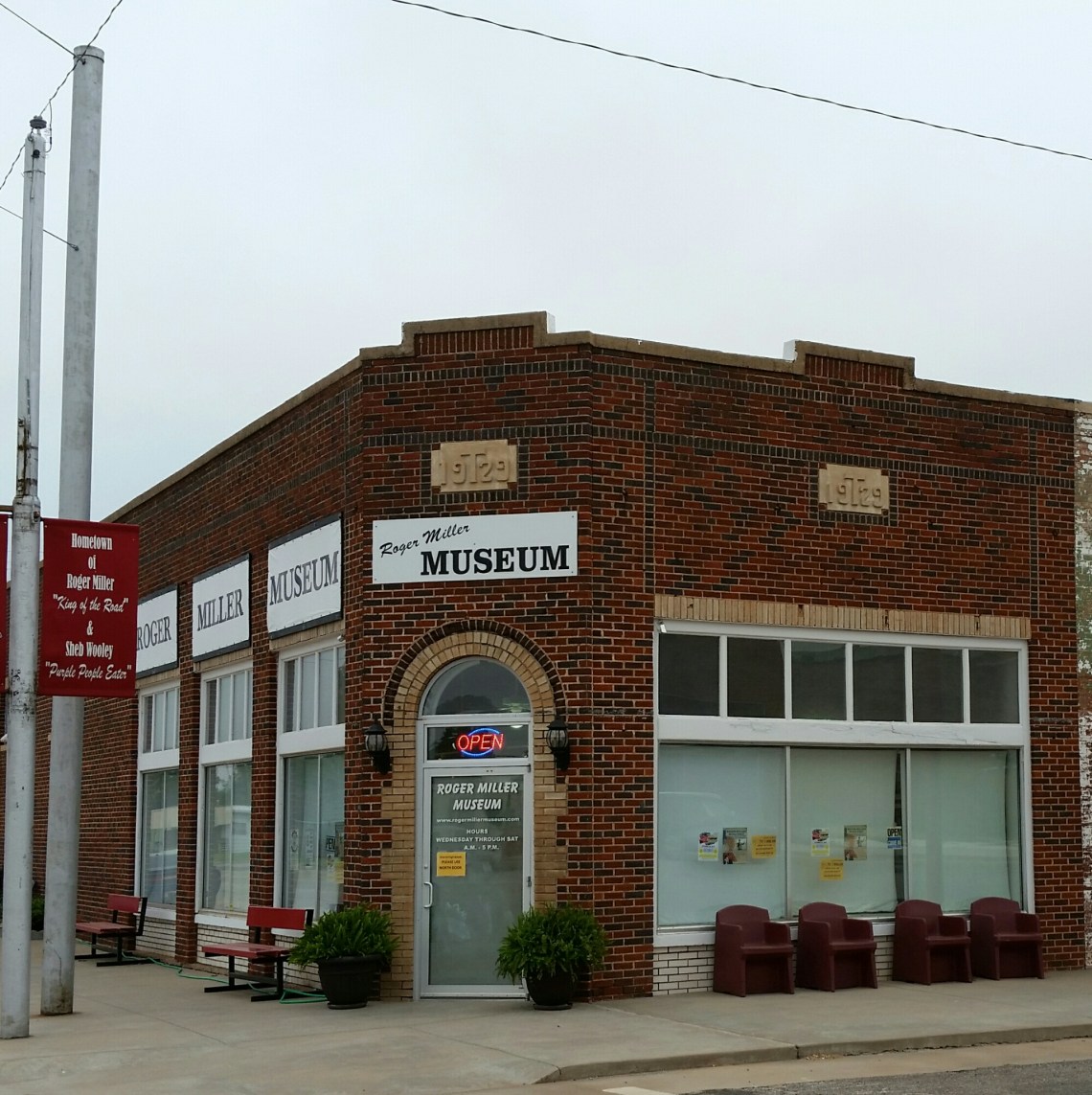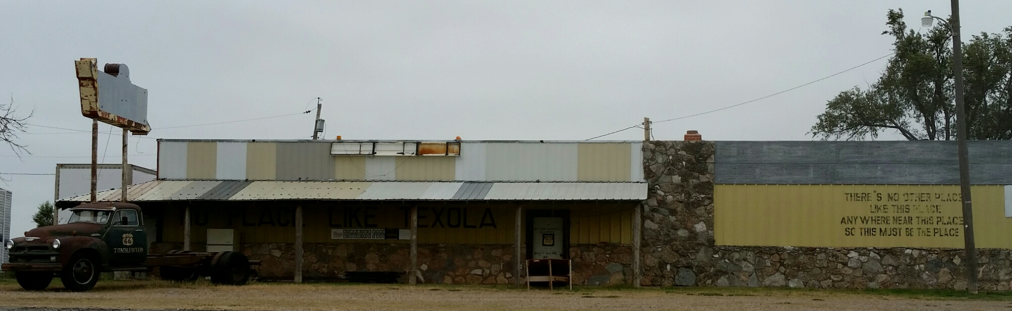 Erick OK is the home of Roger Miller (King of the Road fame) and Sheb Wooley (Purple People Eater).  Seriously, I stood in the middle of downtown and there was not a soul around.  I took pictures of both Museums from the center of the intersection.  I found this building with all theses signs, on the front it says “Welcome to Erick Oklahoma Redeck Capital of the World Yee Haw”!