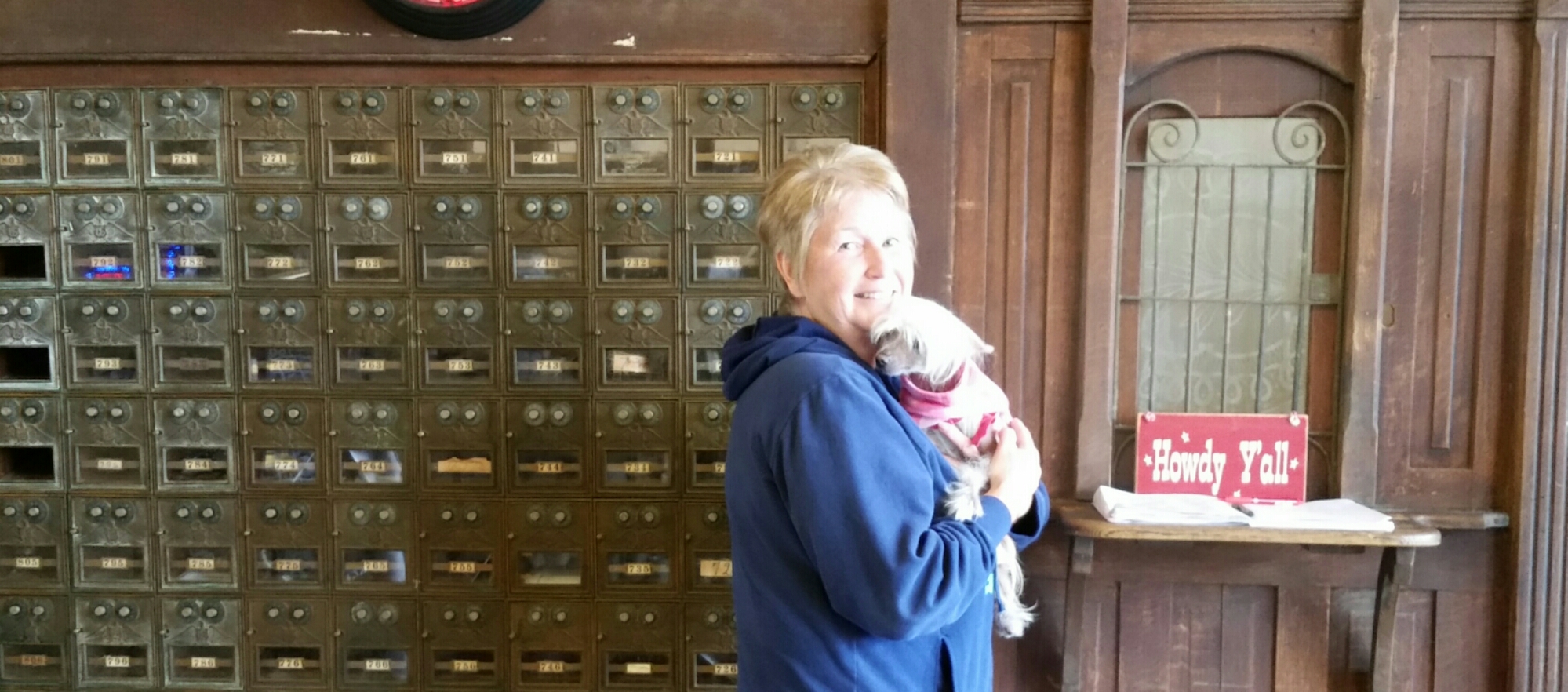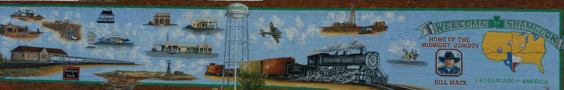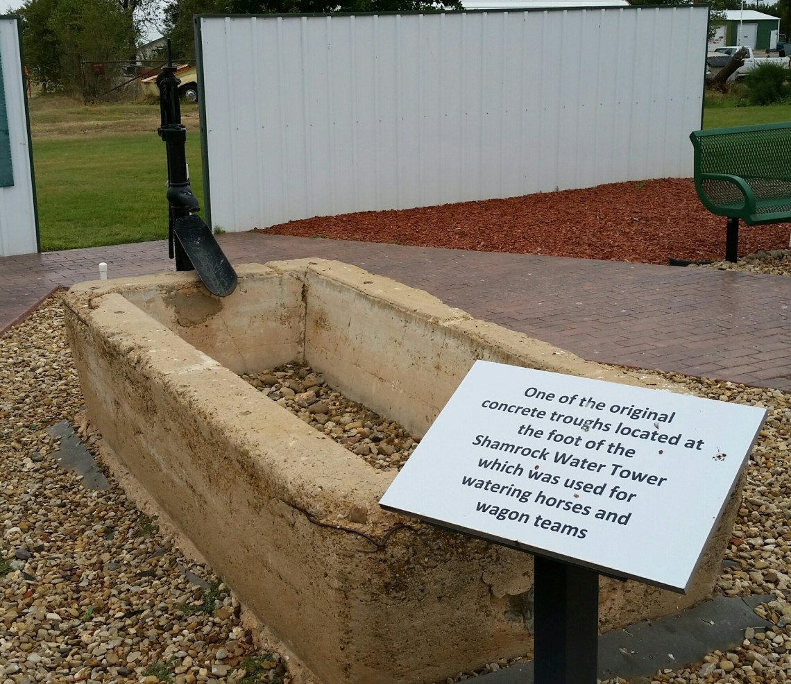 Shamrock TX home of the famous U-Drop Inn & Conoco Tower.  Now the Chamber of Commerce, where Diana and Theresa will make you feel like one of the family.  The facility is also pet friendly so Frannie Lou was welcome too. We even had our photo taken in front of the old Post Office boxes.  There is a tribute to Bill Mack “The Midnight Cowboy” and the Western Inn is right across the street.  I also found the museum and the Blarney Stone (imported and erected in 1959).  The water tower is high in the sky and an old watering trough can