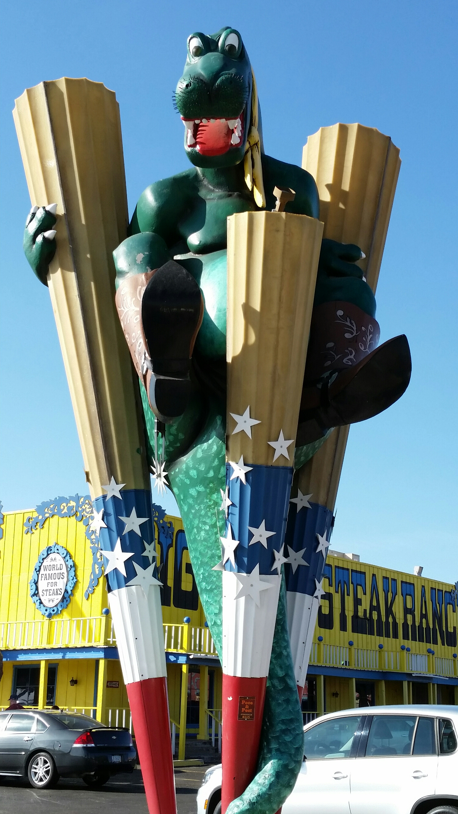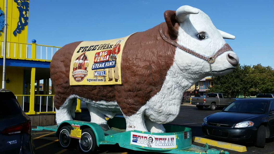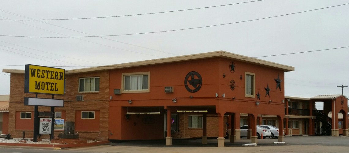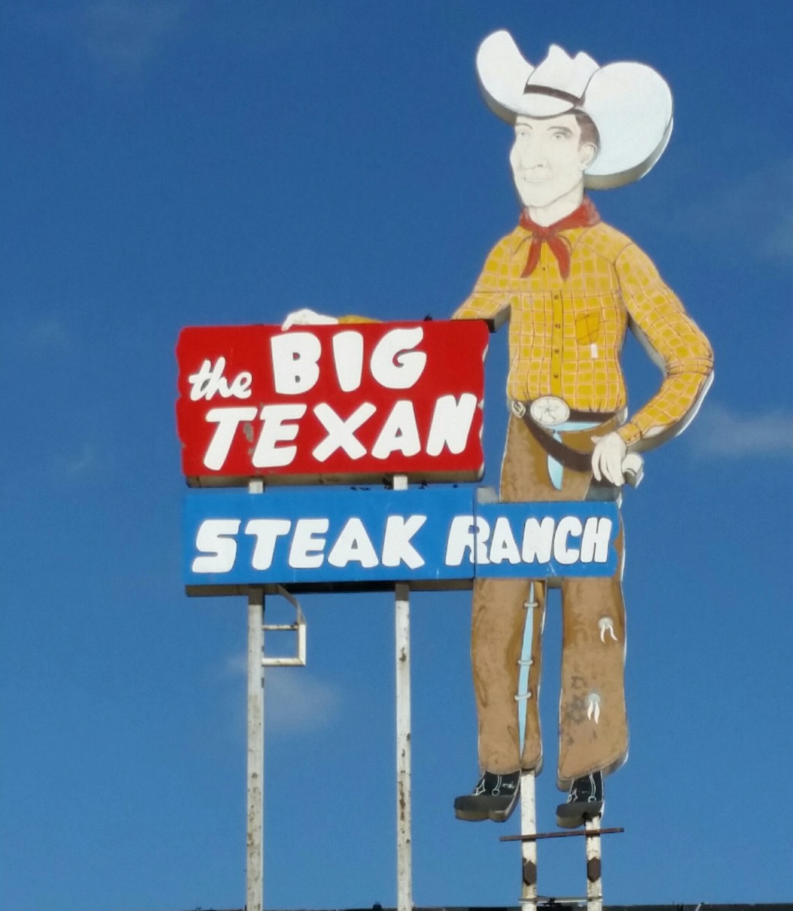 Amarillo by evening not morning!  First stop, the Big Texan, where you can have a 72 ounce steak free if you can eat it in one hour!  No way for me, I’ve already had my red meat this week!  It was though a very neat place to see.  There was a big open type bar out back, the restaurant, slot machines, a motel and you guessed it, a gift shop.  The rest of the pictures I took driving through Amarillo on the historic 66, 6th Ave were alot of the building had been refurbished for other purposes.  I did find one business that had a date on the building back to 1910.