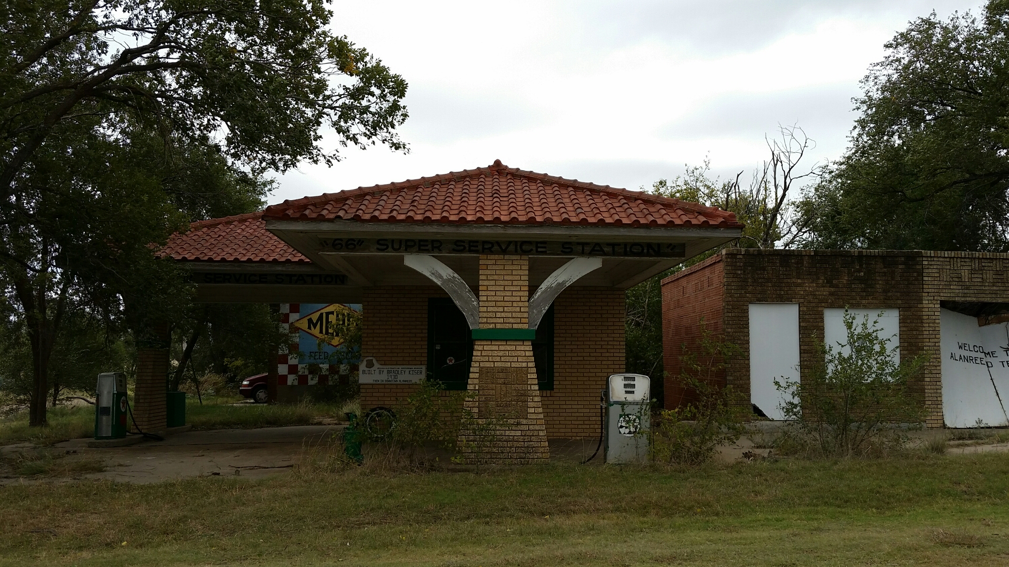 Now the adventure starts!  I decided to take the old 66 dirt road today through Alanreed.  Literally Main Street was dirt. I decided I had enough of dirt today and headed out of town to the paved 66 Route when I came across this old 66 Super Service Station, which was really cool.  I came to a crossroad and this was the most interesting Post Office I have seen to date!