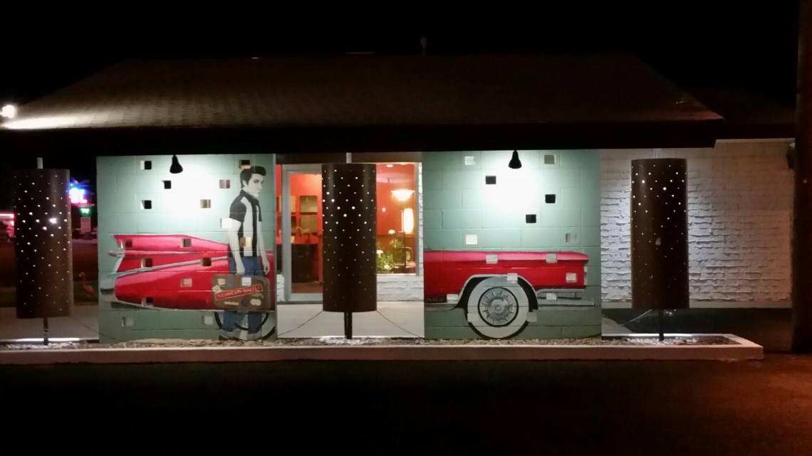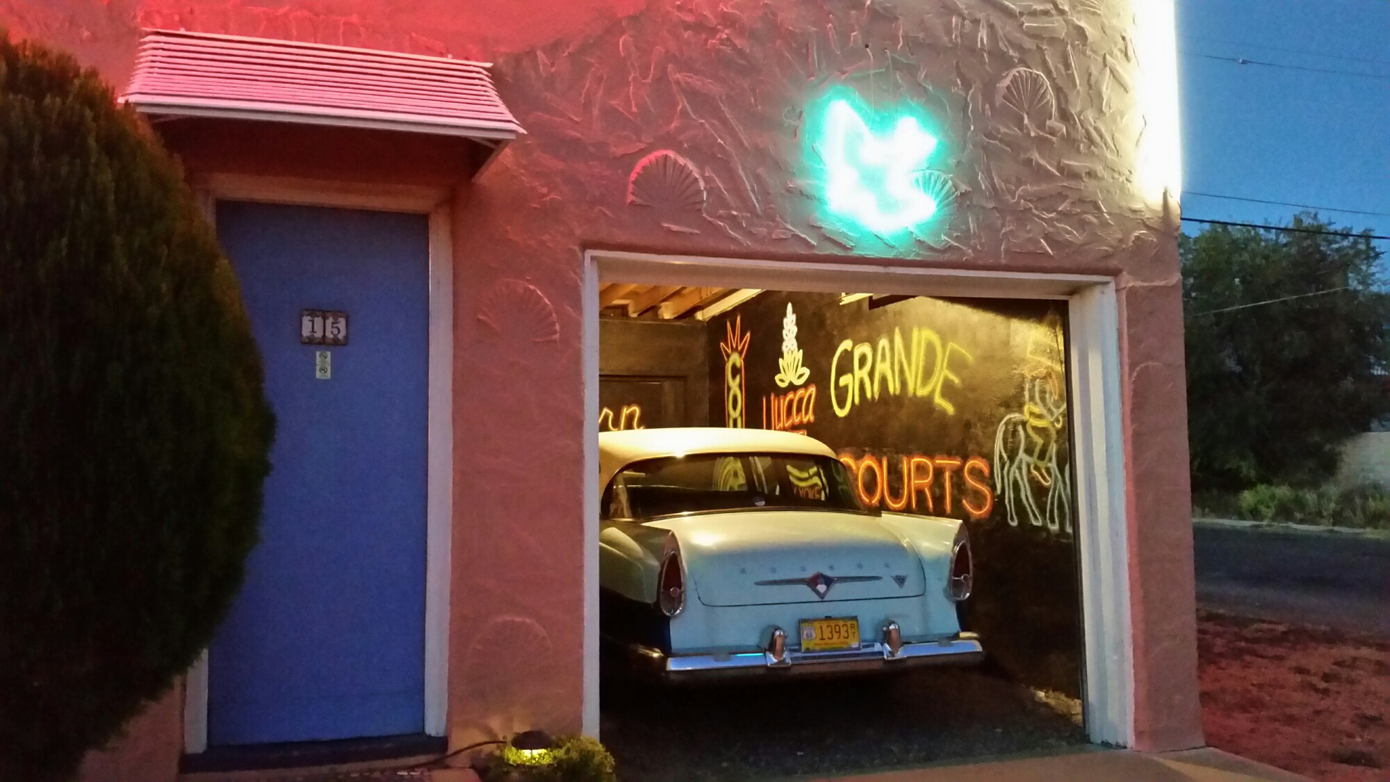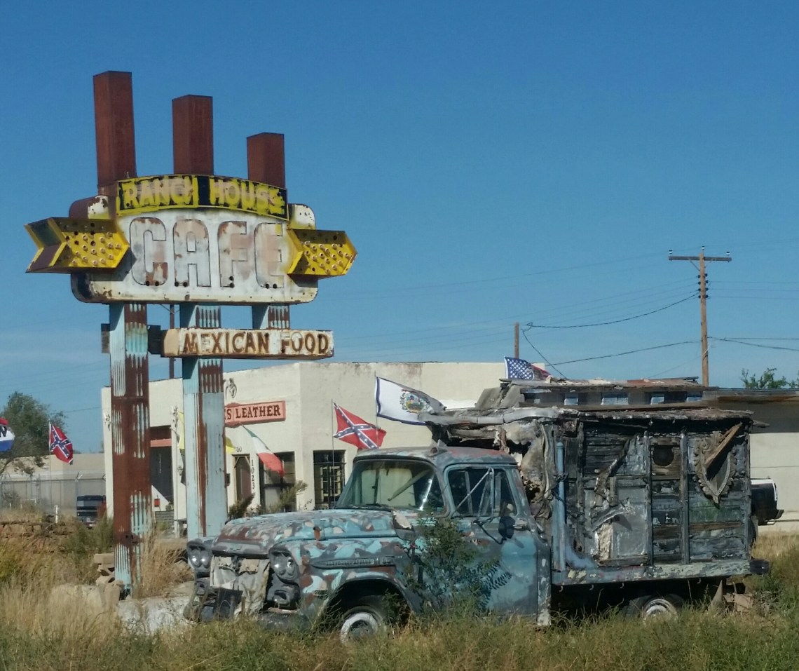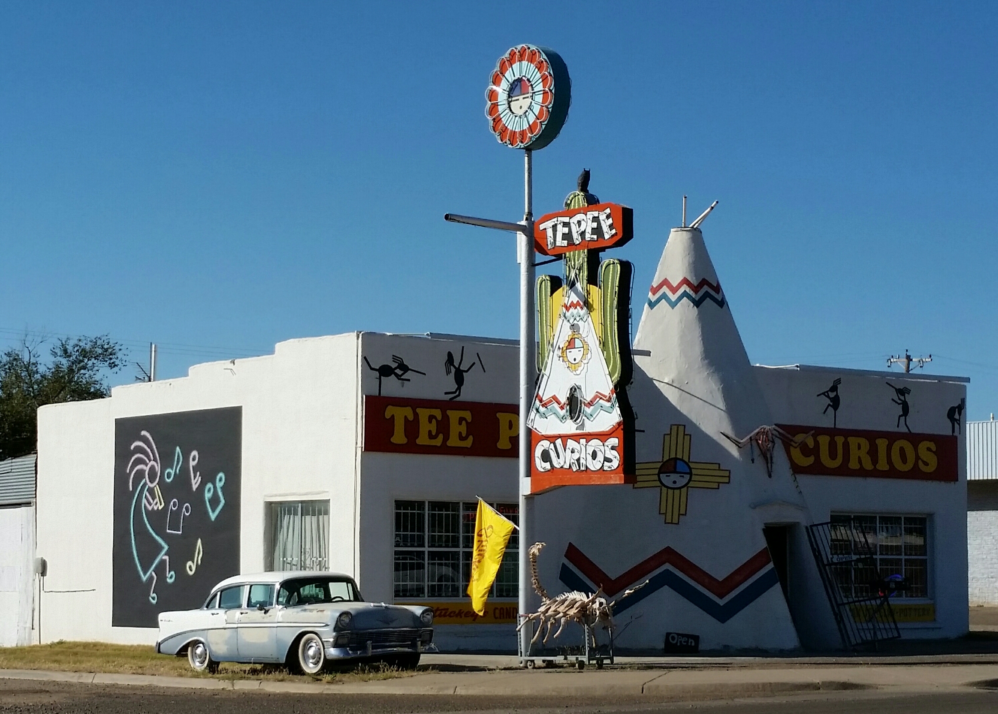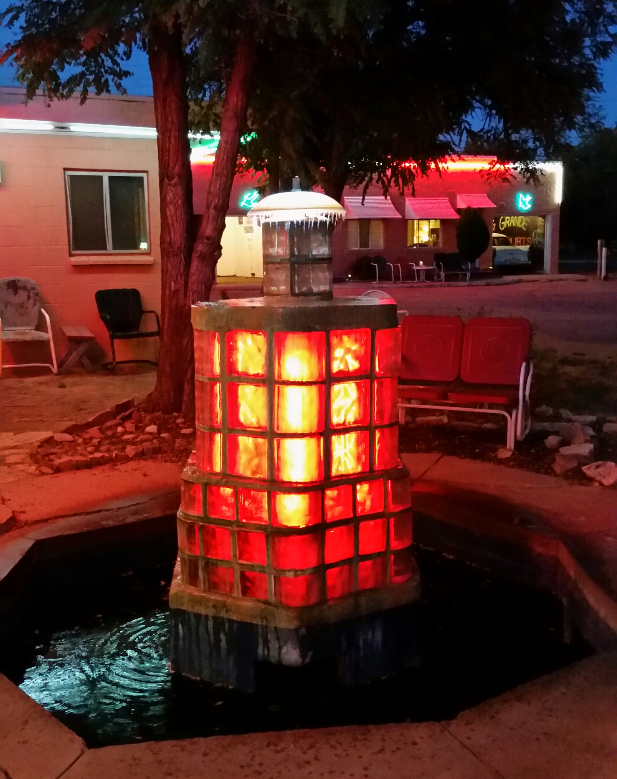 Today’s blog is starting from last night in Tucumcari NM. I tried to find as much neon as I could. The Blue Swallow Motel was the most amazing one. You could get out and walk around and it took you right back in time. The picture with the refrigerator was actually the laundry room, so no I am not a peeping tom! I think my friend Julie needs to have Rod build her a fountain like the one in the picture. Some of the other neons that I found were Del’s Restaurant, Tee Pee Curios and LA Cita. In the morning I drove that way again and caught some cool buildings, gas stations and the museums.