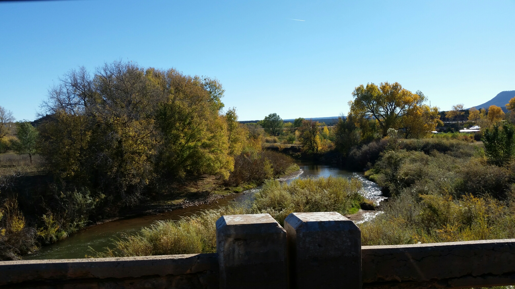 I decided this morning that once I visited Santa Rosa that instead of doing the 1940s part of Historic Route 66 instead I would drive the very early part through Santa Fe. But first I am in search of the Blue Hole in Santa Rosa. As I entered the town of Santa Rosa there was a Auto Museum but I drove by and checked out the rest of the town. I had lunch to go at the Route 66 Restaurant and the place was simple but classic 66 style. A few other places of interest that I saw were the Club Cafe, Joseph’s Bar & Grill and the Comet II Restaurant. So now we are off on our hunt for the Blue Hole, I pulled in to a city park and let Frannie run around as we shared my grilled cheese sandwich and fries. The park was a big swimming hole with water slide and all. There was a bit of a breeze today and only about 75 degrees but there were people swimming. Ahhh at last the Blue Hole, a deep , clear blue artesian well. It is a popular place in the US for scuba diving and training. I bet the dive club back in Lawrenceburg TN might enjoy this one. The water was clear and there were two fluorescent type lights down in the water. It is 81 foot deep and 60 feet in diameter. The water is a crisp 61 degrees.