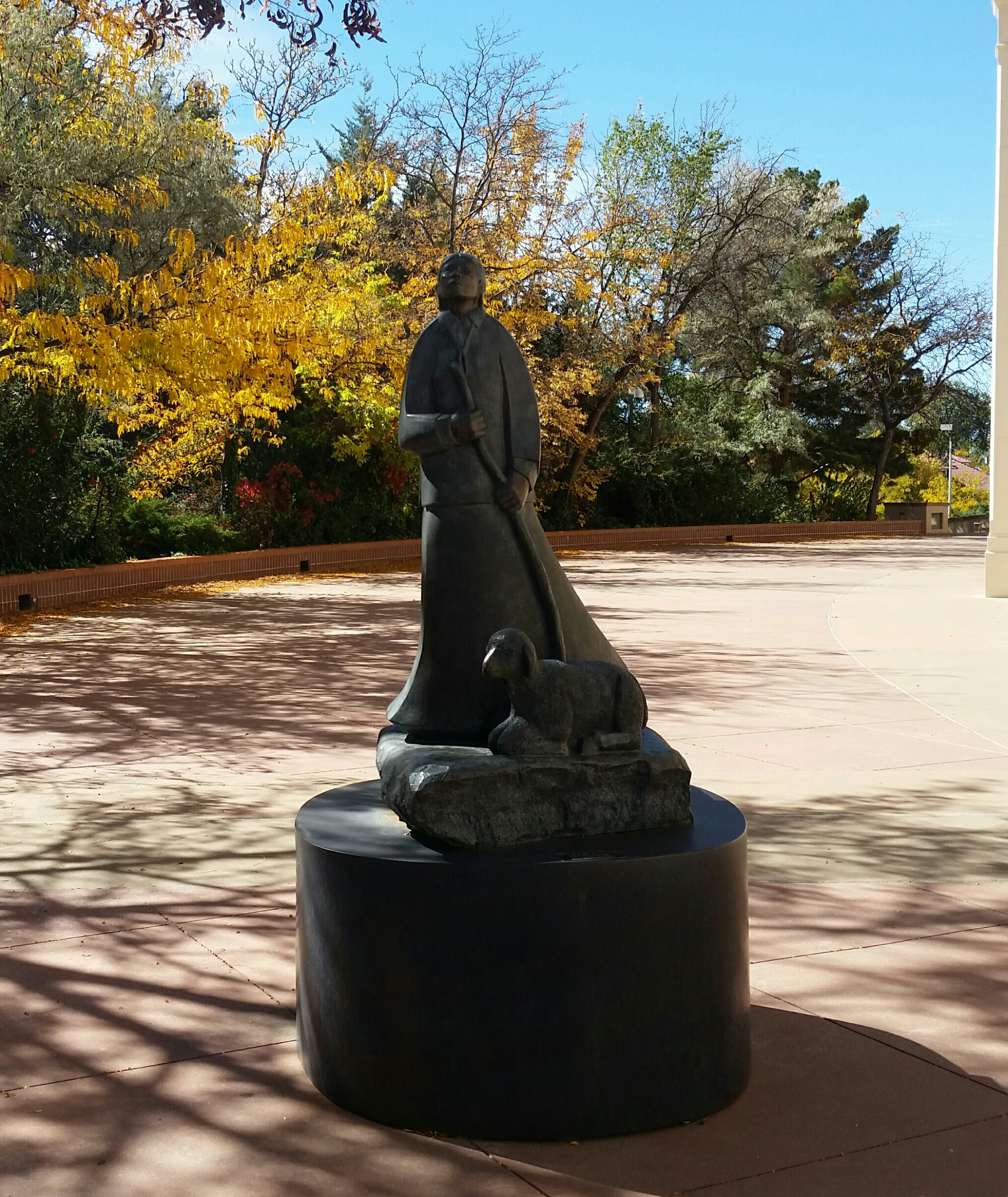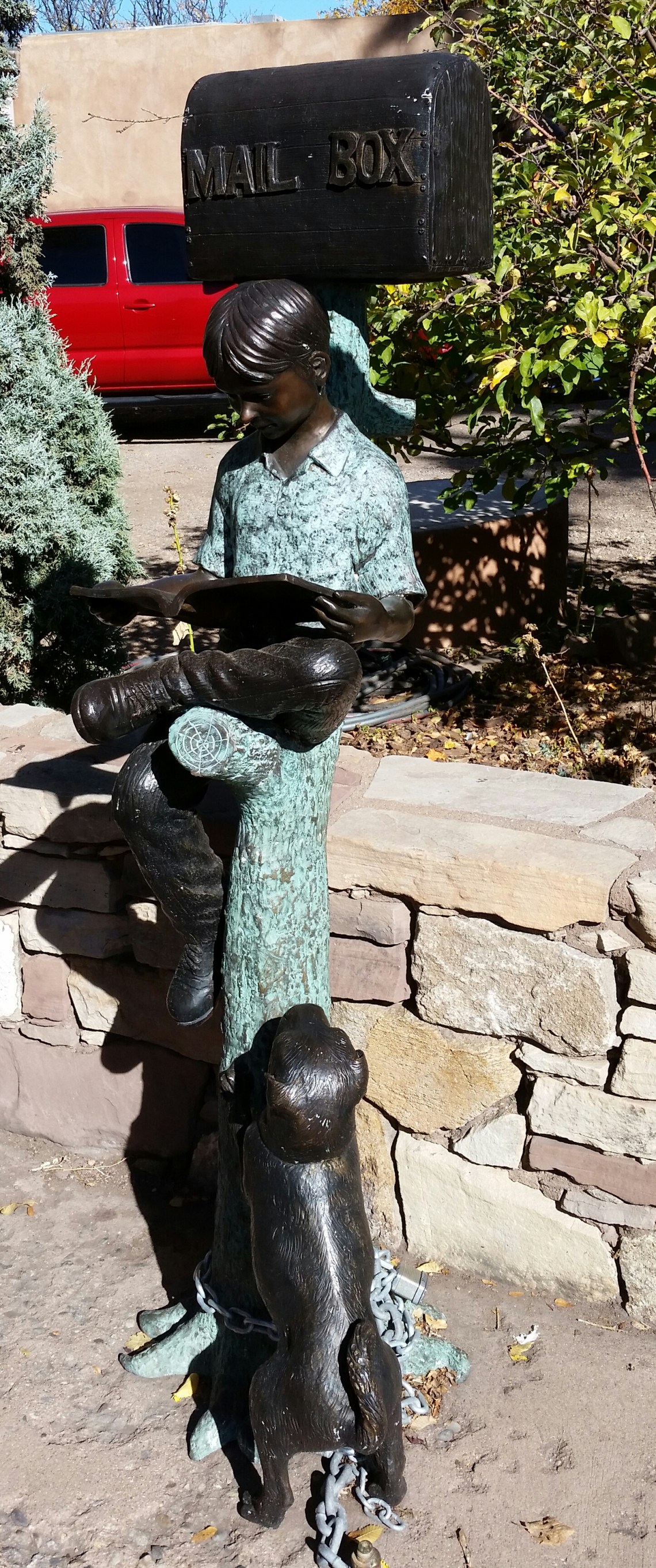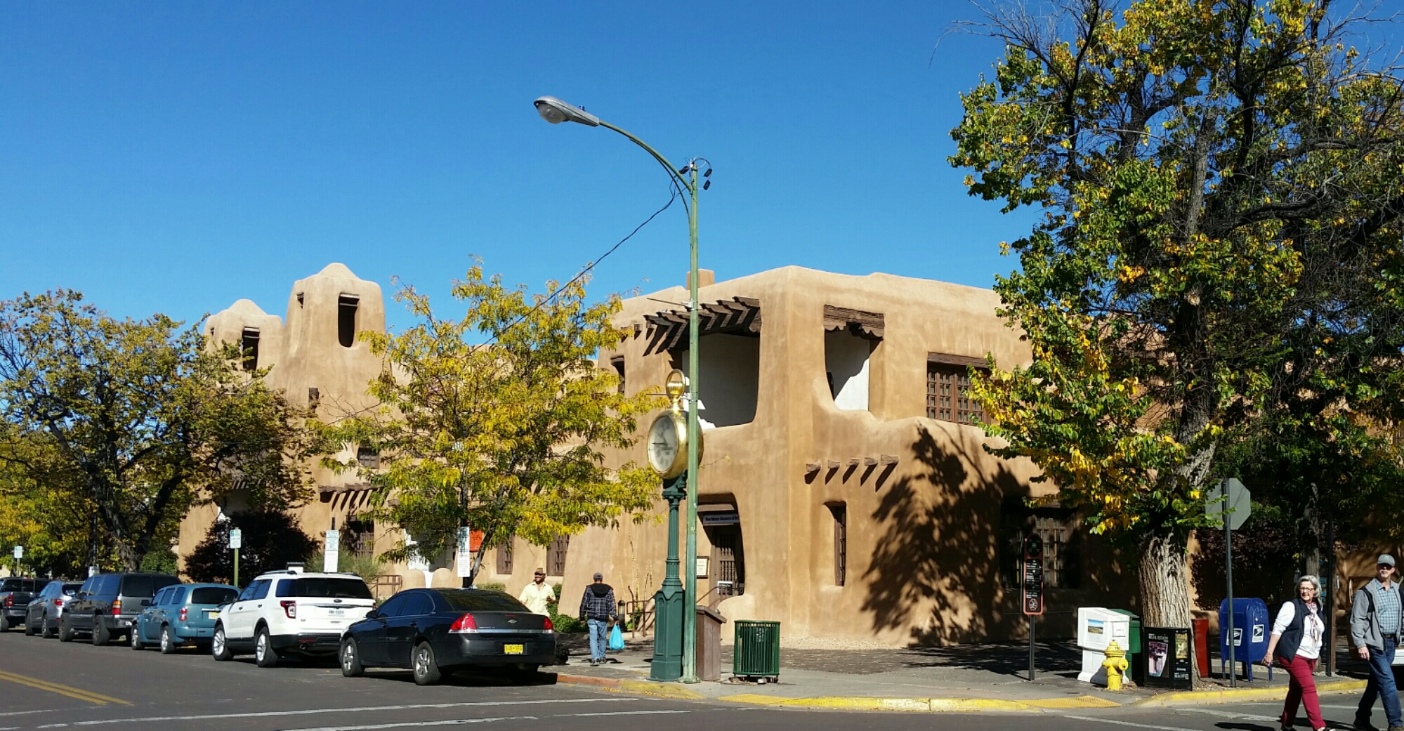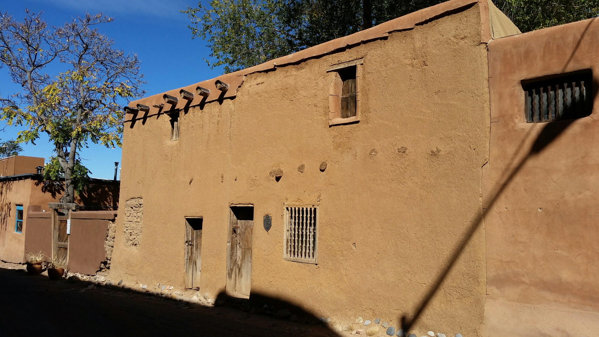 Good Morning Santa Fe! Time to explore! I started my morning with a great view of the mountains. Headed into town, I saw a sign for Museum Hill…ok I am game but just too early again. They had several different museums to include a 14 acre botanical gardens. I then headed to the downtown area and found a place to park. I visited the San Miguel Church which is the oldest church in the US with the oldest Bell which was covered with pendants of all sorts, the church was small but beautiful (1610). Adjacent to the church was the oldest house (1610). I also found tons of shopping at the plaza and it was a beautiful fall day here. I visted the state capital building and found some interesting sculptures. While I was walking around I found the Loretto Chapel and another church and the Palace of the Governors. On my way to the car I visted an open market and bought me a queen size mink blanket. Making my way back to Route 66 I passed the EL Rey Inn, the Kings Rest Court and the Western Scene.