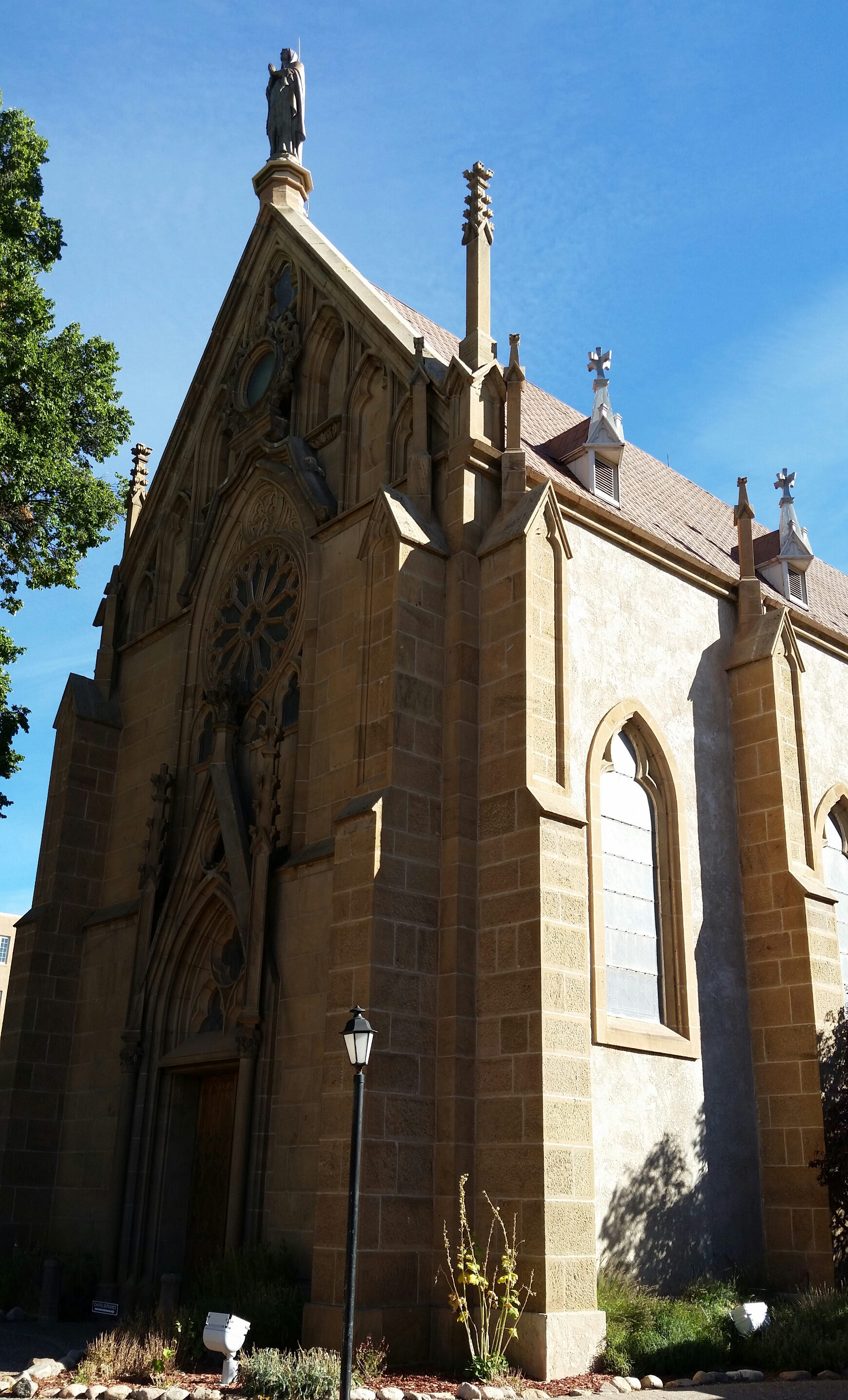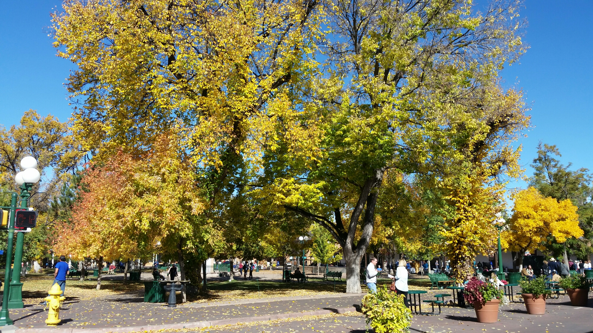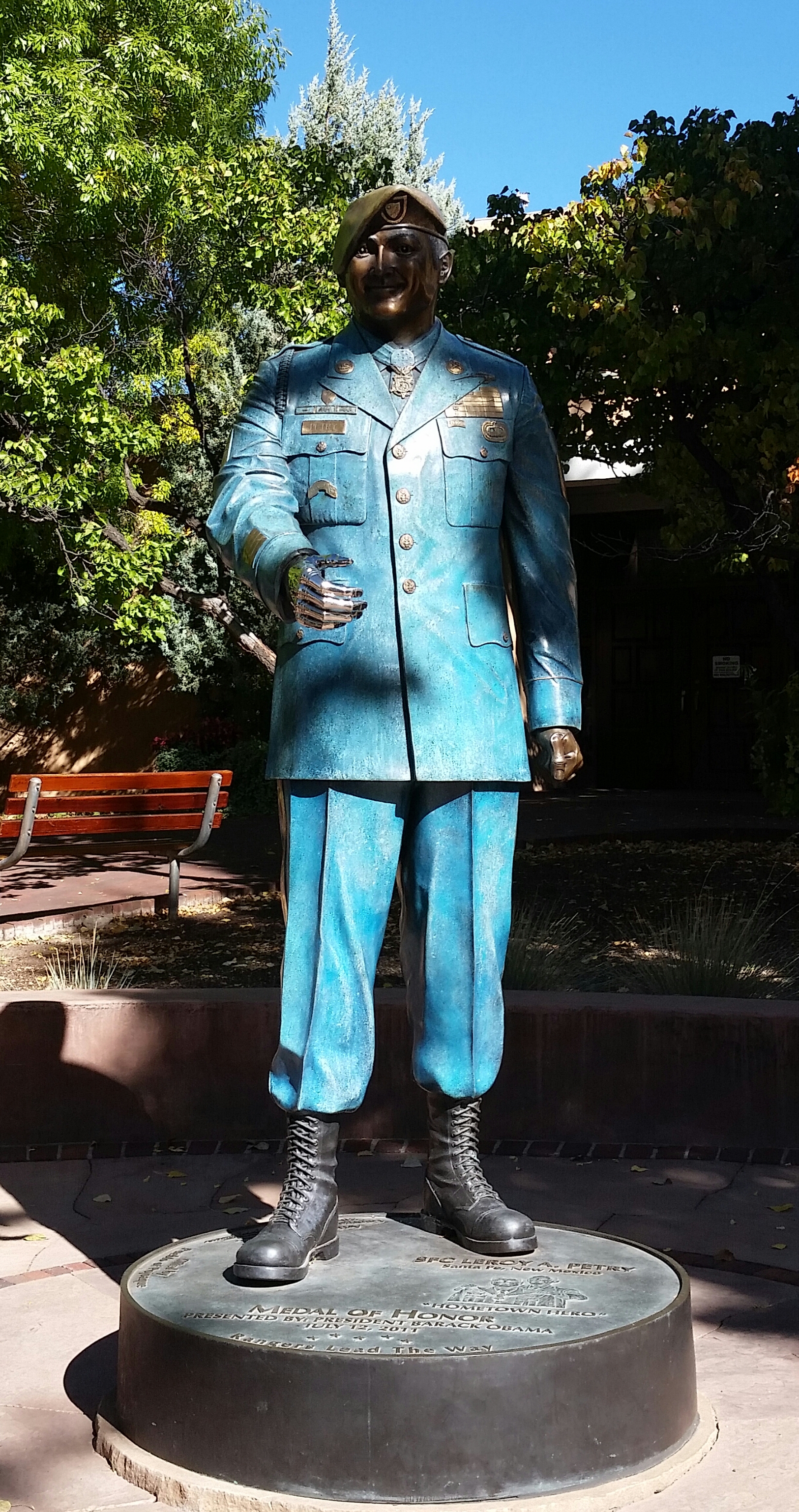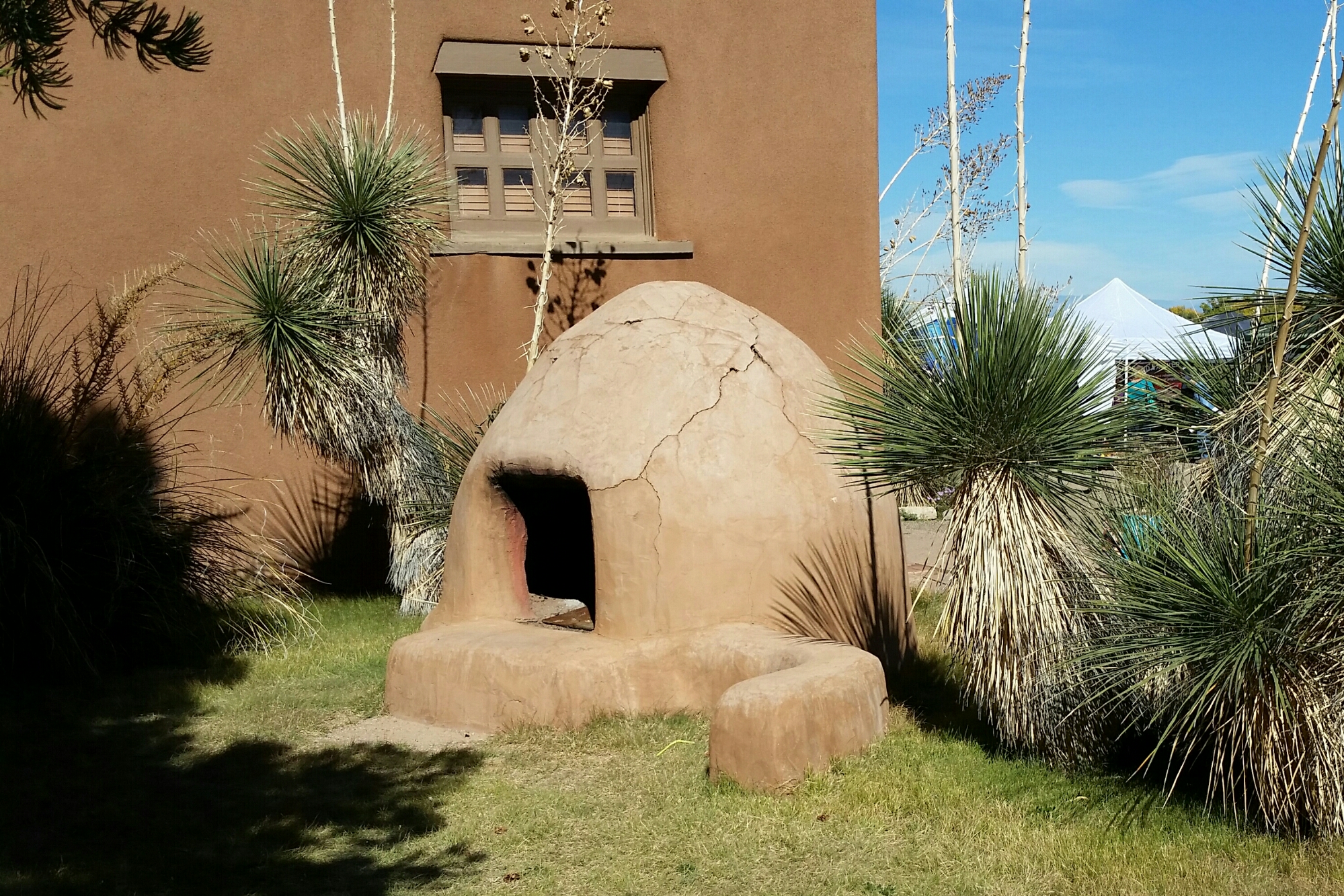 Good Morning Santa Fe! Time to explore! I started my morning with a great view of the mountains. Headed into town, I saw a sign for Museum Hill…ok I am game but just too early again. They had several different museums to include a 14 acre botanical gardens. I then headed to the downtown area and found a place to park. I visited the San Miguel Church which is the oldest church in the US with the oldest Bell which was covered with pendants of all sorts, the church was small but beautiful (1610). Adjacent to the church was the oldest house (1610). I also found tons of shopping at the plaza and it was a beautiful fall day here. I visted the state capital building and found some interesting sculptures. While I was walking around I found the Loretto Chapel and another church and the Palace of the Governors. On my way to the car I visted an open market and bought me a queen size mink blanket. Making my way back to Route 66 I passed the EL Rey Inn, the Kings Rest Court and the Western Scene.