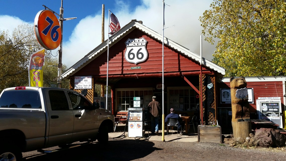 Off of I-40 and on some paved Route 66! Through Parks AZ there was the old Parks Store and Union 76 gas station.