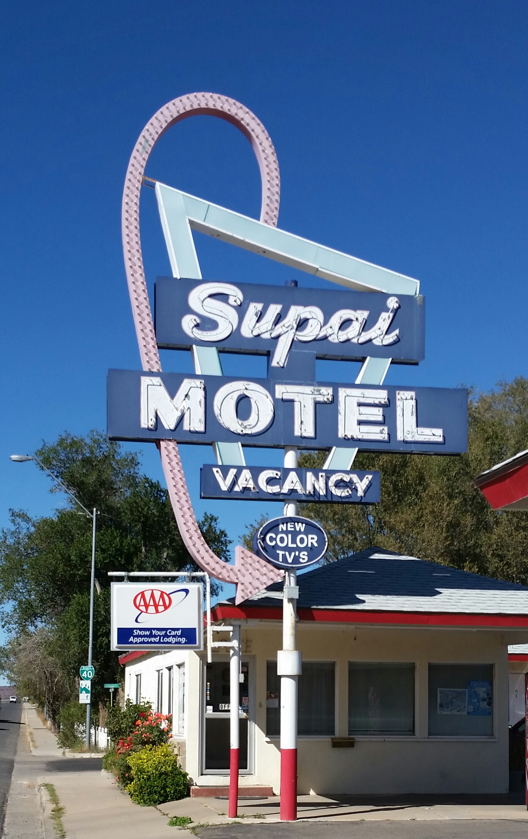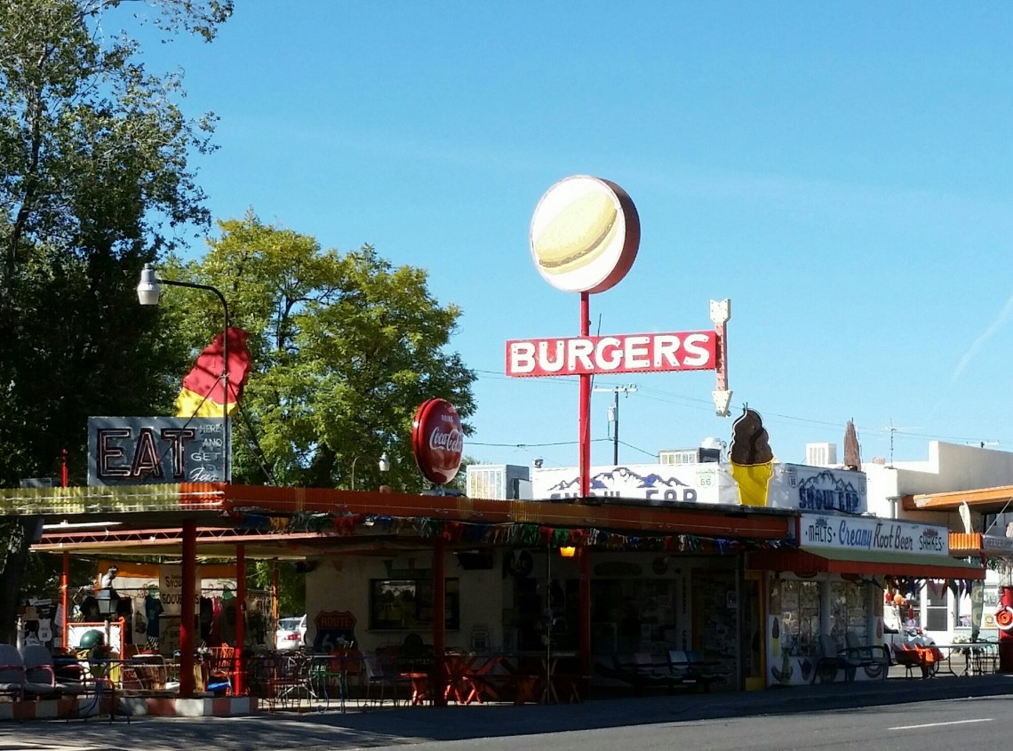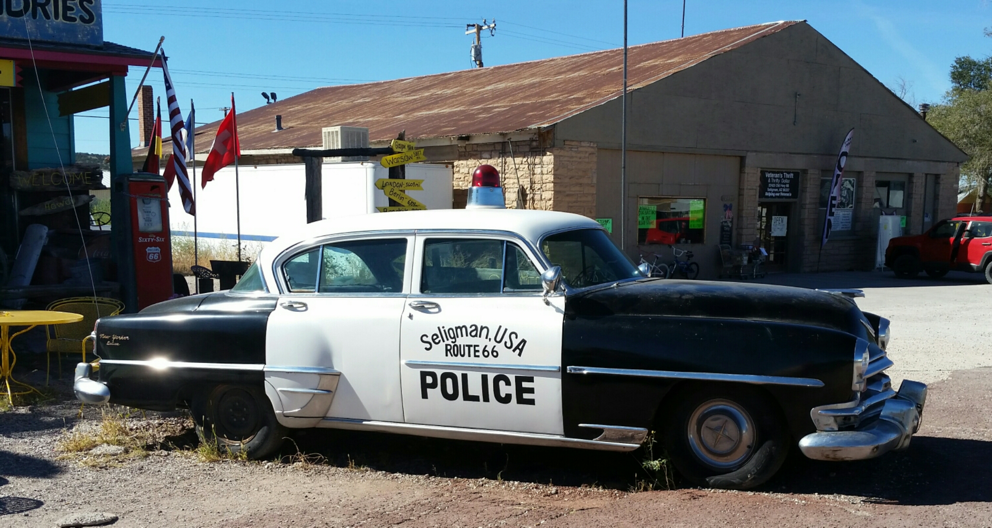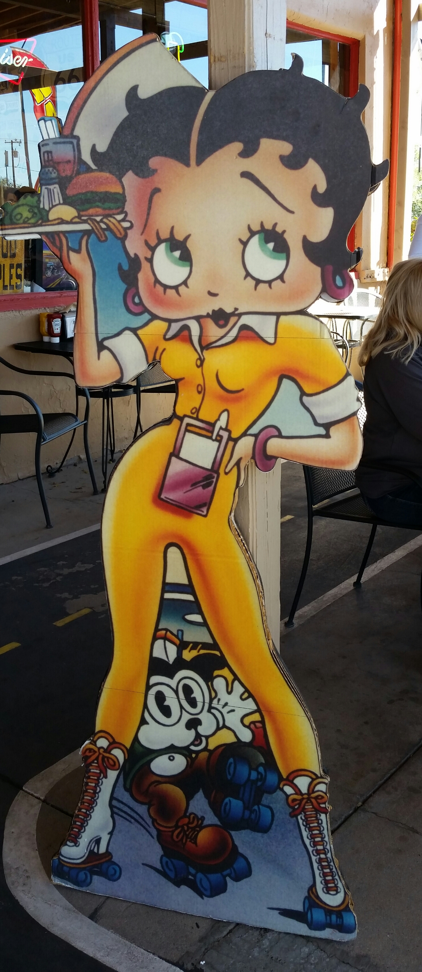 I finally get to drive a long stretch of original Route 66! 86 miles to be exact. The scenery has changed again and I love that it does that! I drove over Crookston Crossing, a pair of old railroad overpasses, then into Seligman AZ. What a hopping place! There was a nostalgic old dairy bar called the Snow Cap and in walking distance a variety of souvenir shops, relics and old cars. There were two vintage motels also, the Route 66 Motel and the Supai Motel. Favorite place by far was the Roadkill Cafe where I had lunch! Thought I would try something different so I ordered the Buffalo Burger, fries and a Pepsi….oh my delish!