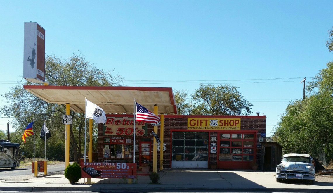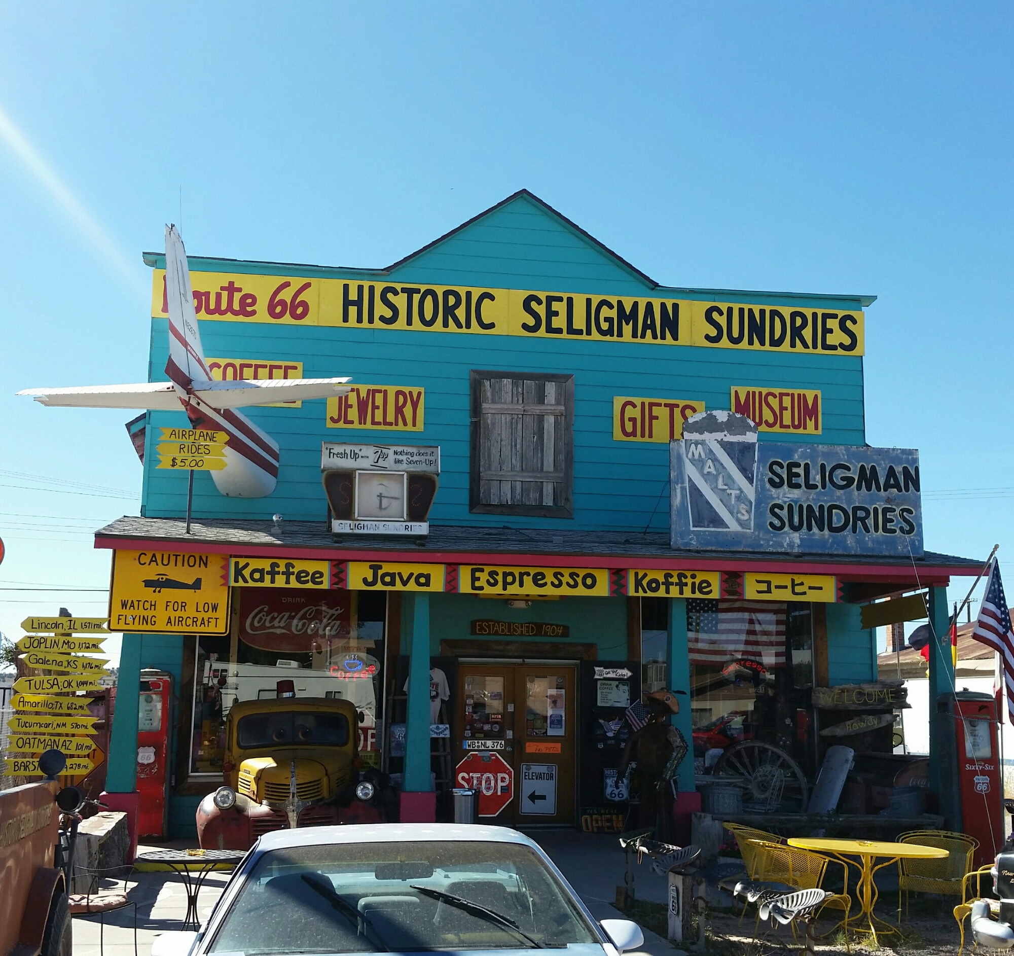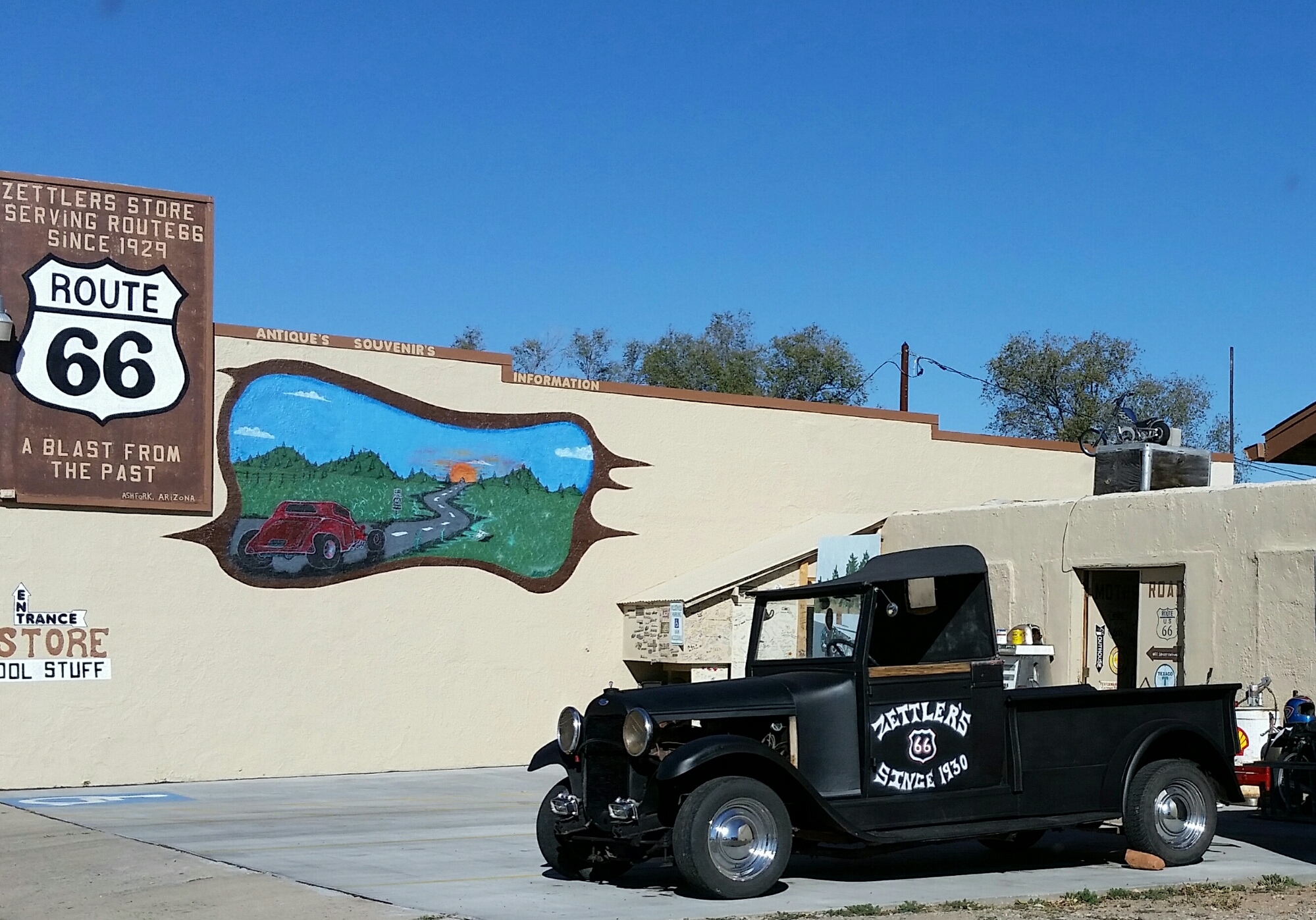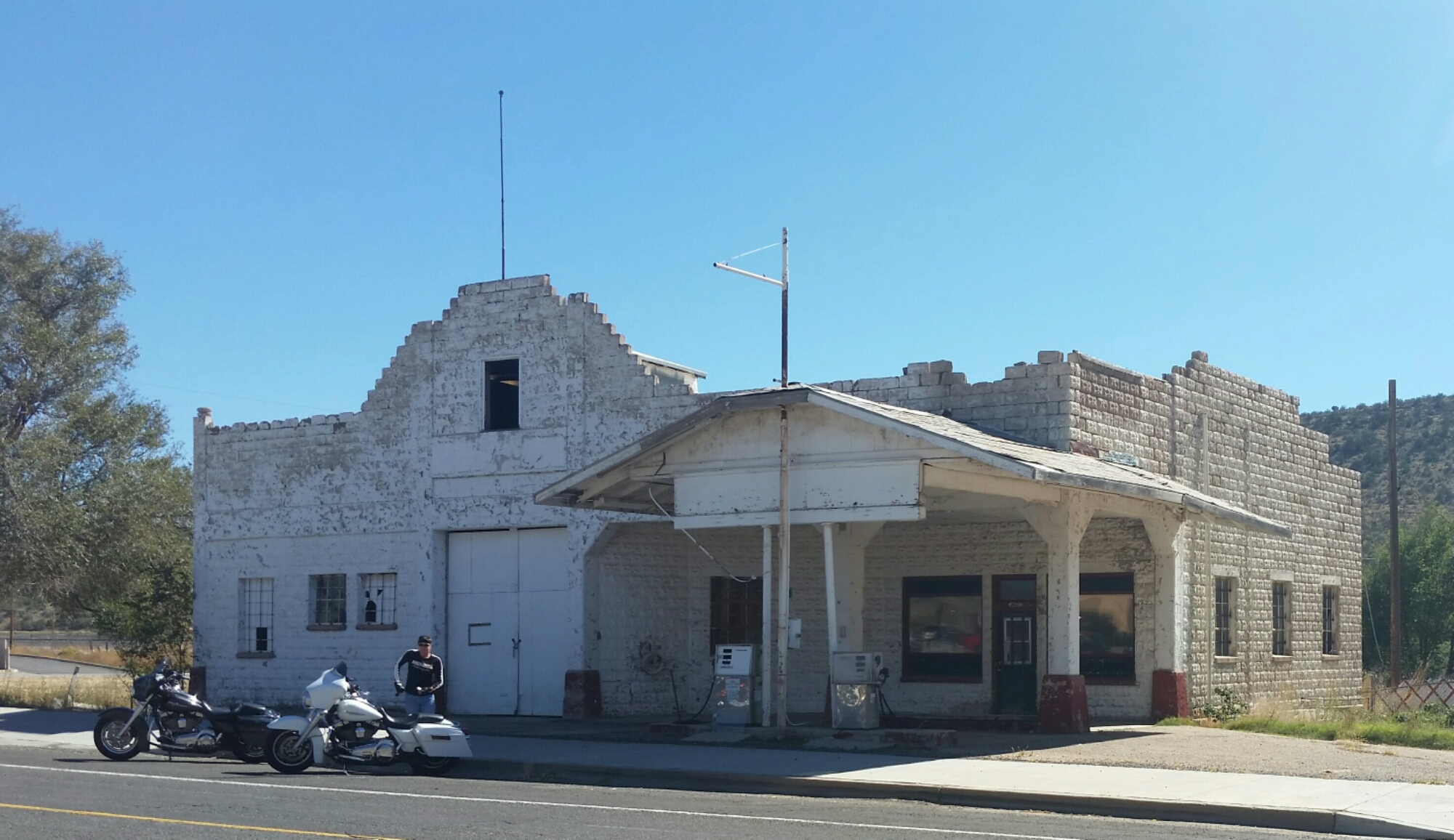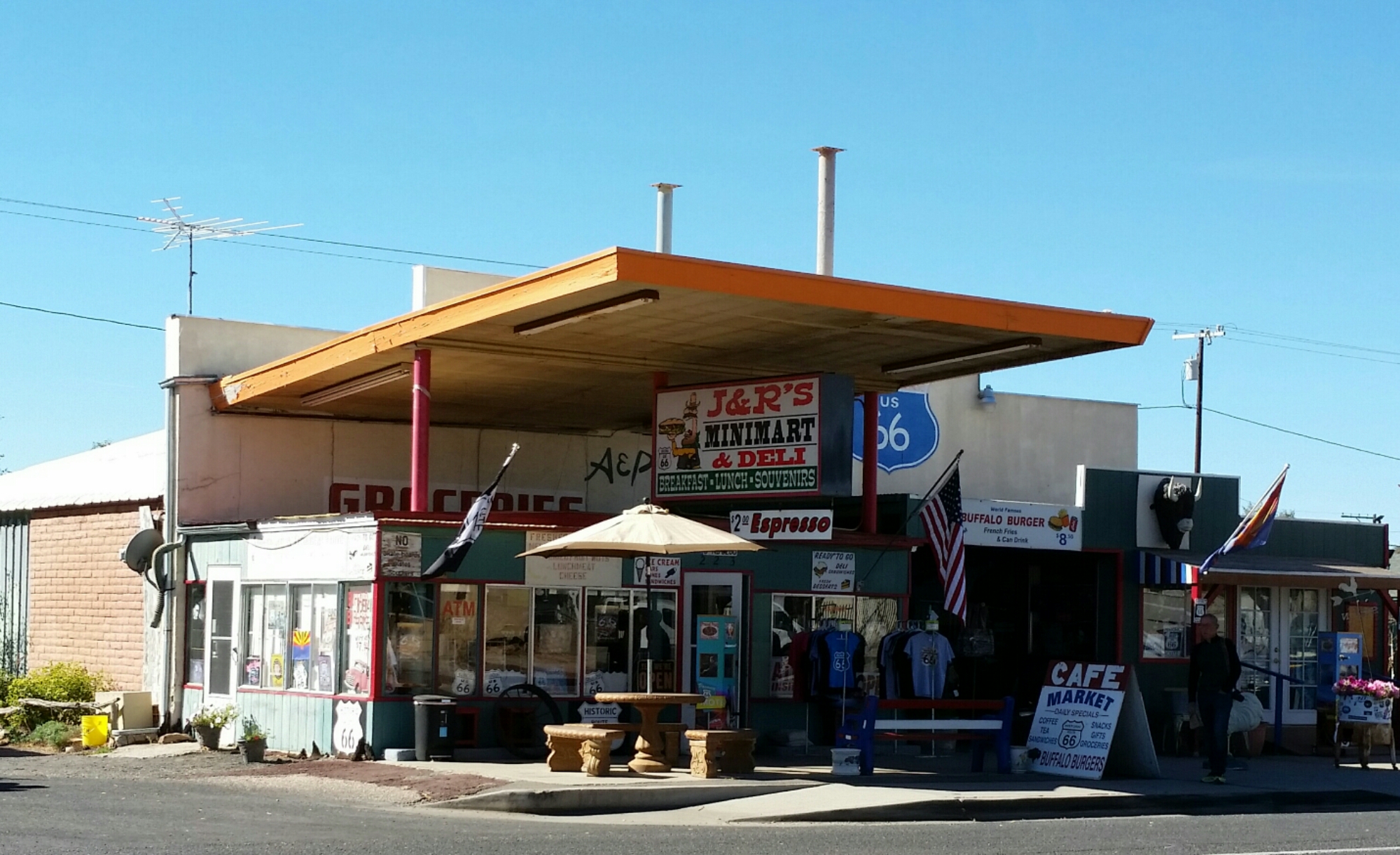 Peach Springs AZ, said to be one of the inspirations for the movie CARS, the other being Baxter Springs KS. There was an old Trading Post and a store beside it and down the street a 1928 gas station.