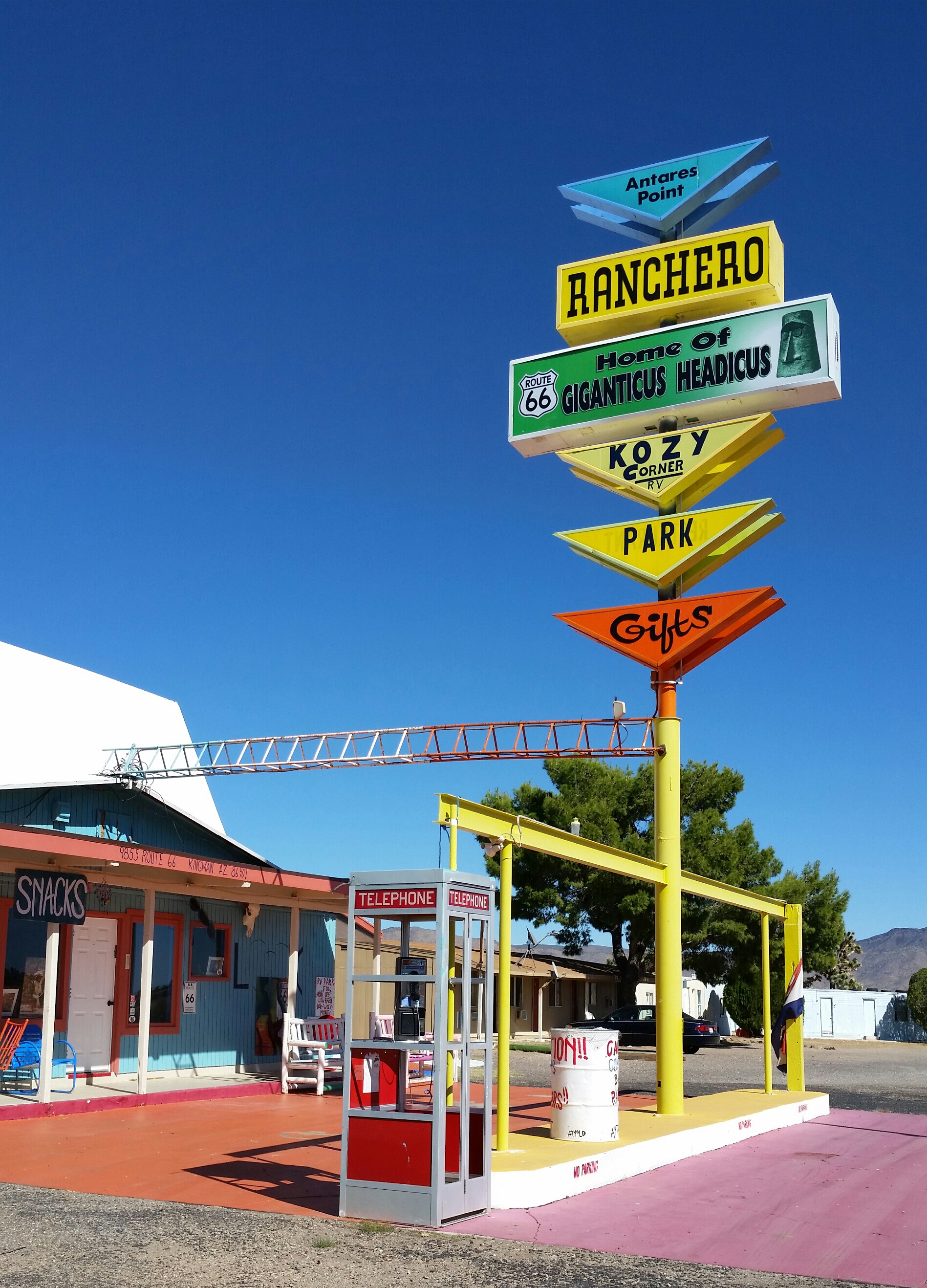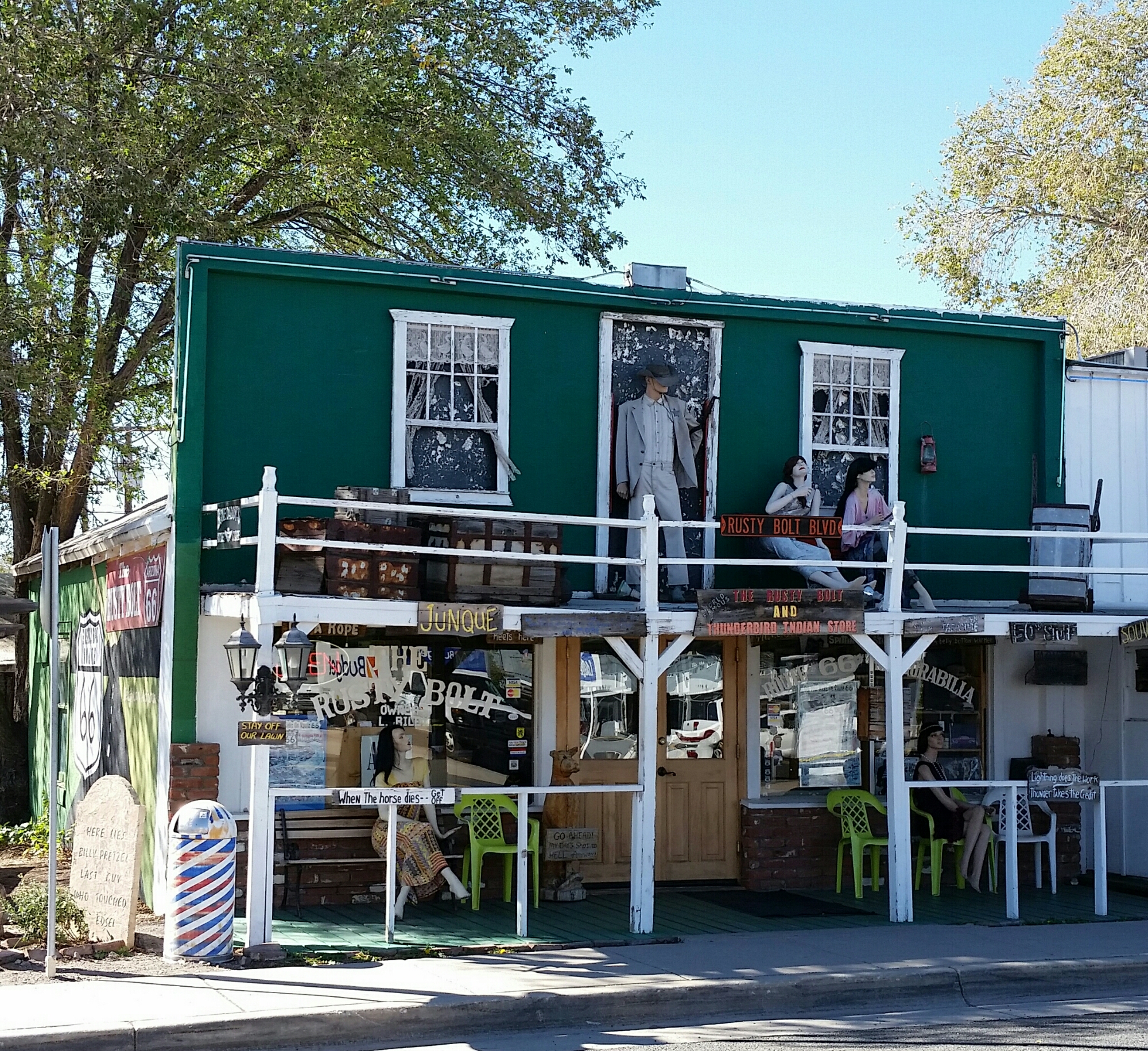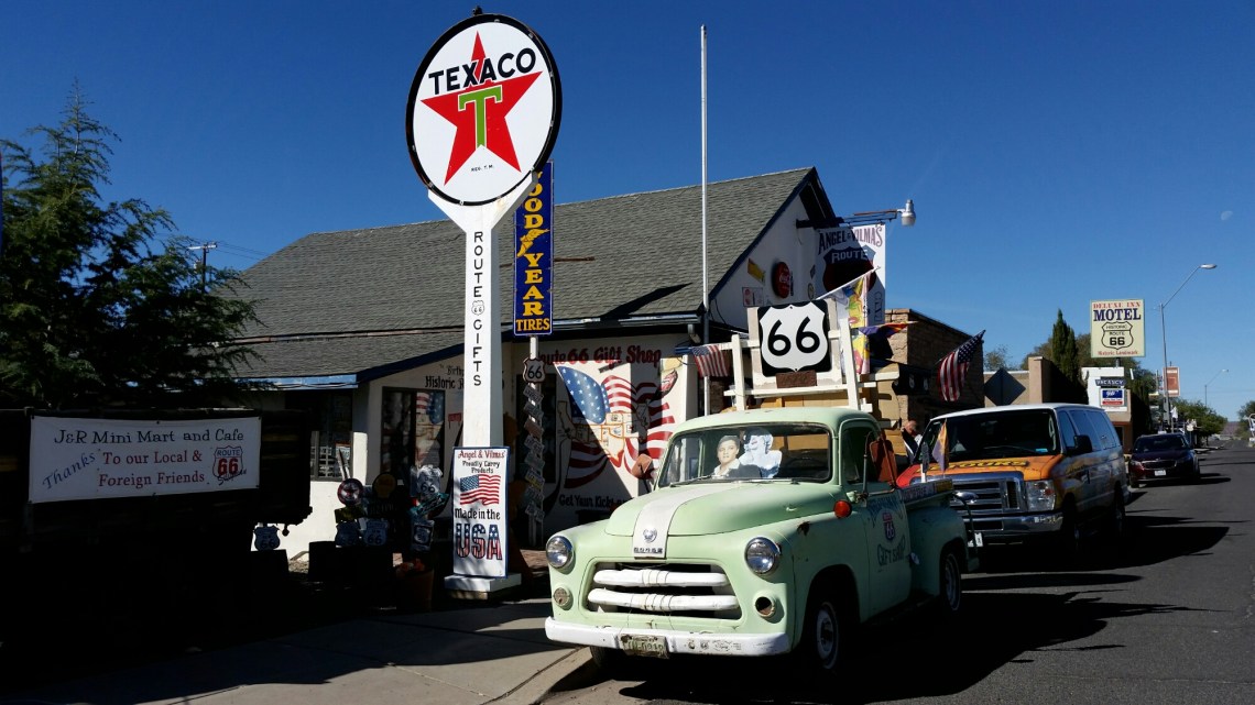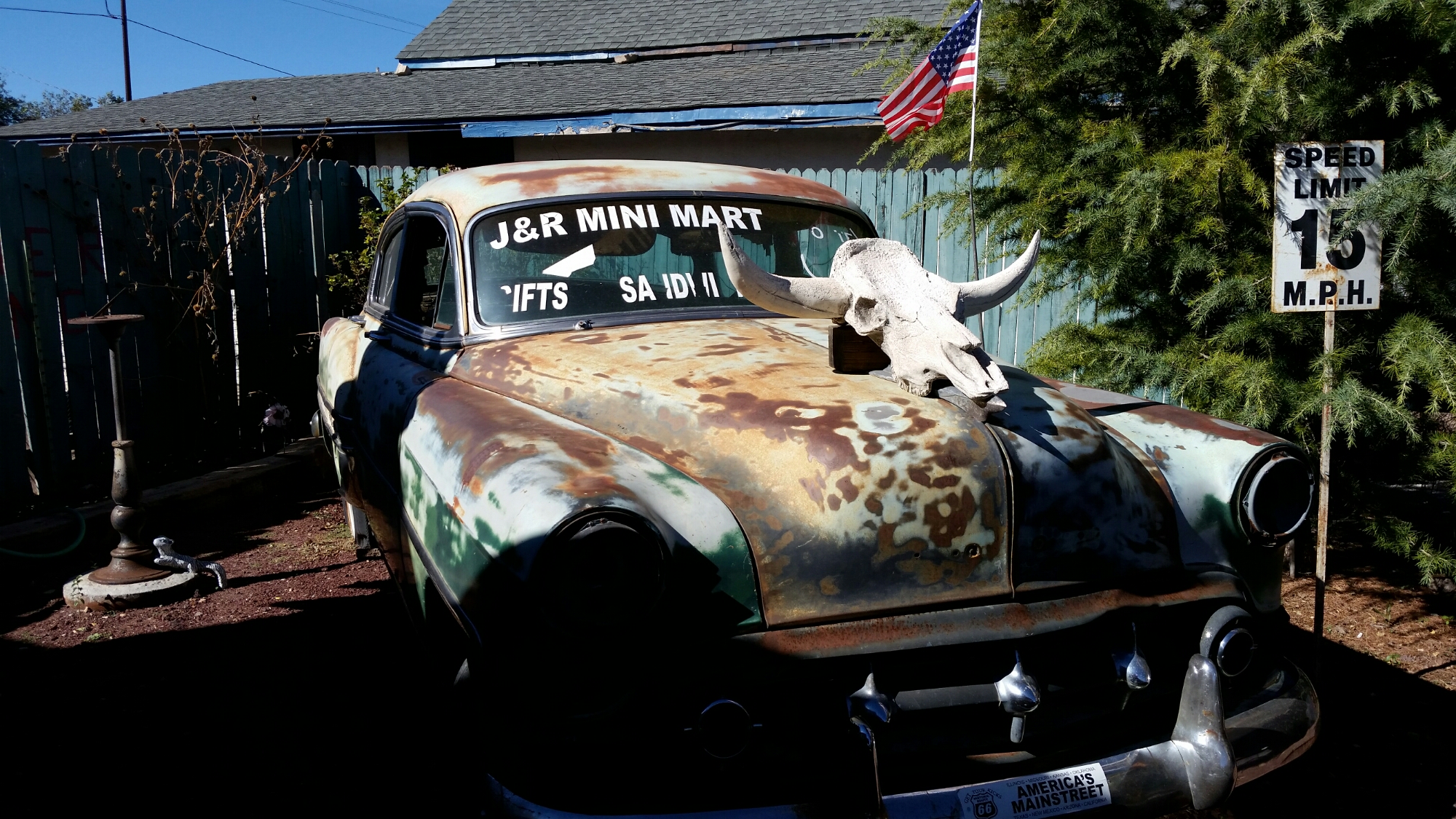 Peach Springs AZ, said to be one of the inspirations for the movie CARS, the other being Baxter Springs KS. There was an old Trading Post and a store beside it and down the street a 1928 gas station.