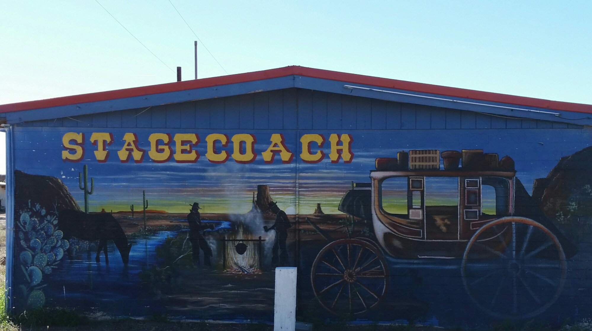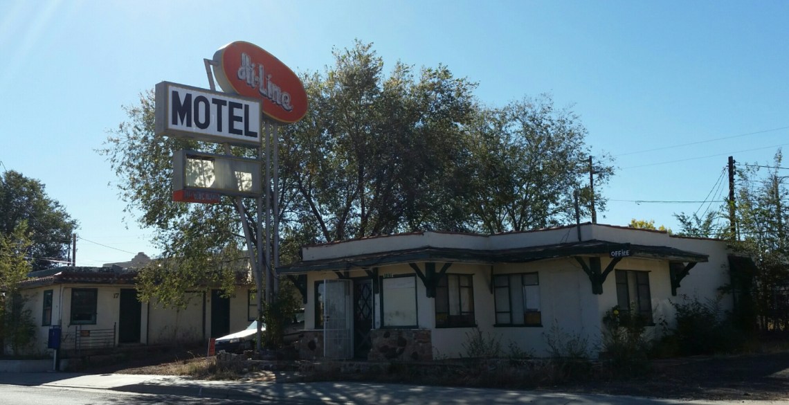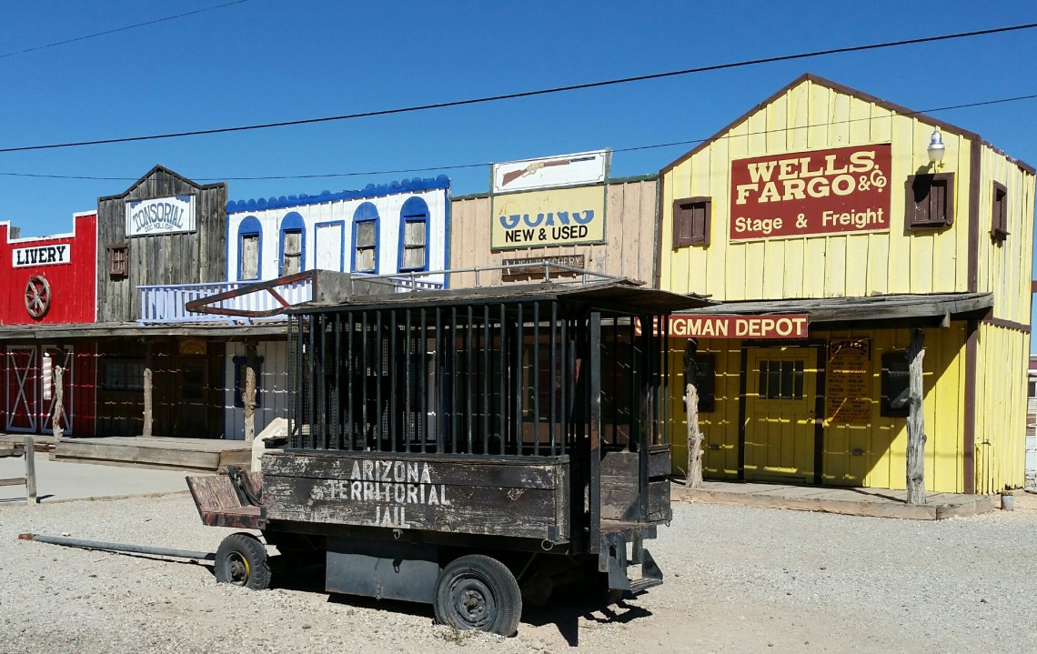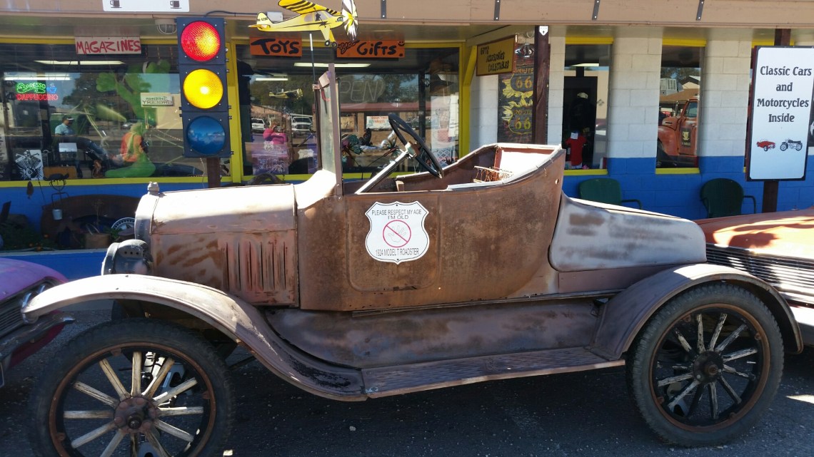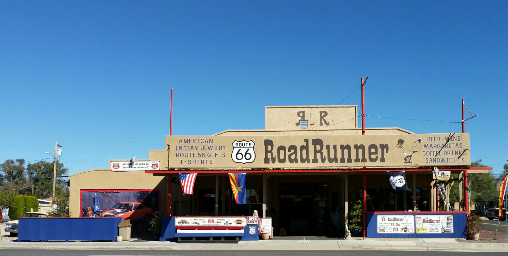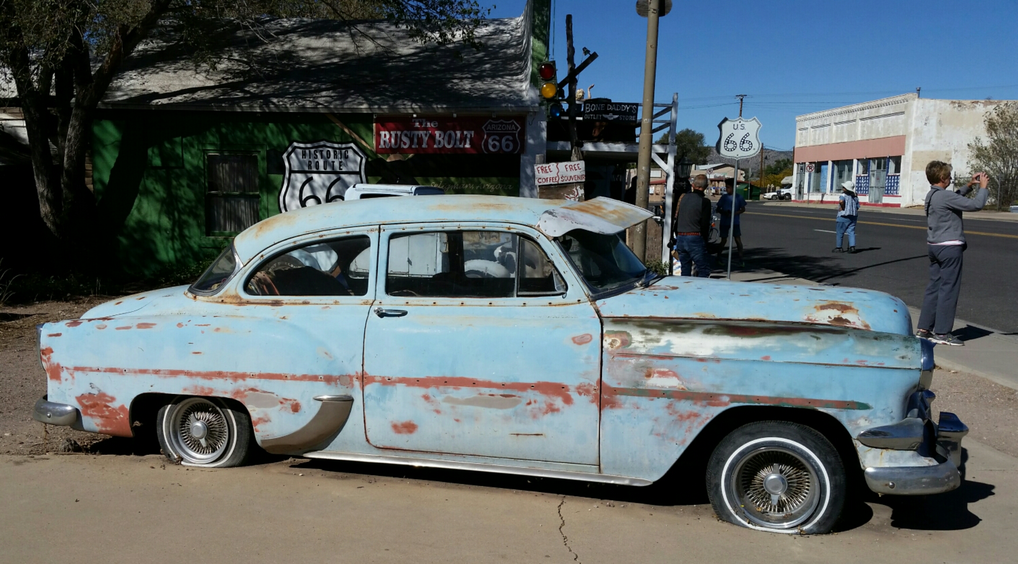 Peach Springs AZ, said to be one of the inspirations for the movie CARS, the other being Baxter Springs KS. There was an old Trading Post and a store beside it and down the street a 1928 gas station.