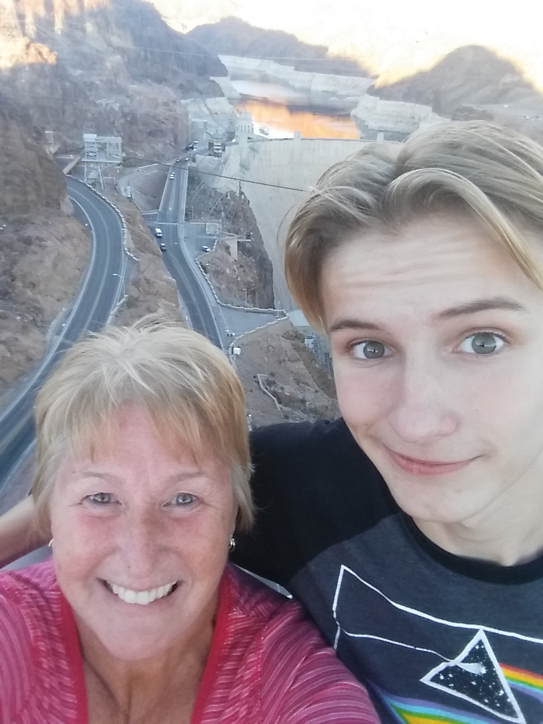 At this point I was ahead of schedule so instead of going into Kingman I drove to Las Vegas and picked up my grandson Alex and we headed to Hoover Dam. He had never seen the Dam or Lake Mead. We grabbed some subway and had a picnic while the sunset.