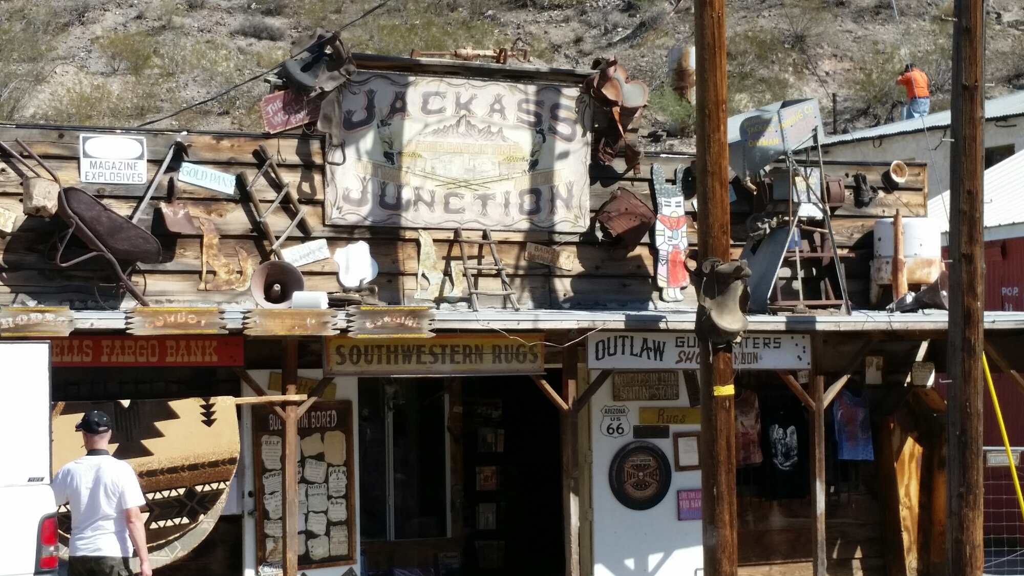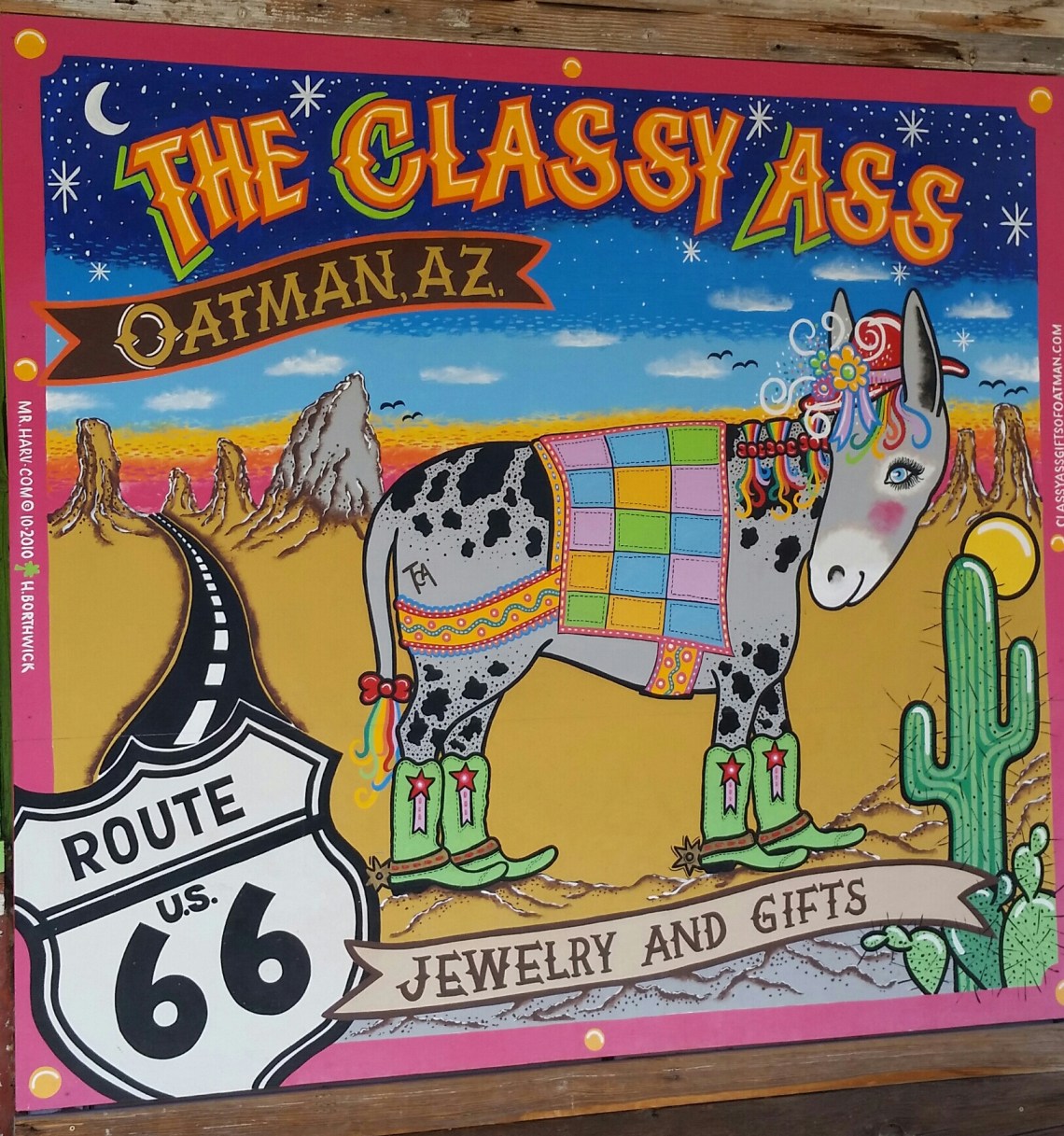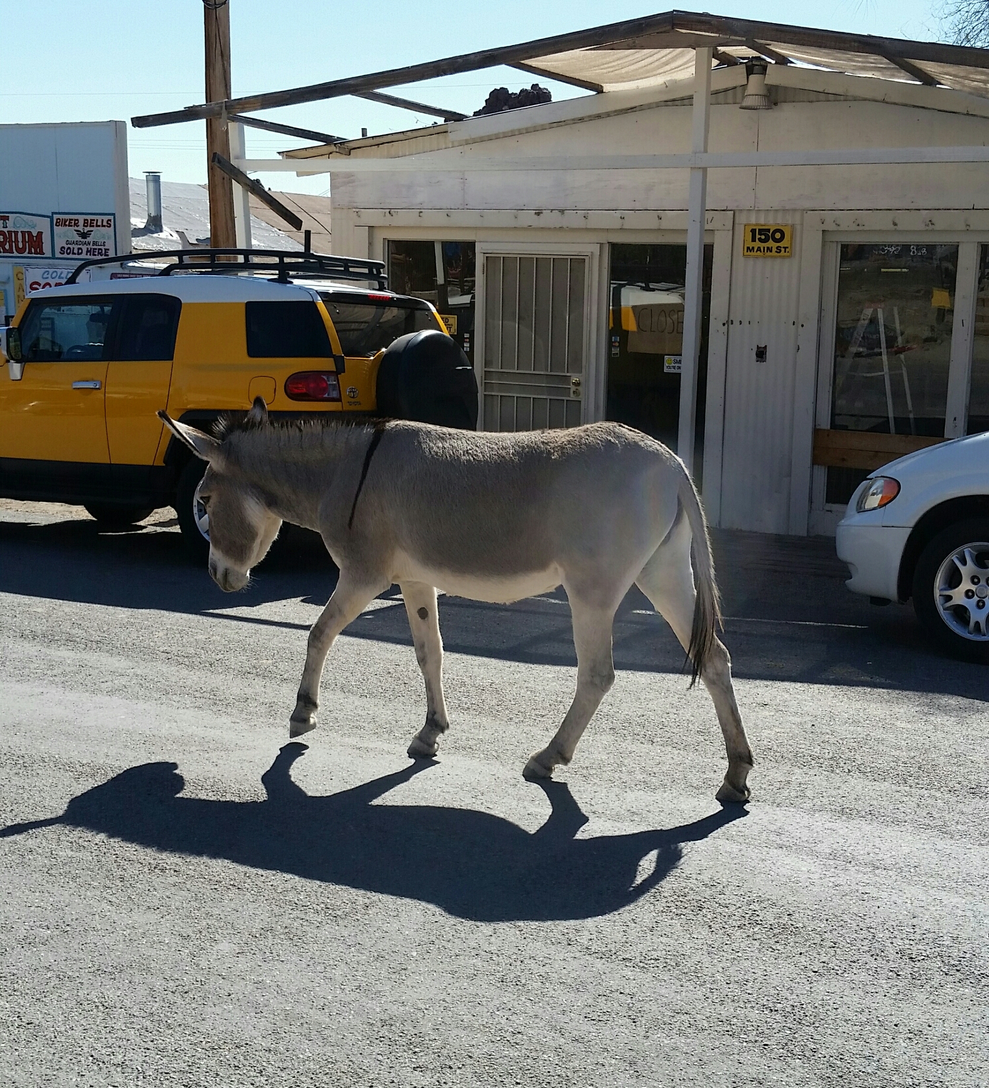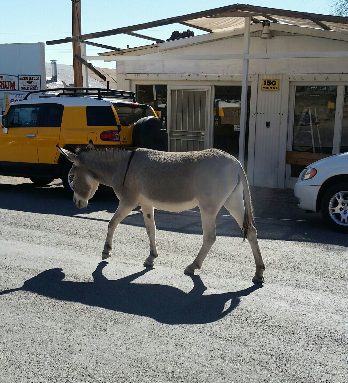 I descend into Oatman AZ an authentic western ghost town and mining camp. Drats! I didn’t see one ghost! I did see a lot of people and mules running freely. There are some very old buildings here and if you use your imagination you get a glimpse into the past. Frannie did not like the mules!