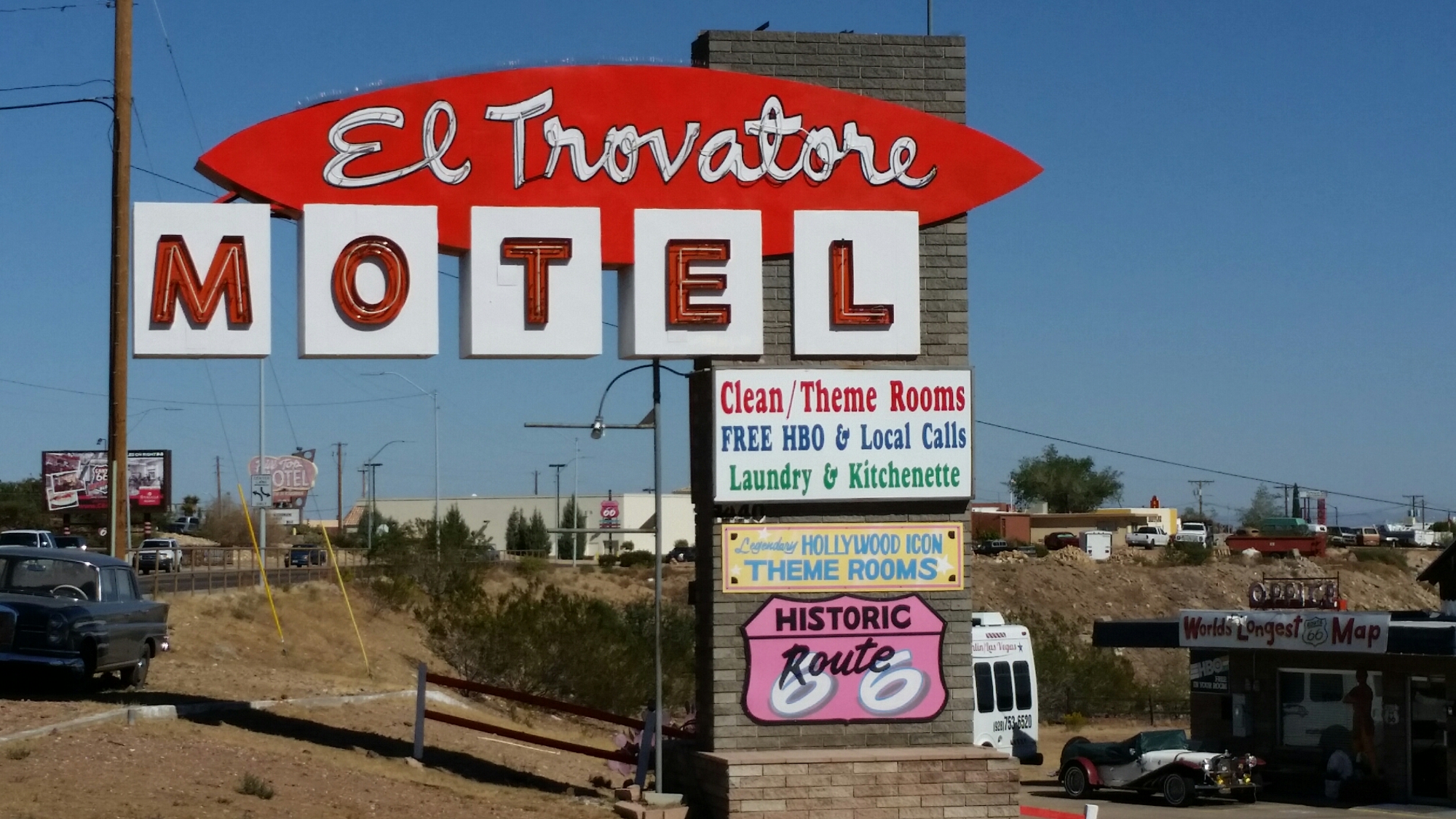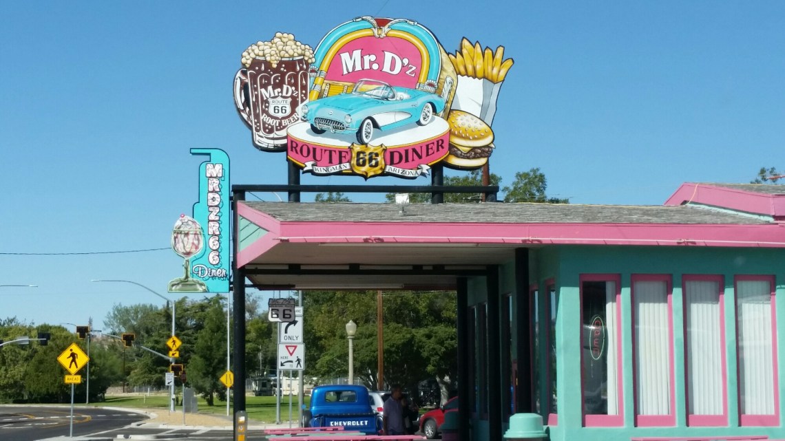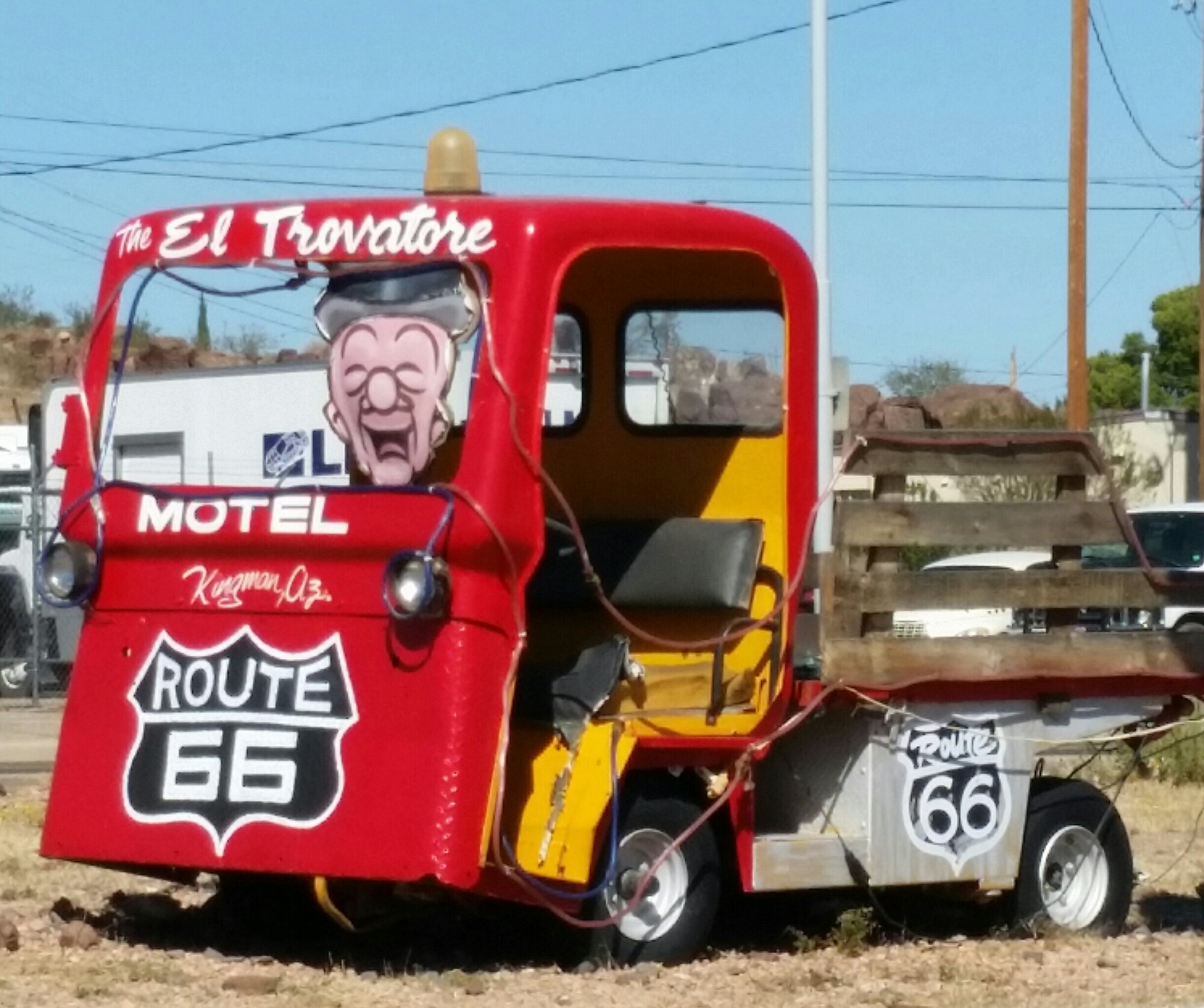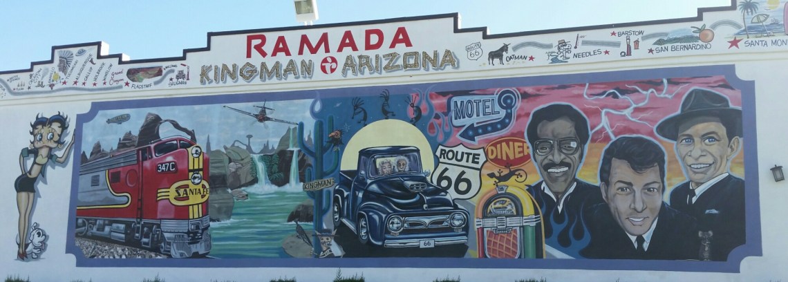 I caught several neat murals while in Kingman. Route 66 is the main drag through town so it was fun to find so much 66 stuff! The El Trovatore had a mural of the entire Route 66 on the front of the Motel as they claim to have the longest Route 66 road map. I didnt get a picture of it, too many obstructions but I did see it. I caught the Hill Top Motel, the Route 66 Motel and the Hotel Beale. There was a very nice visitor center and across the street was Mr D’s Diner and a 1927 Santa Fe steam locomotive. Remember looking for a new or used car with your parents, well “OK”. I even found the one and only Mr Magoo!