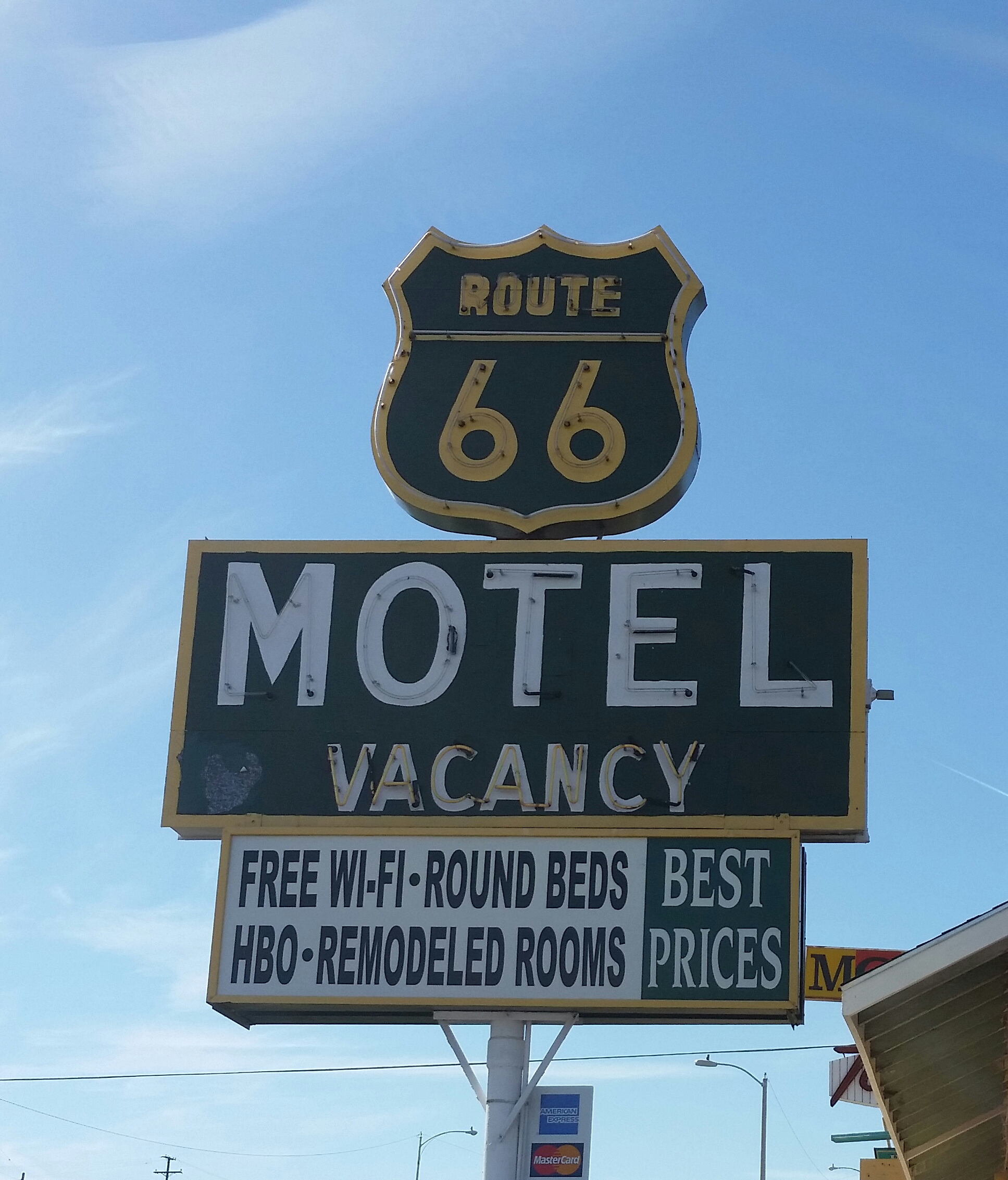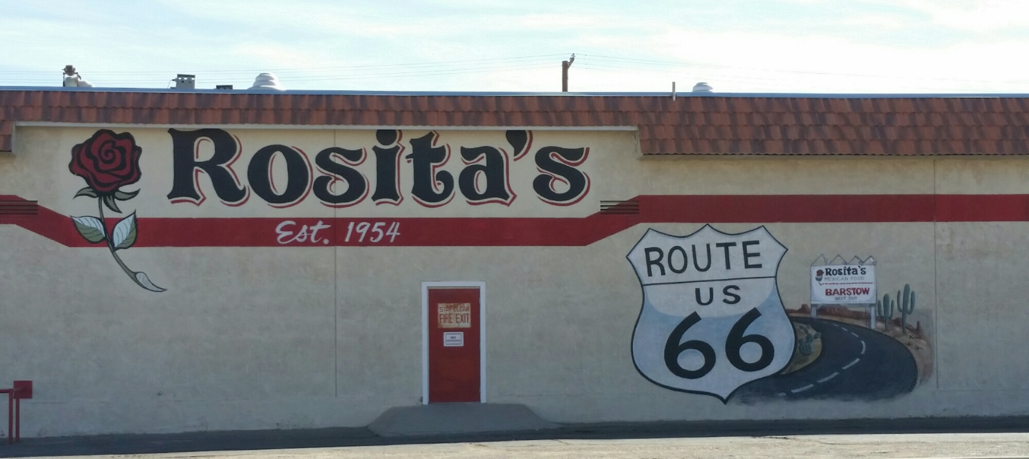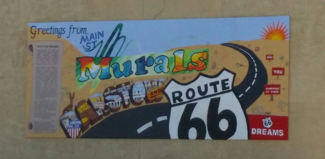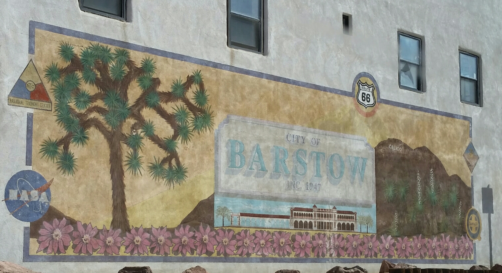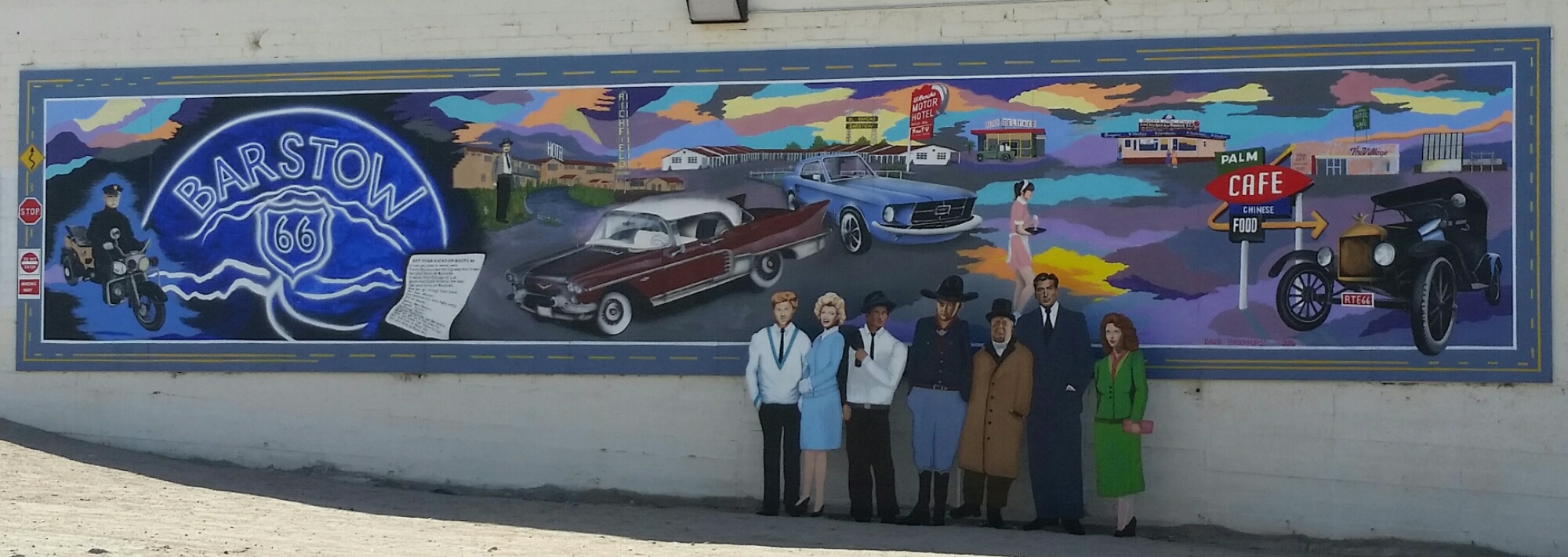 Barstow CA is the home of the El Rancho Motel and the Desert Inn. Also, some cool 66 Motel signs and you got it, murals!