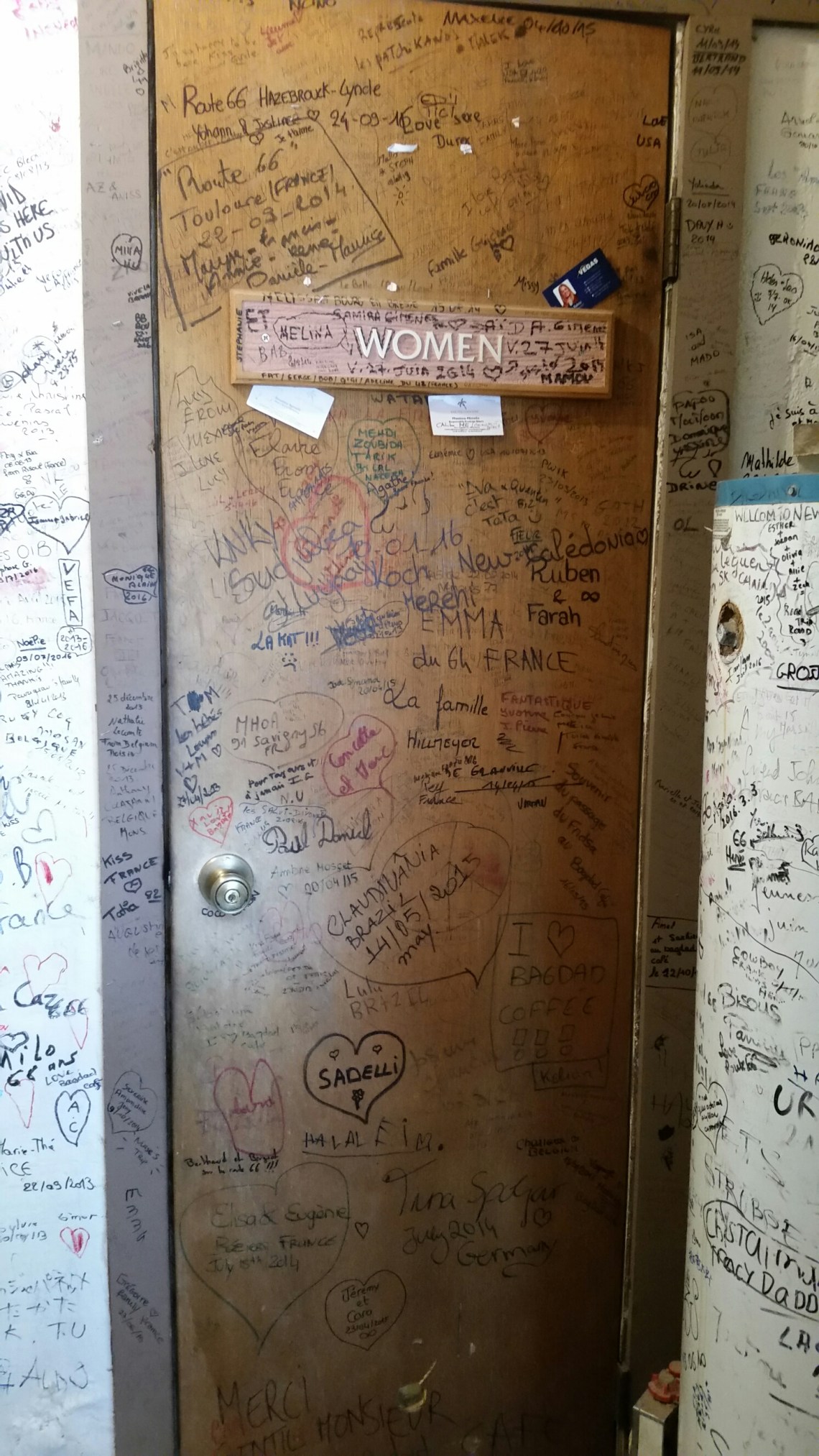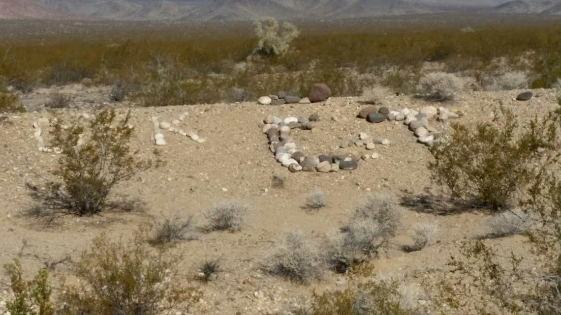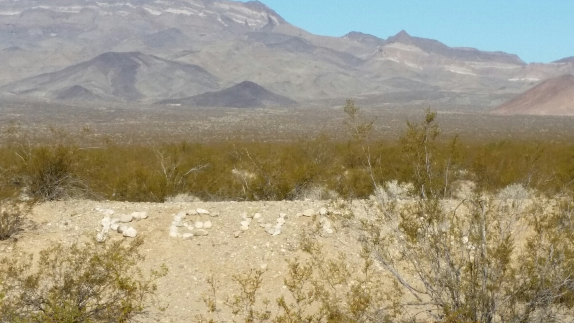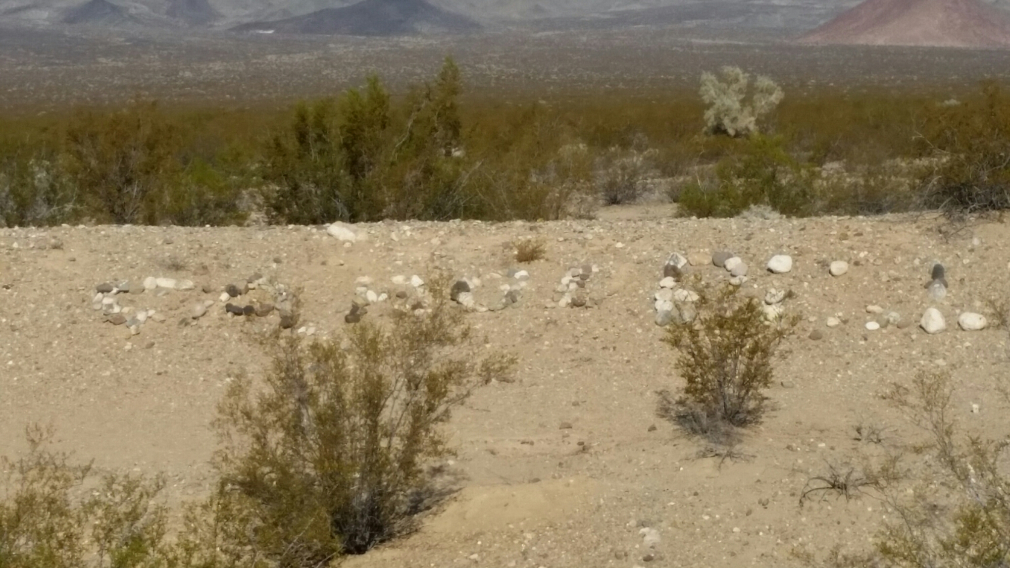 Interesting artwork along the highway for miles and miles. Jerry calls this the “Route 66 Public Art Corridor “. Travelers of the Route 66 have left their names with rocks off the berm of the road. And when in Rome do as the Romans do!