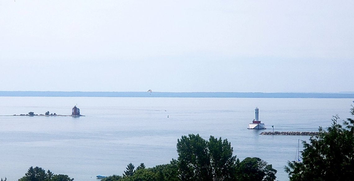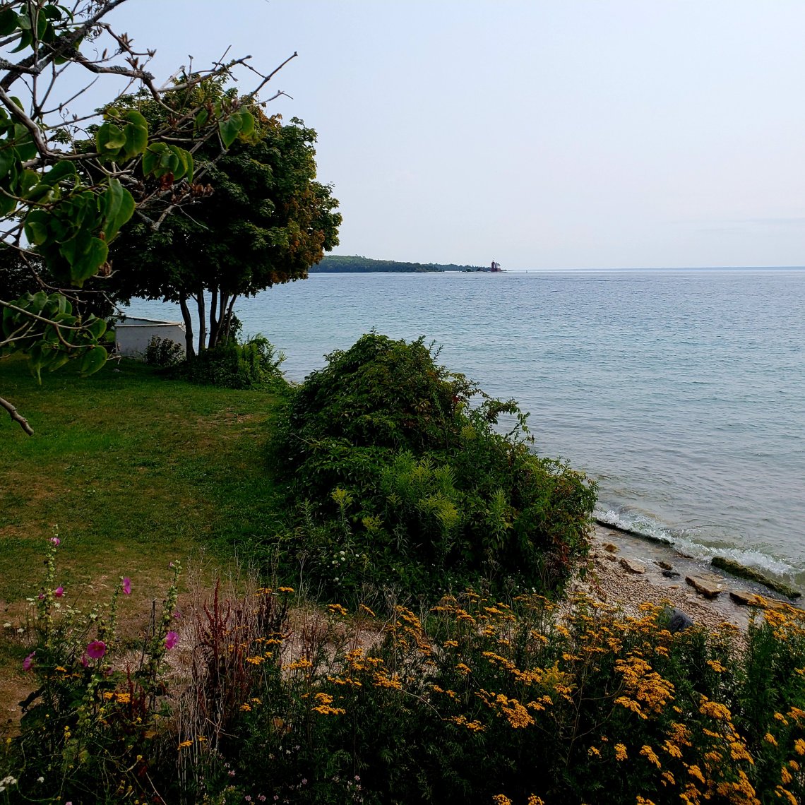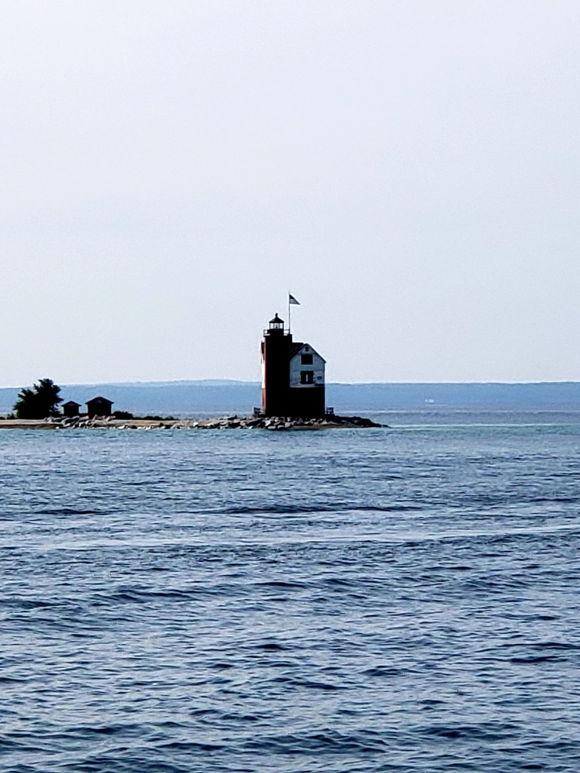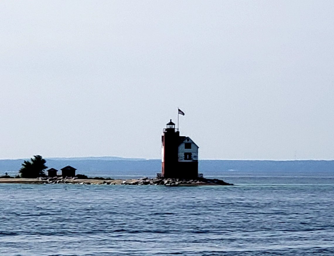 On the opposite side of the waterway off the shore of Mackinac Island is the Round Island Passage Light.