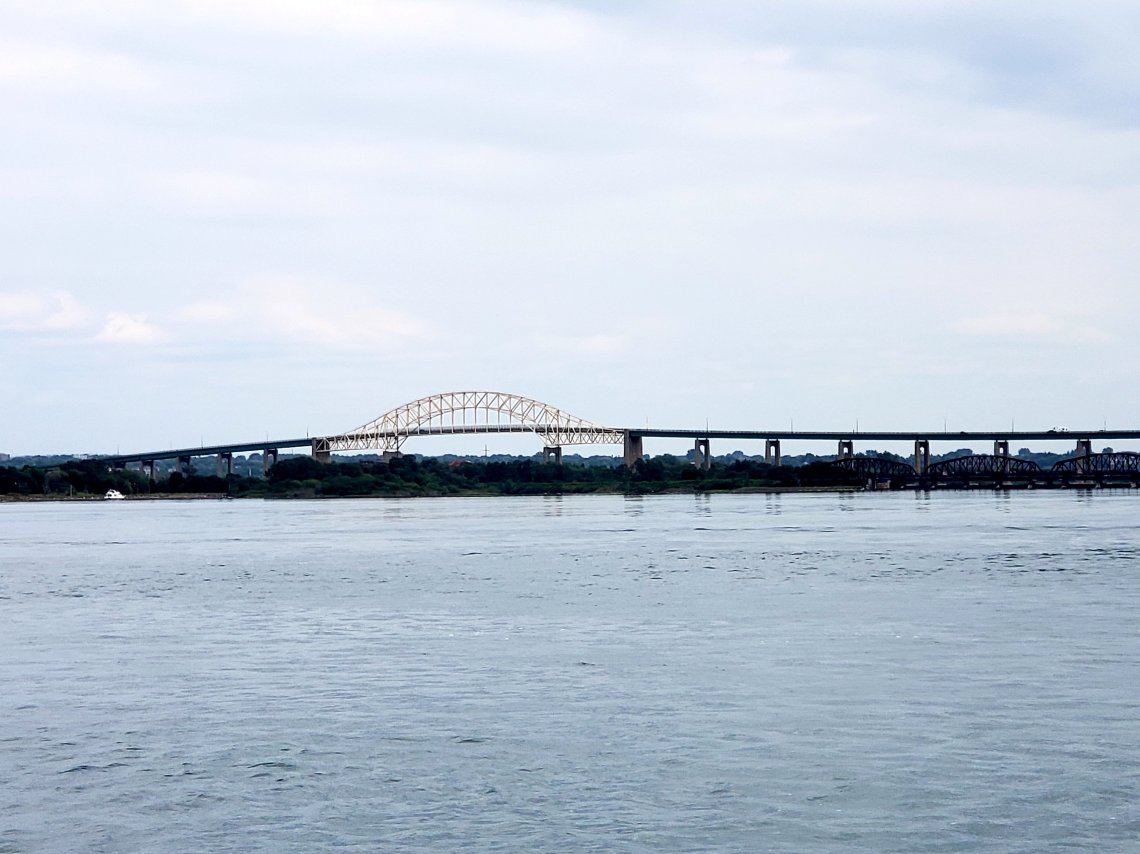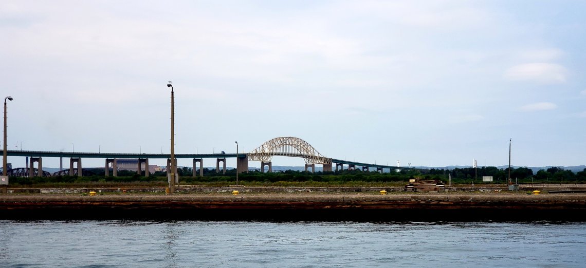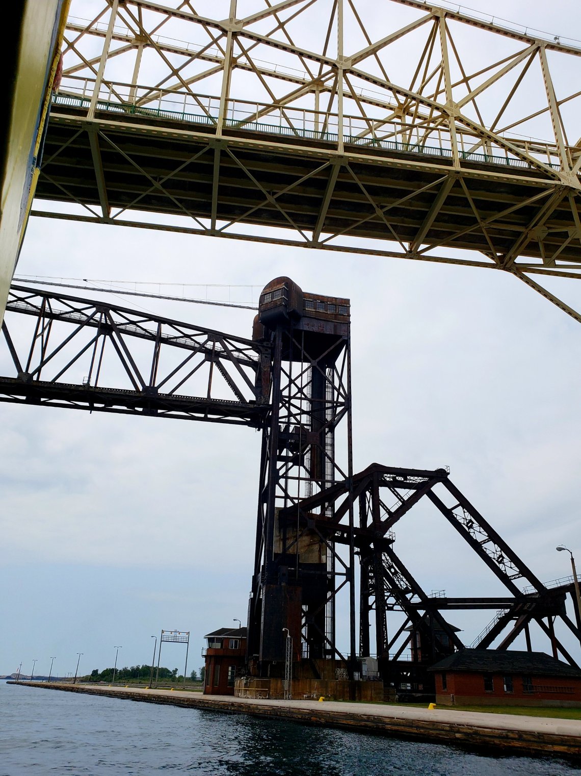 Just past the bridge is the International Train Bridge. The bridge carries a single set of tracks on one of the two set of verticle lifts.