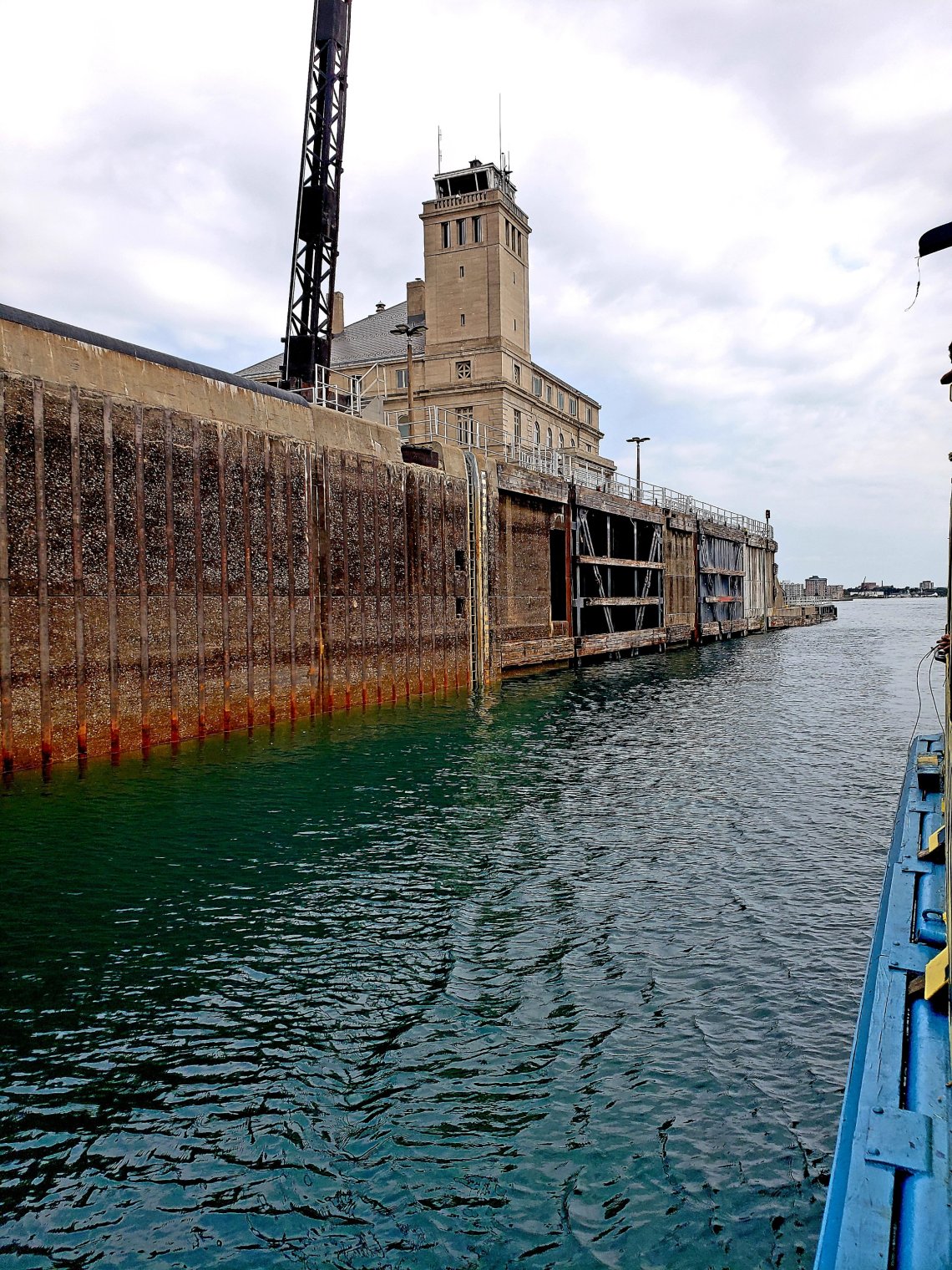On our return trip we came through the Canadian Lock. It was much smaller and does not accommodate the big ships. On this part through the Locks the water lowered us to the same level as Lake Huron.