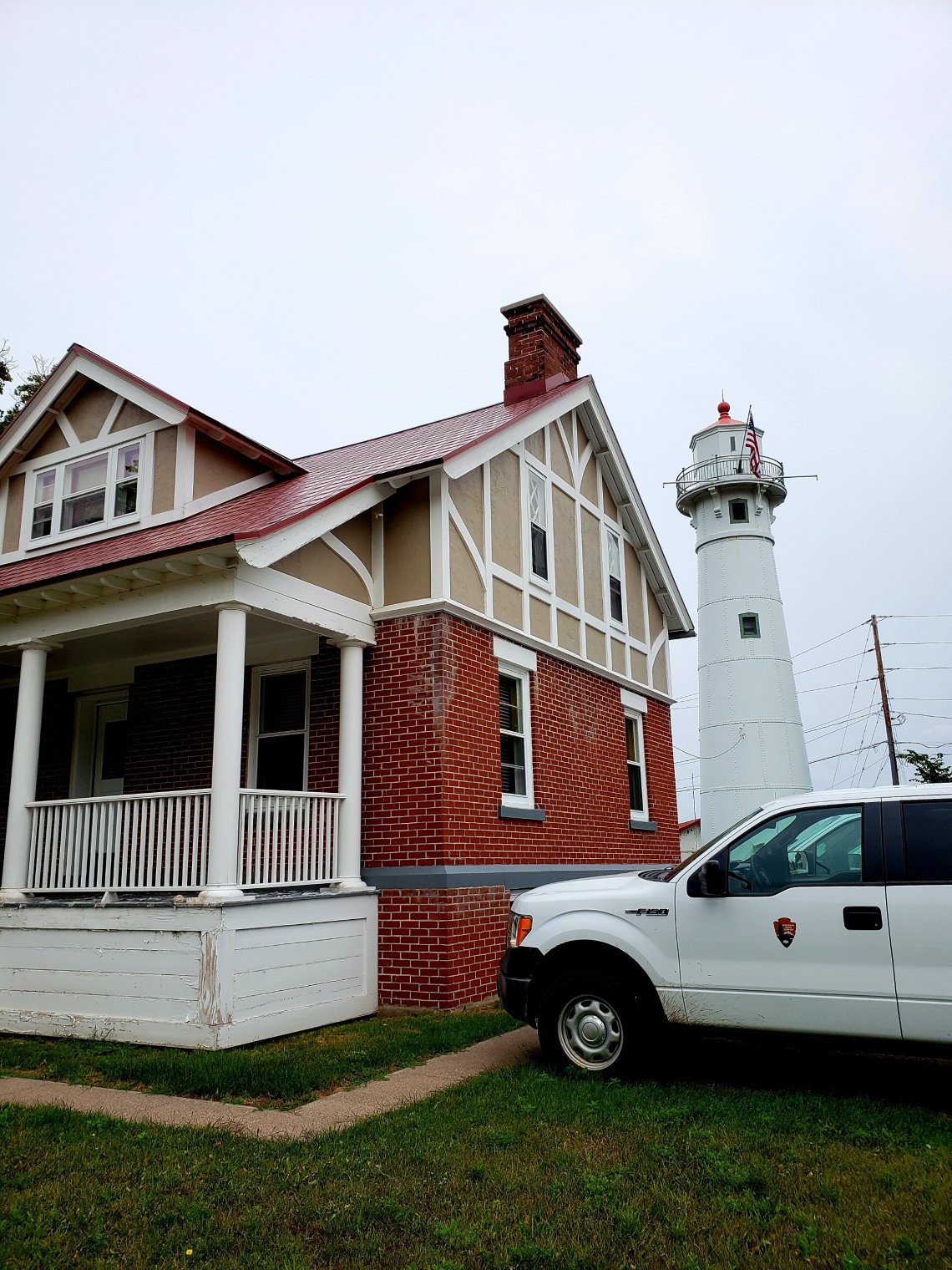 Looking for another lighthouse, please! This one was barely noticeable from the road and there was no signage. This is the Grand Island Harbor Rear Range Light which was abandoned in 1969.