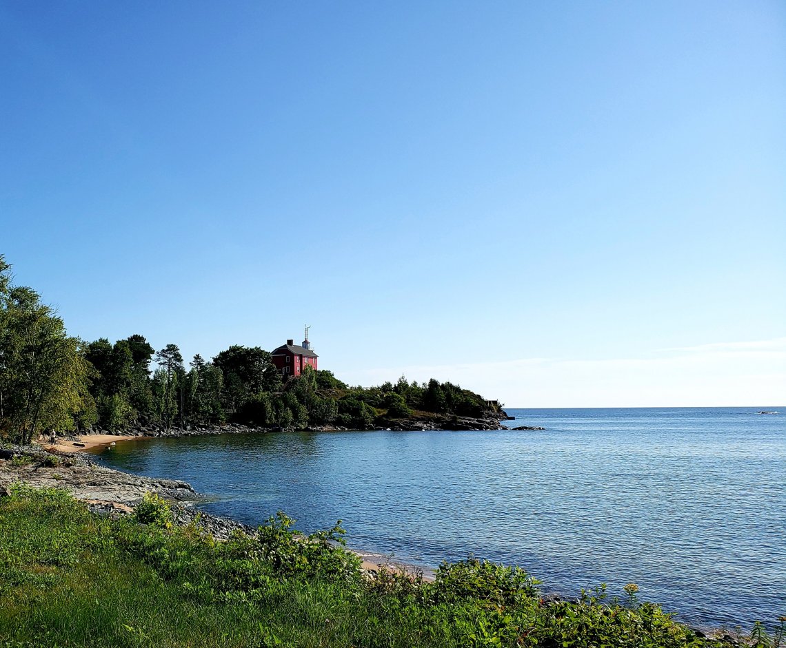 After you drive around the bay you turn into the Ojibwe Campground and the road winds around to the Sand Point Lighthouse.