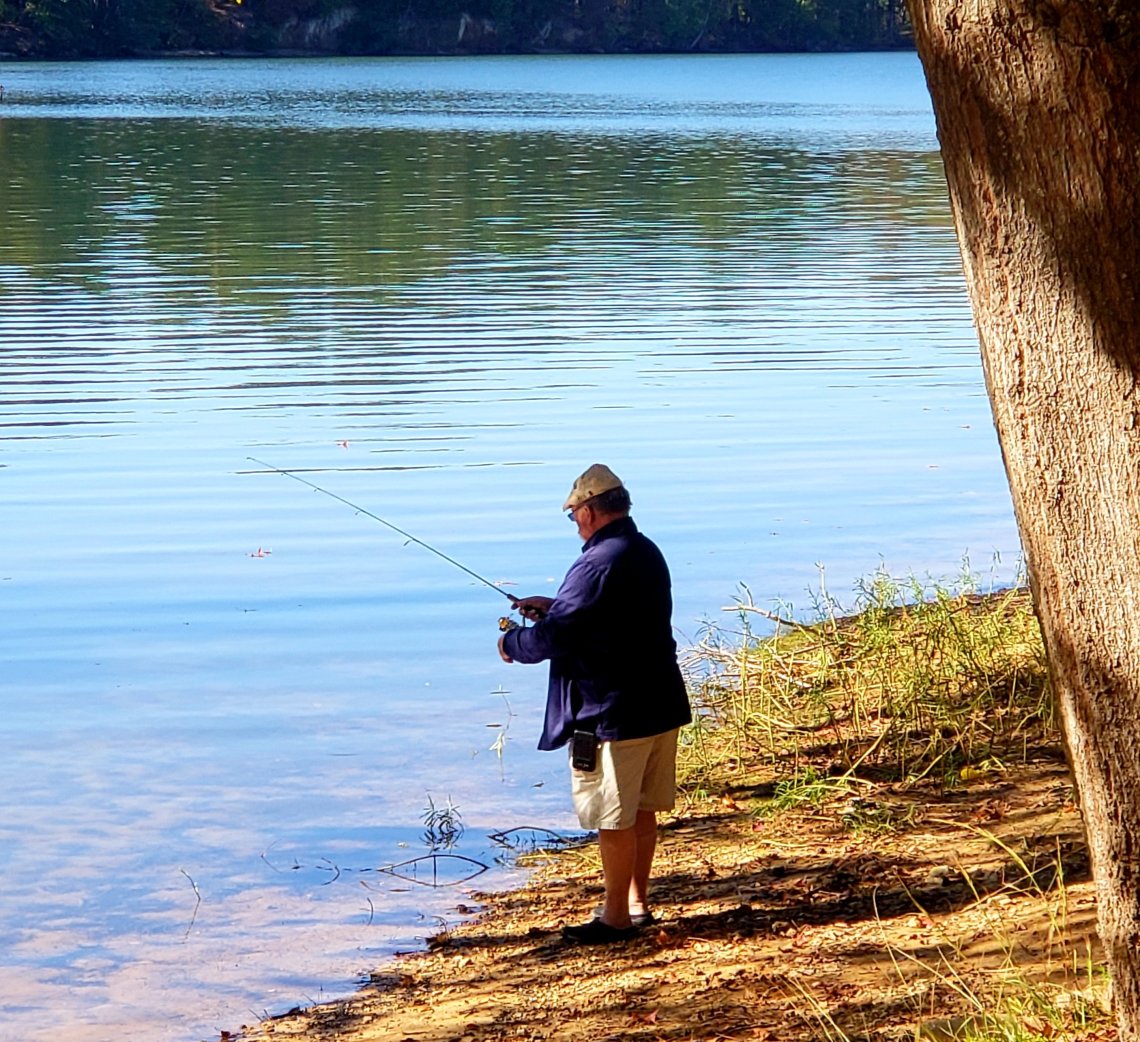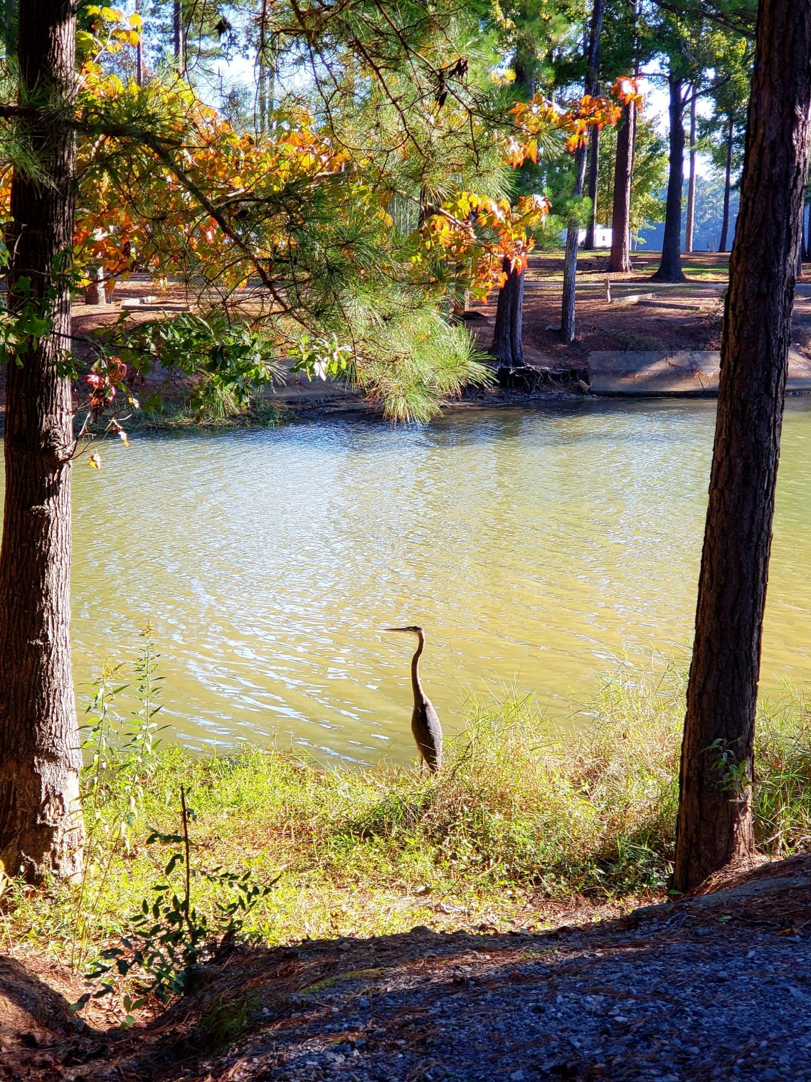 I have had a very relaxing week. As our stay winds down we have had a great time here at Wind Creek State Park. From exploring the park, long walks, campfires, playing yatzee, fishing and just hanging out and watching our favorite daily visitor (Harry da Herron).