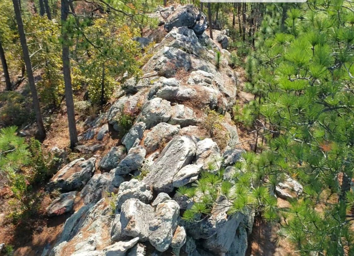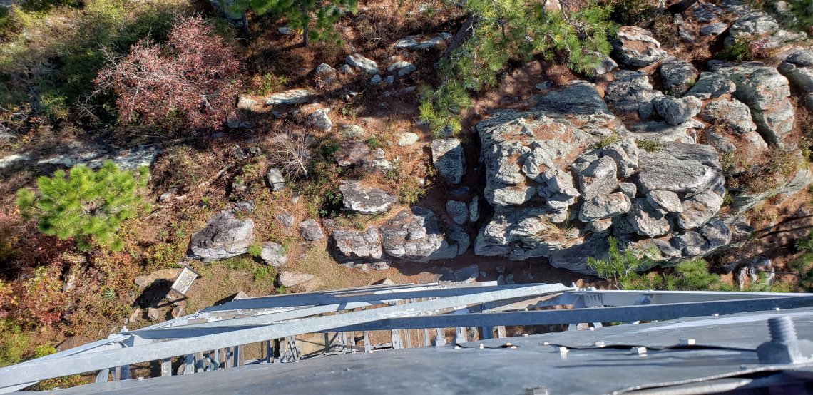 As you descend from the top of the fire tower you get a good view of the rock formation called The Devils Backbone.