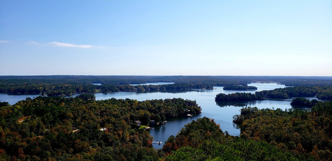 From the top you have many great views of Lake Martin and you can see nine counties.