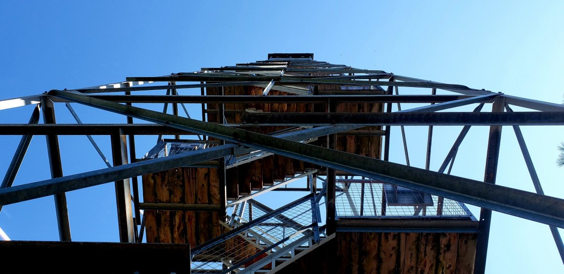 Built in 1939, the fire tower was restored and was open to the public in 2012. The fire tower was in operation for forty-one years. It is 90 feet tall and it has 111 steps to get to the top.