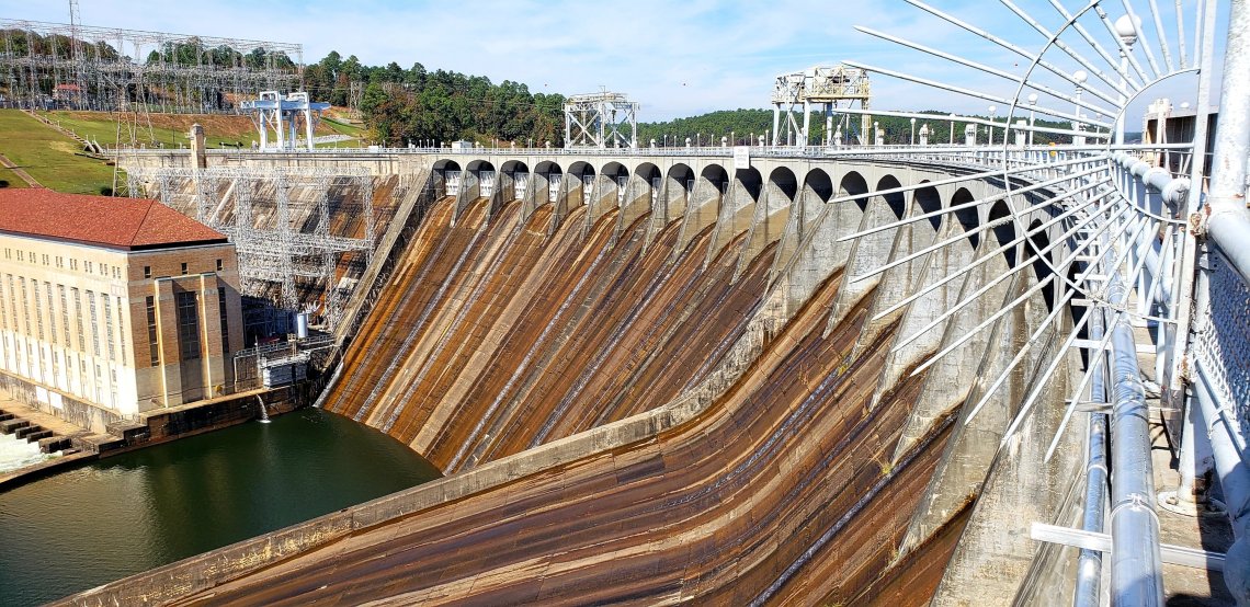 In 1923 the construction of Martin Dam began. The dam is located at the Cherokee Bluffs on the Tallapoosa River. The dam was finished in 1926, after the TVA relocated over 15,000 people from a dozen of small towns. The number of living and non living persons relocated due to the dam made it possible for this beautiful recreation area. We visited the dam and it was huge!