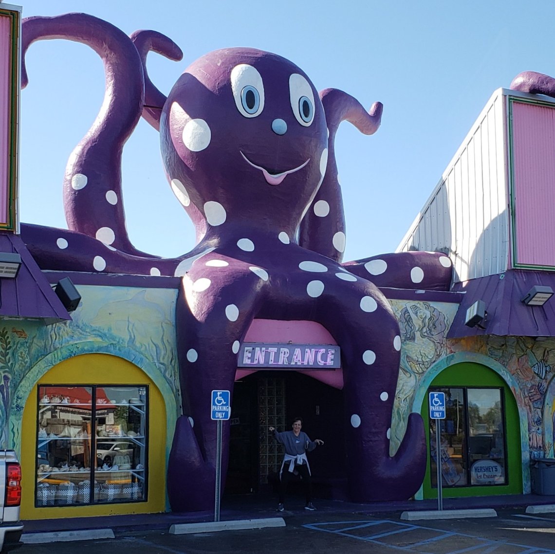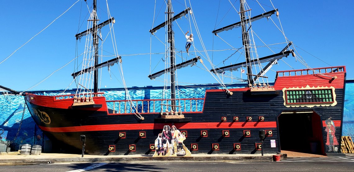 On our walk back from the beach we caught a ride on a pirate’s ship, where we saw a huge shark and a purple octopus!