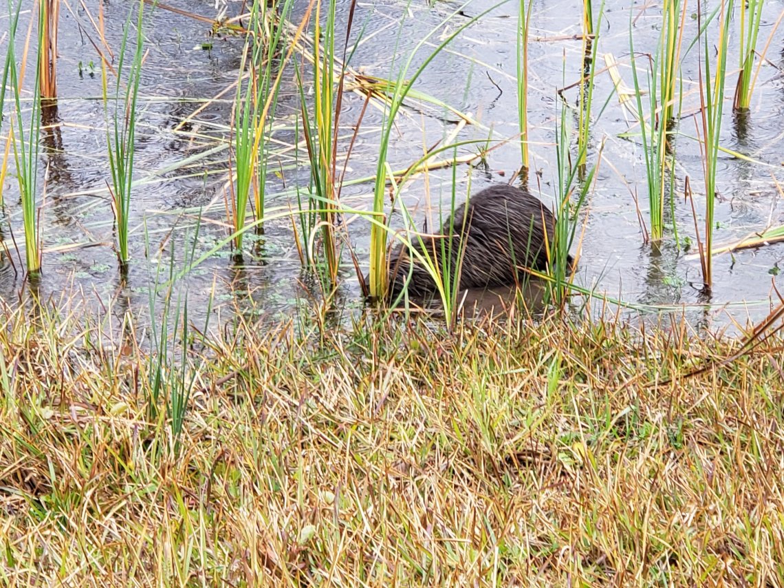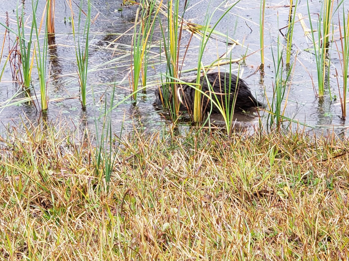 This is a Nutria Rat. About the size of a muskrat they feed on the roots of the vegetation. He didn’t seem to mind we were watching.