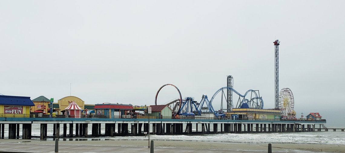 Across town along the 12 foot sea wall is Pleasure Pier. Looks a lot like Coney Island.