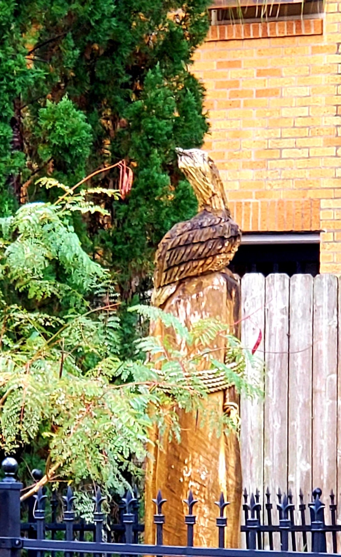Today though, we are able to take a tour of the trees that were saved as sculptures by artists Earl Jones, Dale Lewis and Jim Phillips. I would like you to take you on the tour too.