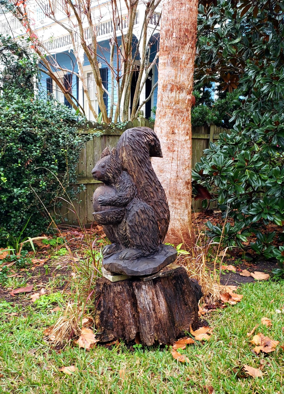 The Squirrel – Yard art of wildlife at 1302 Ball.