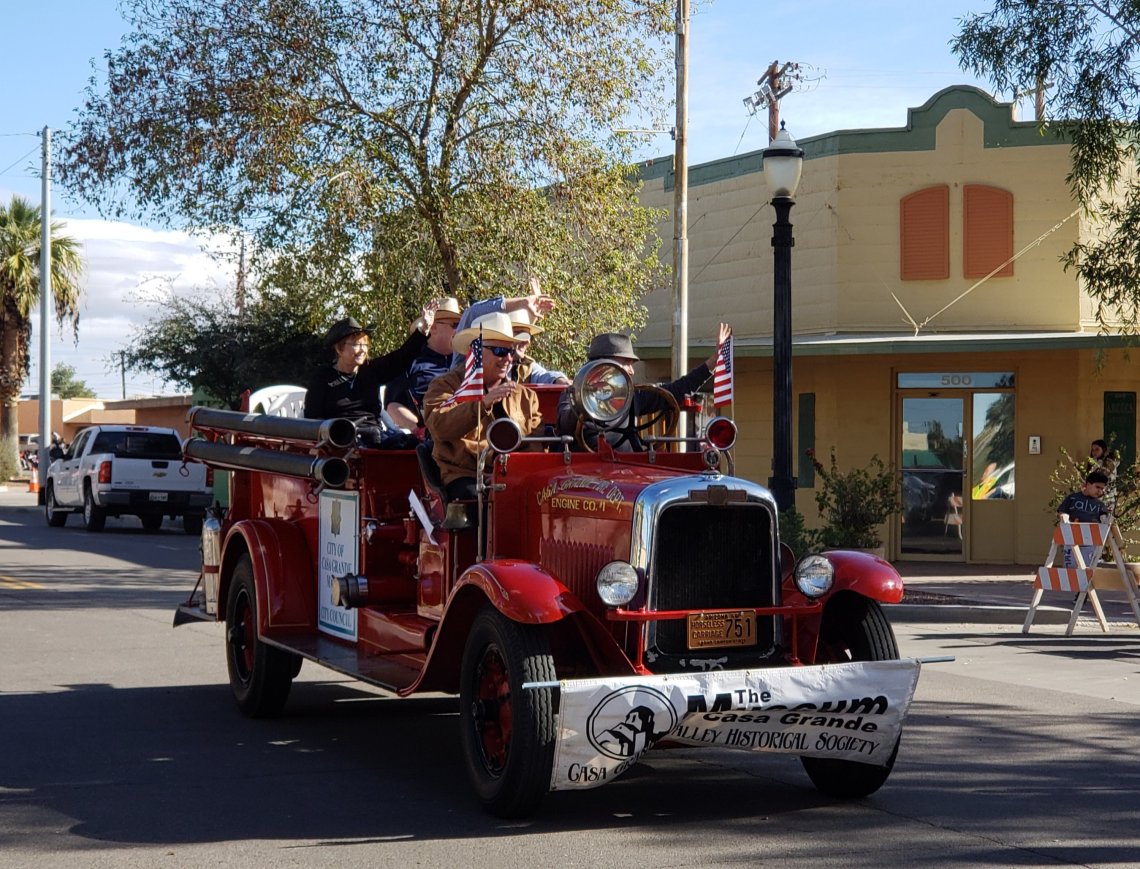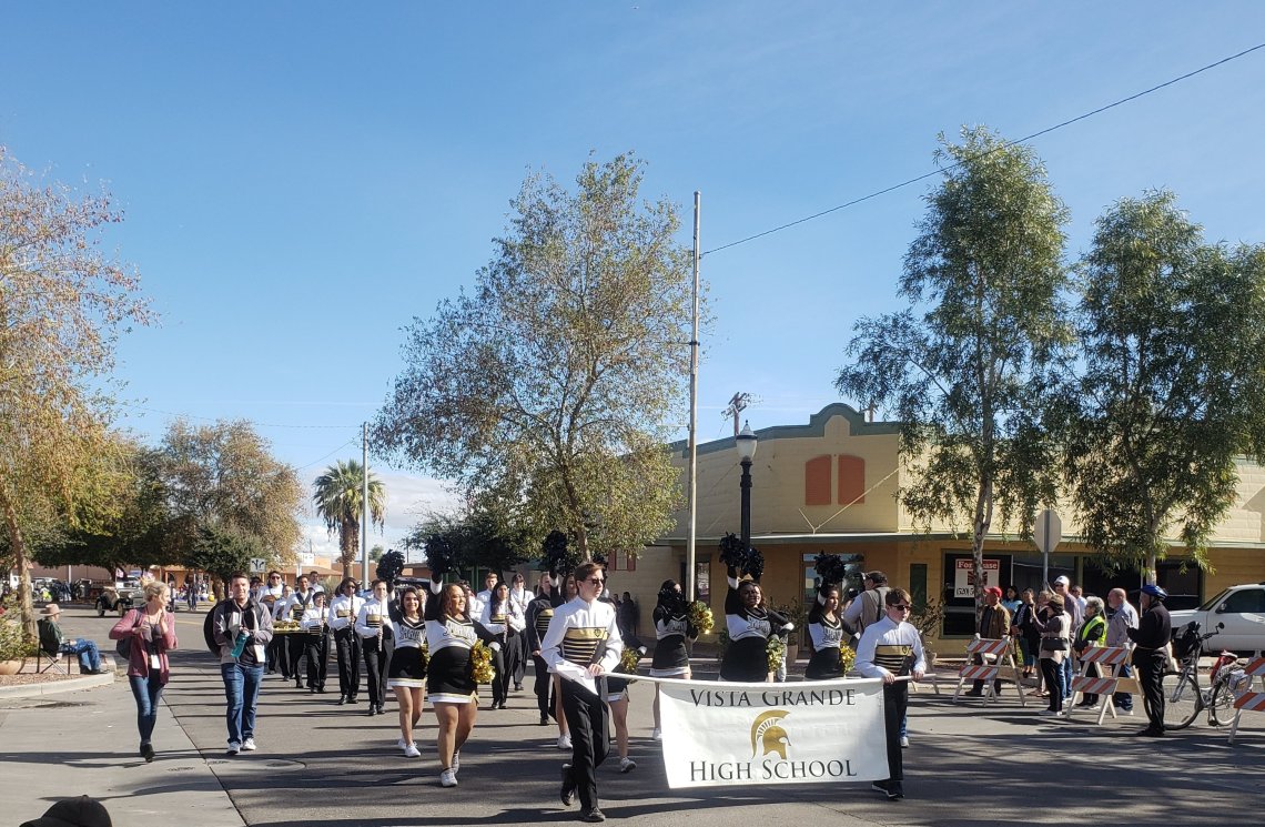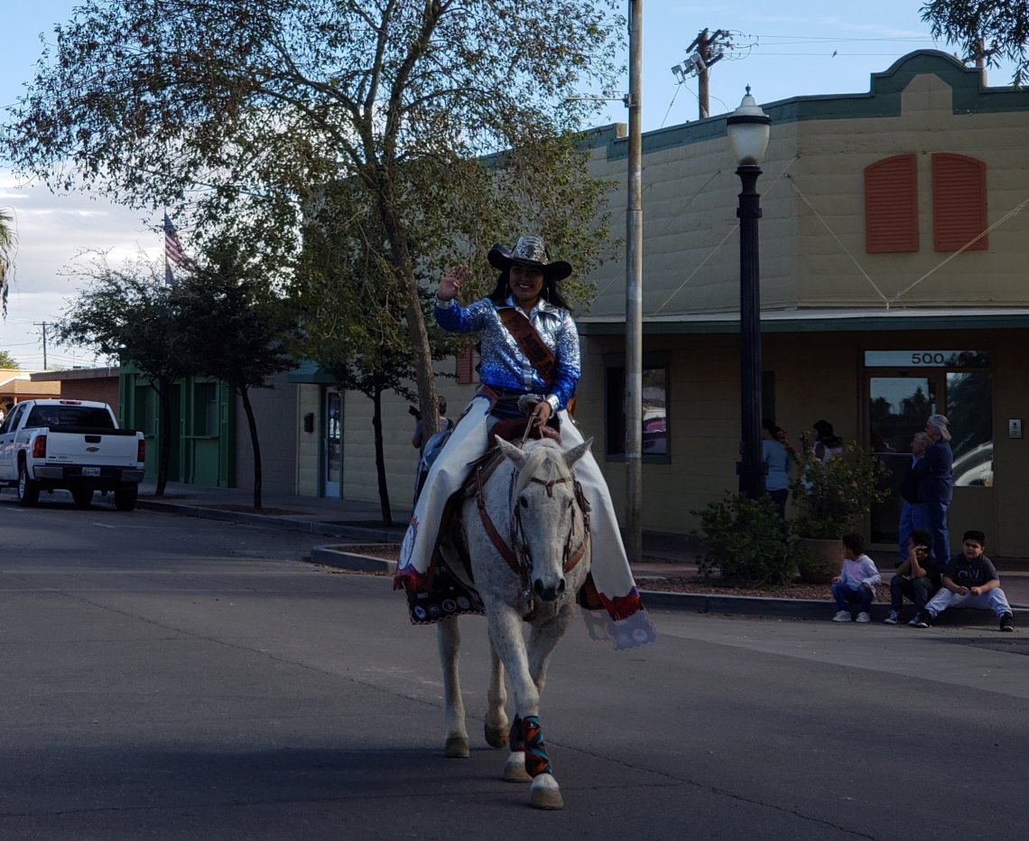 There was a parade in downtown Casa Grande that had bands, Native Americans, Cowboys, royalty and entertainment.