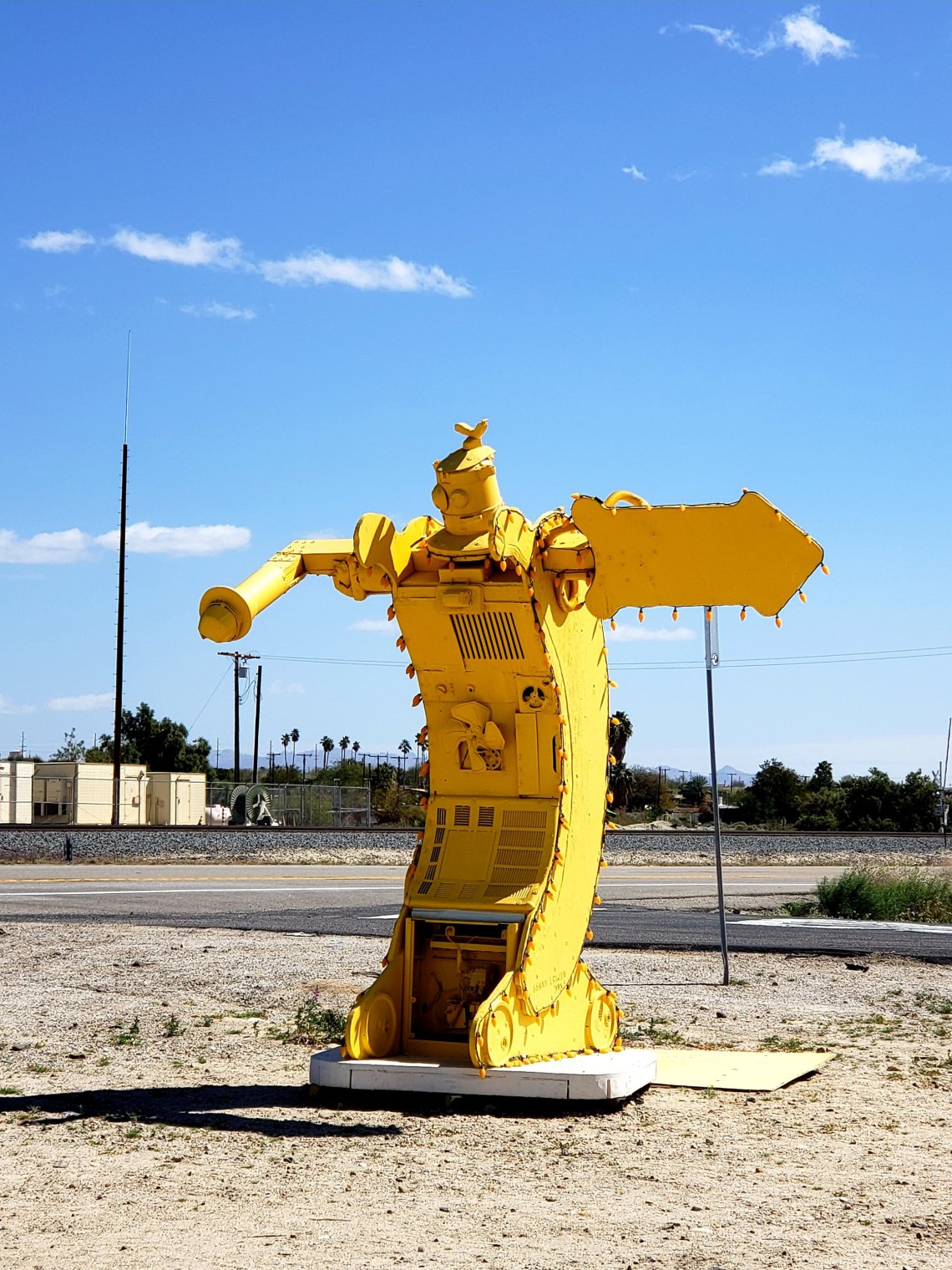 The Banana Man welcomes you to the museum as you drive south of Mecca, California on Route 111.