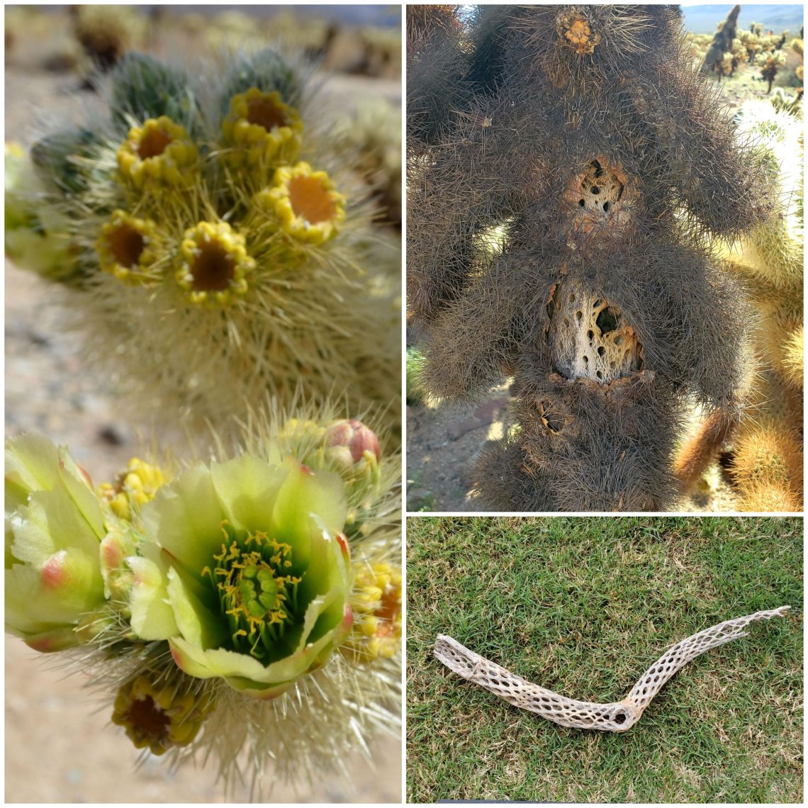 On the right is what the dead Cholla looks like. Once you peel off the outer surface you get a nice piece of Cholla wood which is used in crafts and furniture.