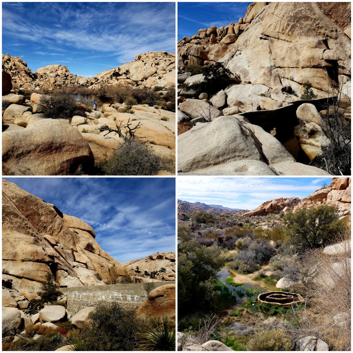 Top left is the reservoir provided by the dam. Top right is the back side of the dam. Bottom left is the front side of the dam and the bottom right is the creek and what looks like some sort of trough.