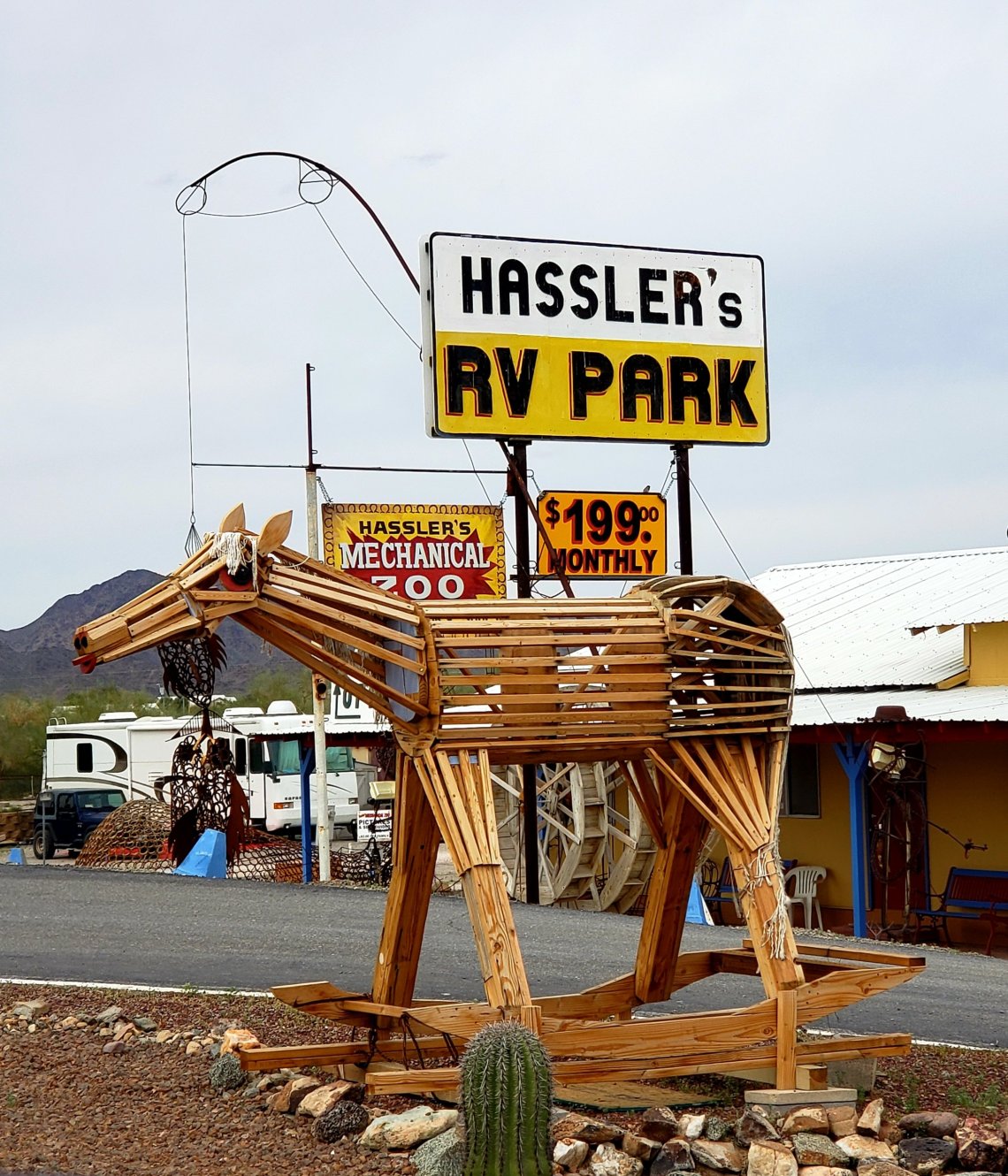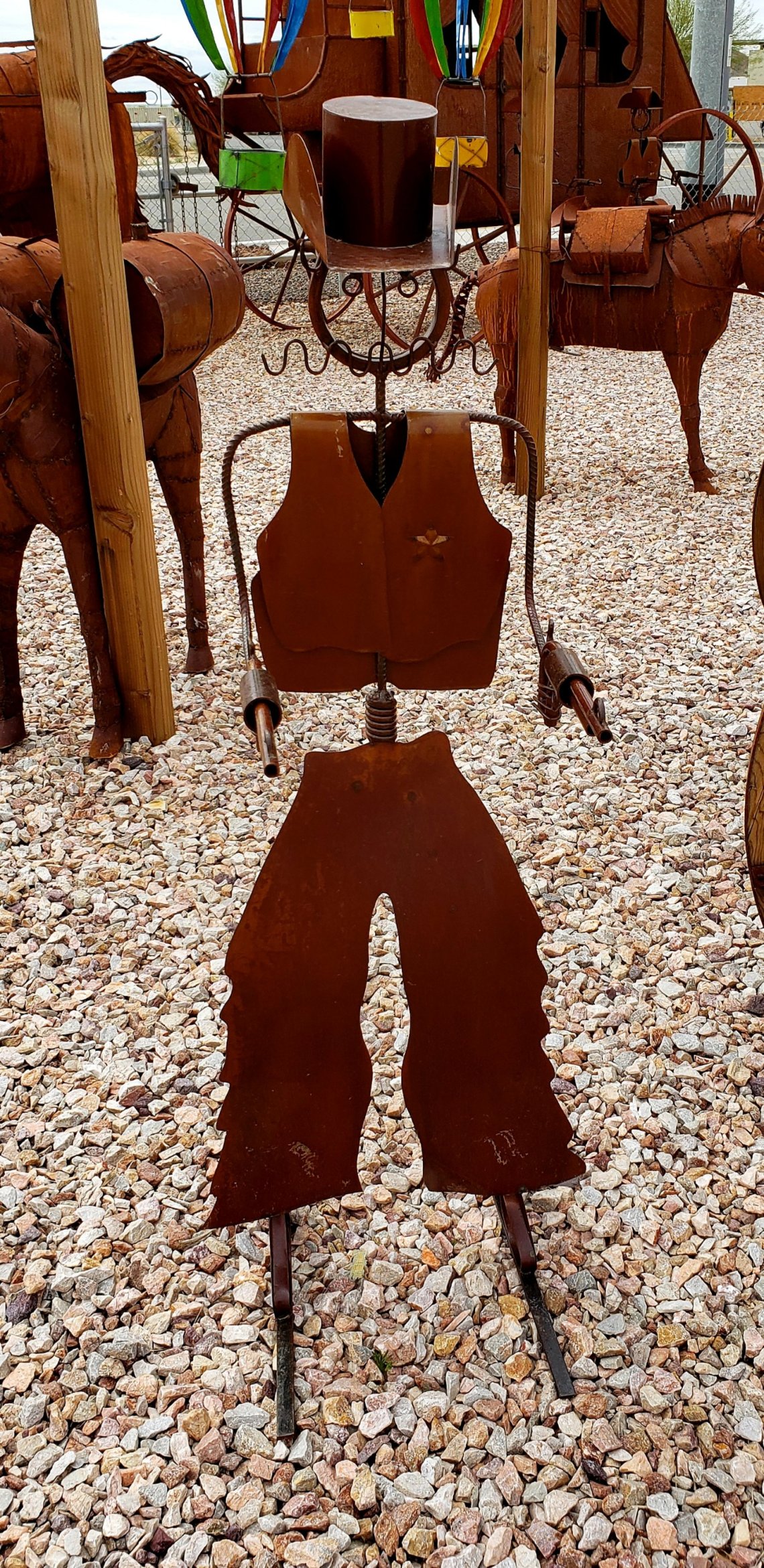 Other interesting things were the metal art and the big rocking horse made out of wood.