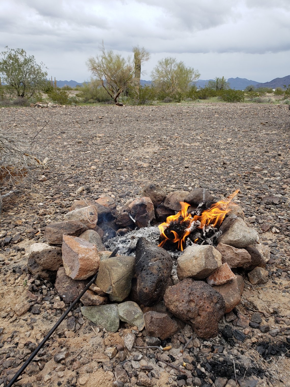 We boondocked at the Road Runner BLM for the night. We managed having a fire but then it started to rain at sunset so there were no stars to gaze upon.