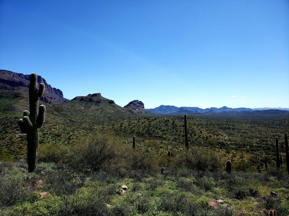 We arrived in Apache Junction, Arizona with the Tonto National Forest and Superstition Mountain as our back drop.