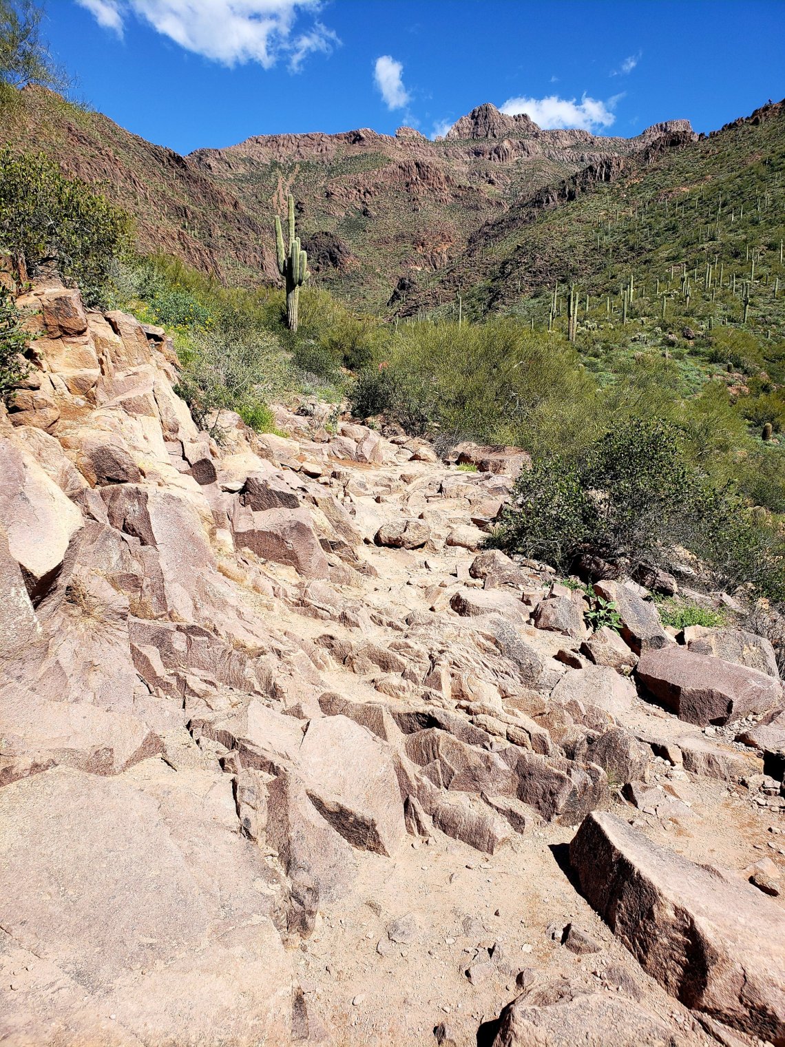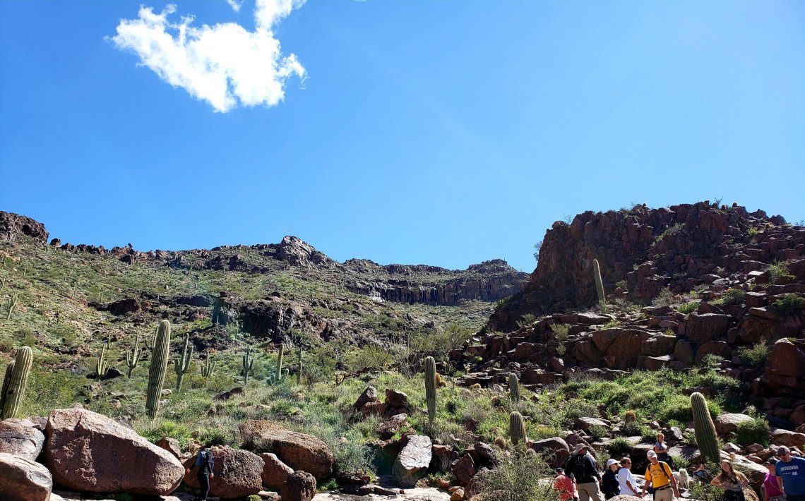 The trail head parking lot was packed full and we had to wait patiently for a space. The reason it was so full was due to spring break here in Arizona. I must say I was impressed by the number of parents out with their children in the fresh air!